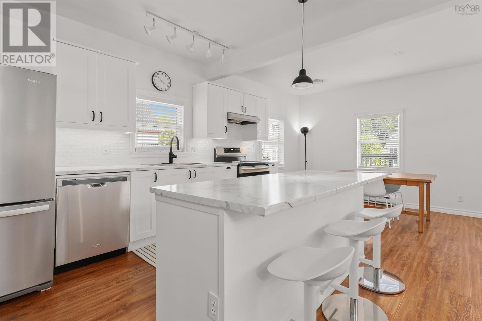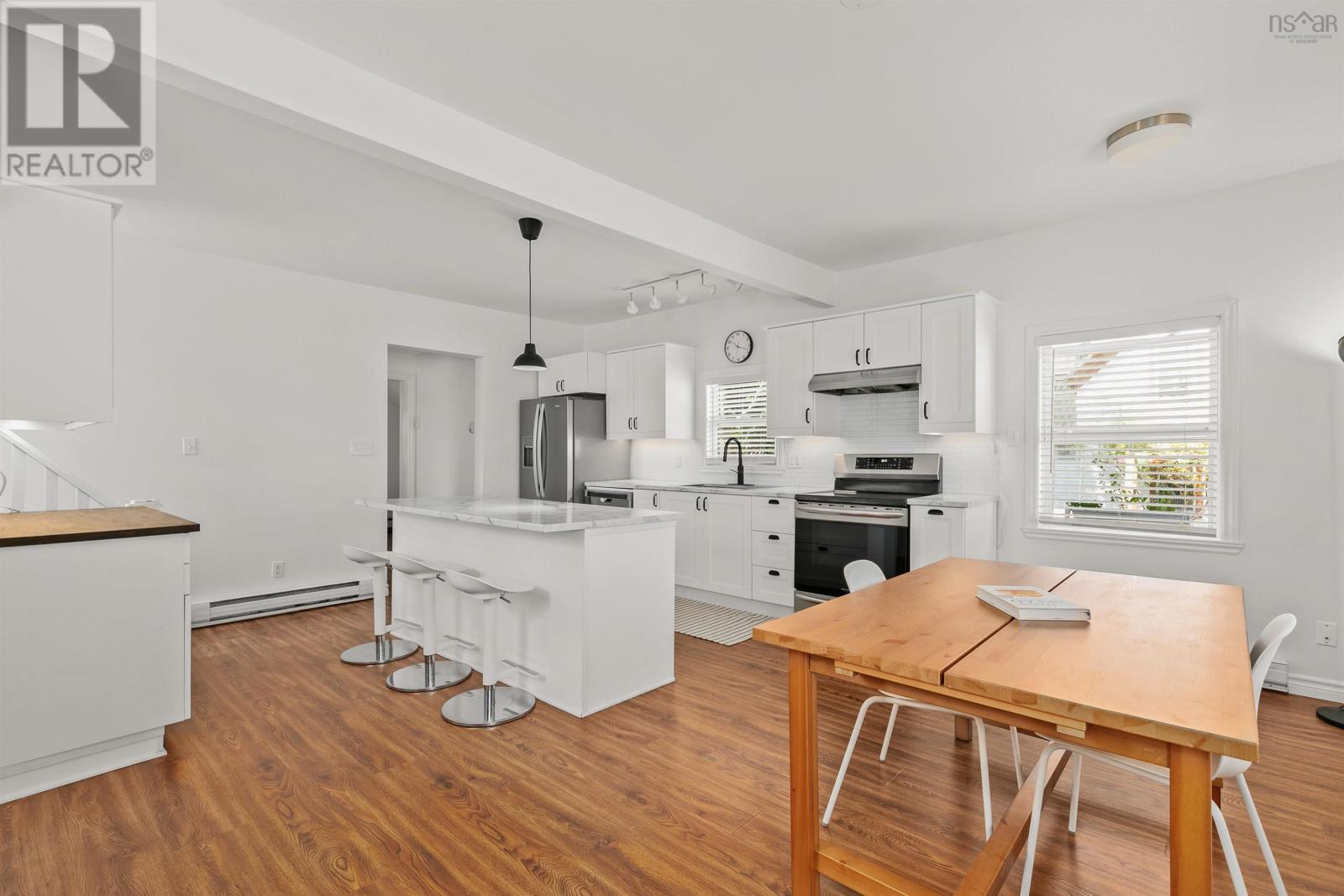 Are you looking for a move in ready home? This charming 2 bed/2 bath adorable property is waiting for you! 58 Centre street is an ideal haven for those seeking comfort and convenience as this property offers a delightful blend of modern living in a quaint home with loads of updates! Upon entering, you are greeted by an inviting open-concept kitchen & dining floor plan with a separate living room space at the rear of the home with an abundance of natural light providing a view of the backyard greenery + a walk out to deck & large yard. The well-appointed kitchen is a culinary enthusiast's dream, featuring modern appliances such as a new stainless induction stove, fridge w/ ice-maker, island with extra seating and ample storage space. Whether you're preparing a quick meal or hosting a dinner party, this kitchen offers both style and functionality! The main floor also has a full 4 pc bath! Upstairs you have 2 good sized bedrooms and a 3 piece bath with a funky walk in shower! Step outside to discover the delightful back and side yards including a shed, fenced herb & veggie garden (with raspberries!) and a perimeter of Juniper trees that will grow into a perfect and subtle privacy fence over the next few years - this backyard offers a perfect setting for outdoor gatherings and room for the pup to run and a built in watering system! This home has the room to improve upon with a solid large ready to finish DRY basement with ETS heating unit and over 7 foot ceilings. Centre street is situated in a perfect location and offers easy access to nearby schools, shopping, entertainment, groceries or the incredible Truro Farmers Market and less than 10 minutes on foot to the remarkable and historic Victoria Park! Under 45 to the Airport and HRM!!! Easy commute! Some of the updates include fresh paint, main roof 2020, landscaping, appliances, lighting fixtures and even has a 200 amp service and so much more so call your agent today for a full list of features and to book a showing! (id:22211)