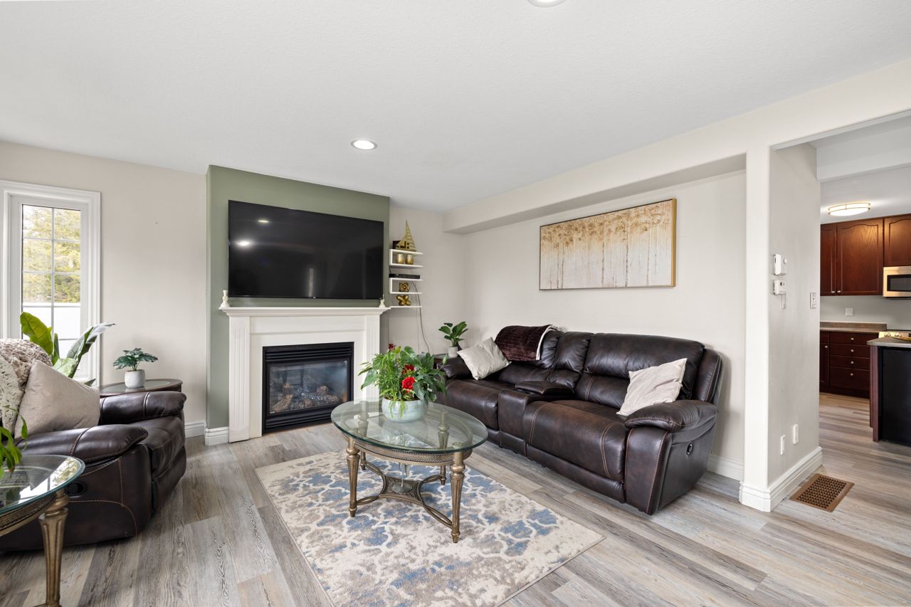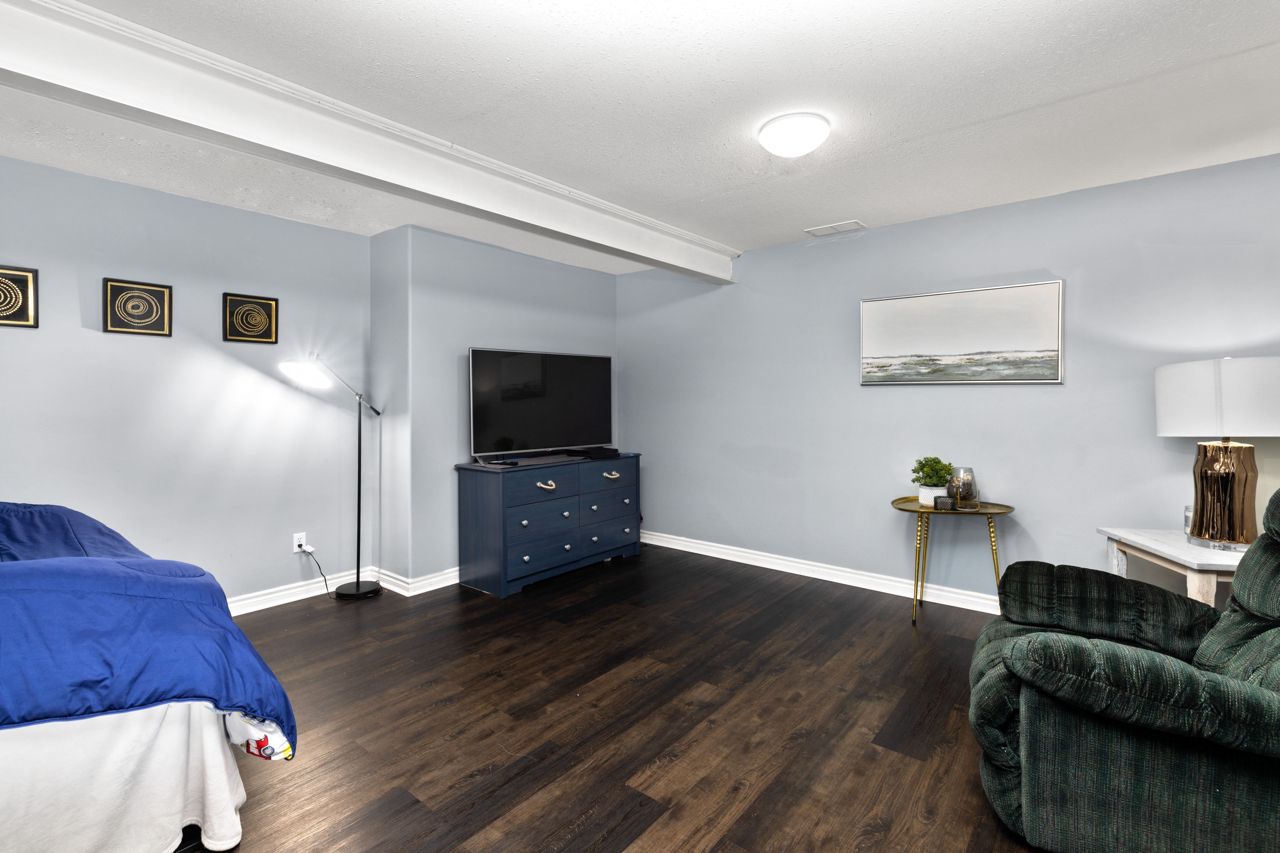 a high tray ceiling. The basement is finished with a laundry/storage room, a rec room, a 2pc half bath, and