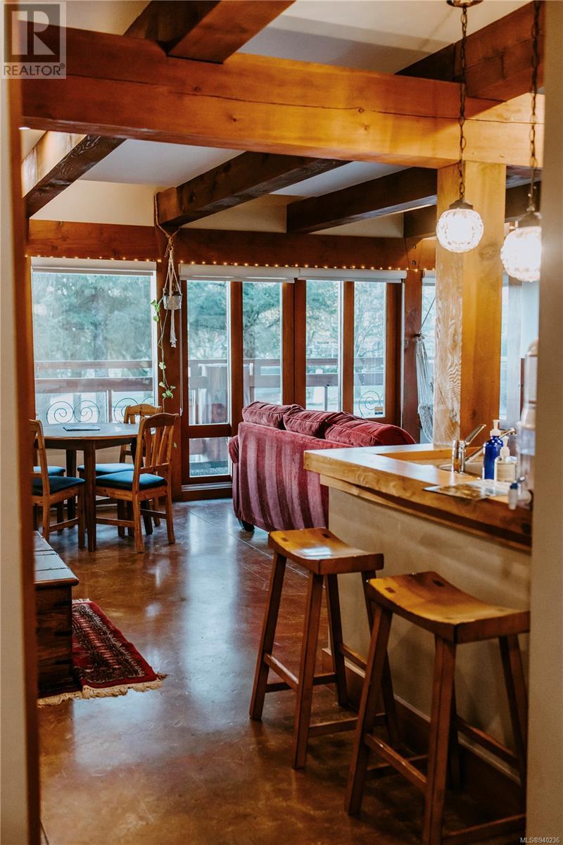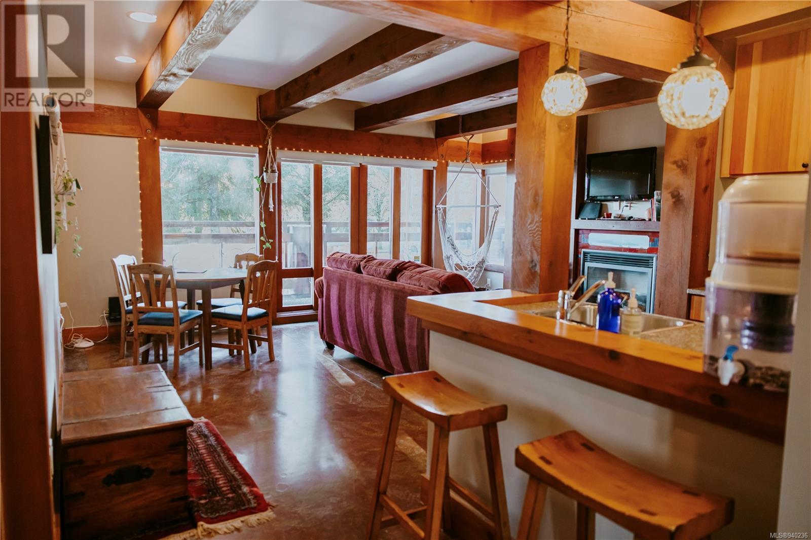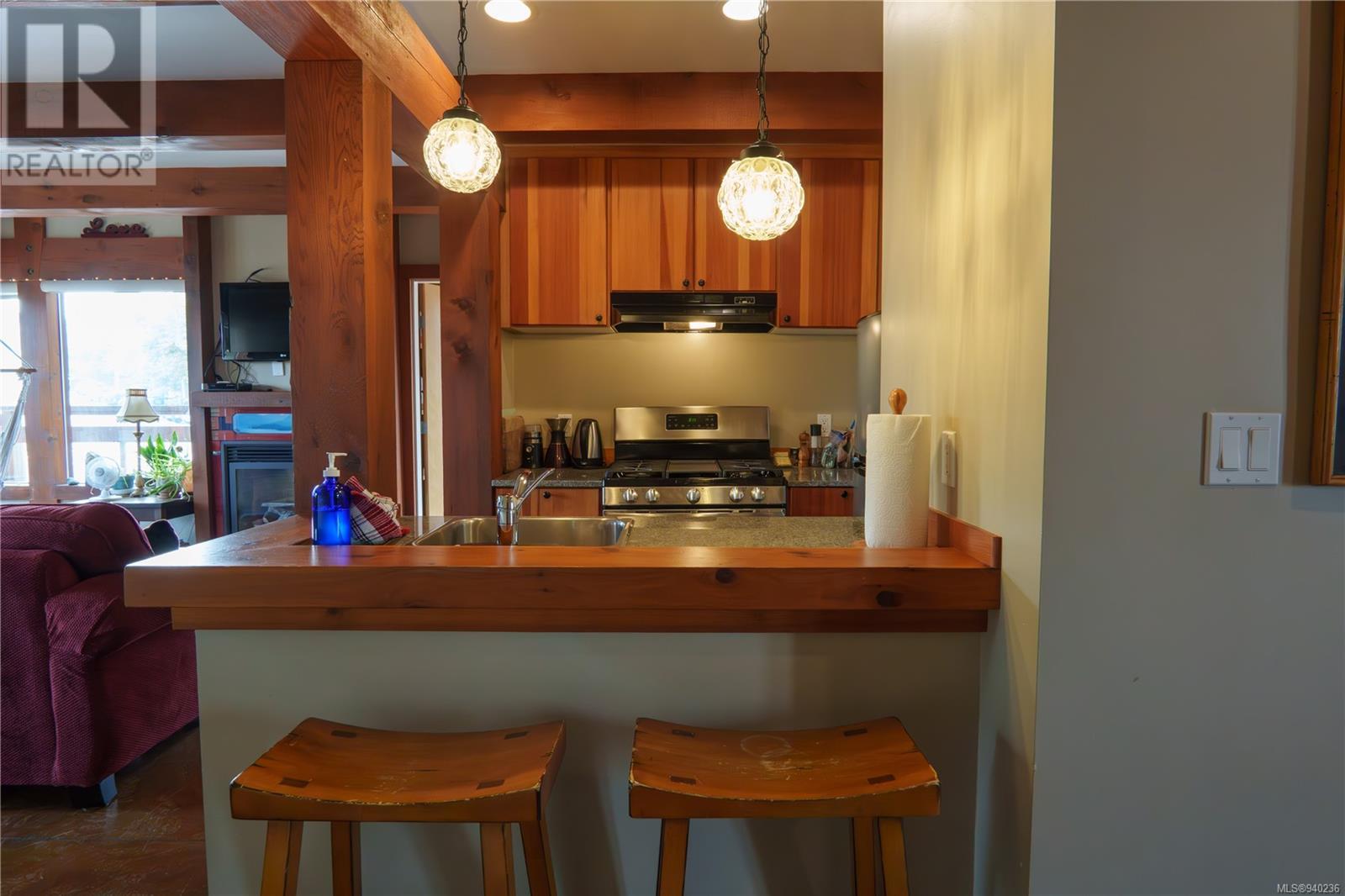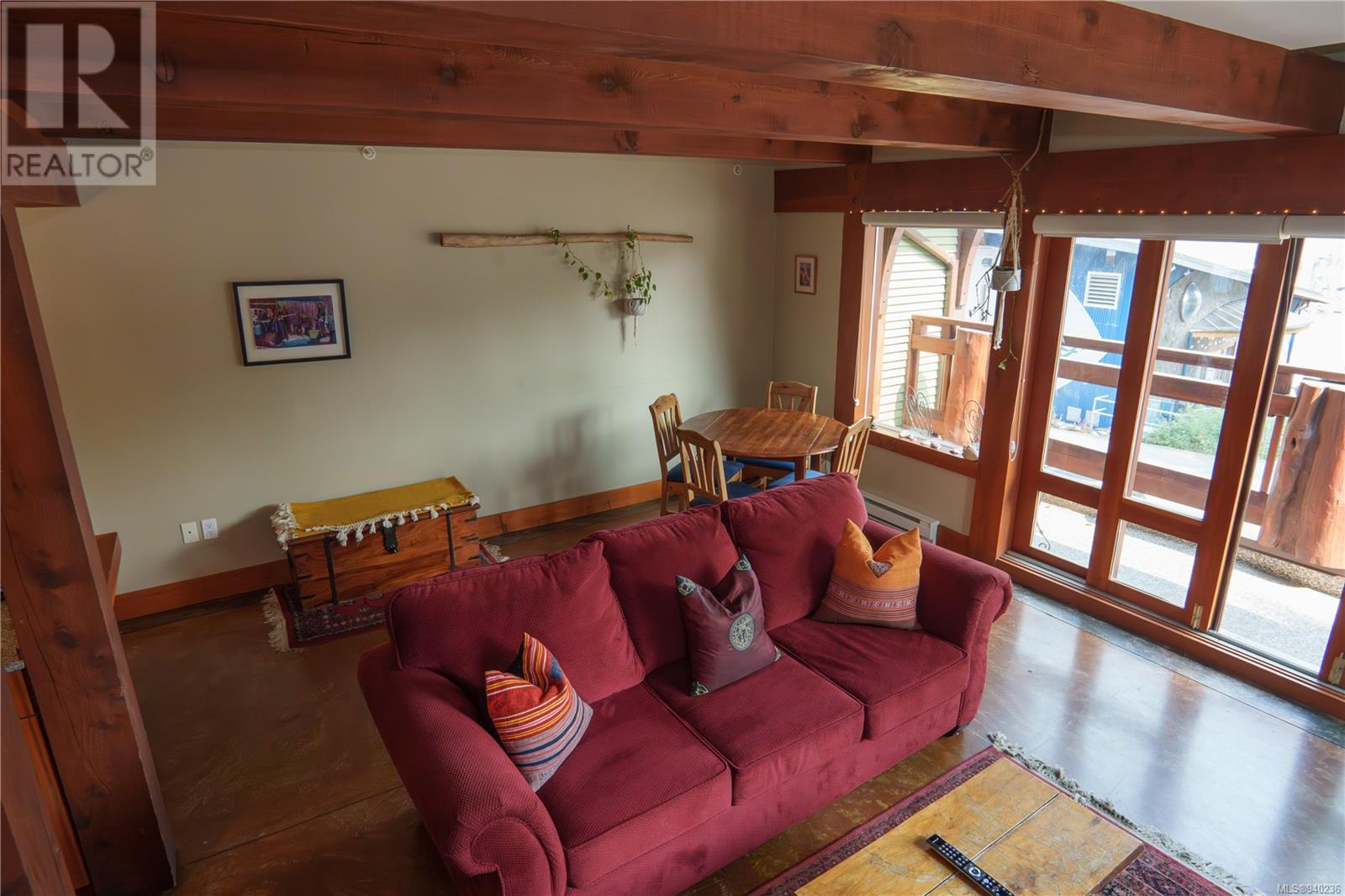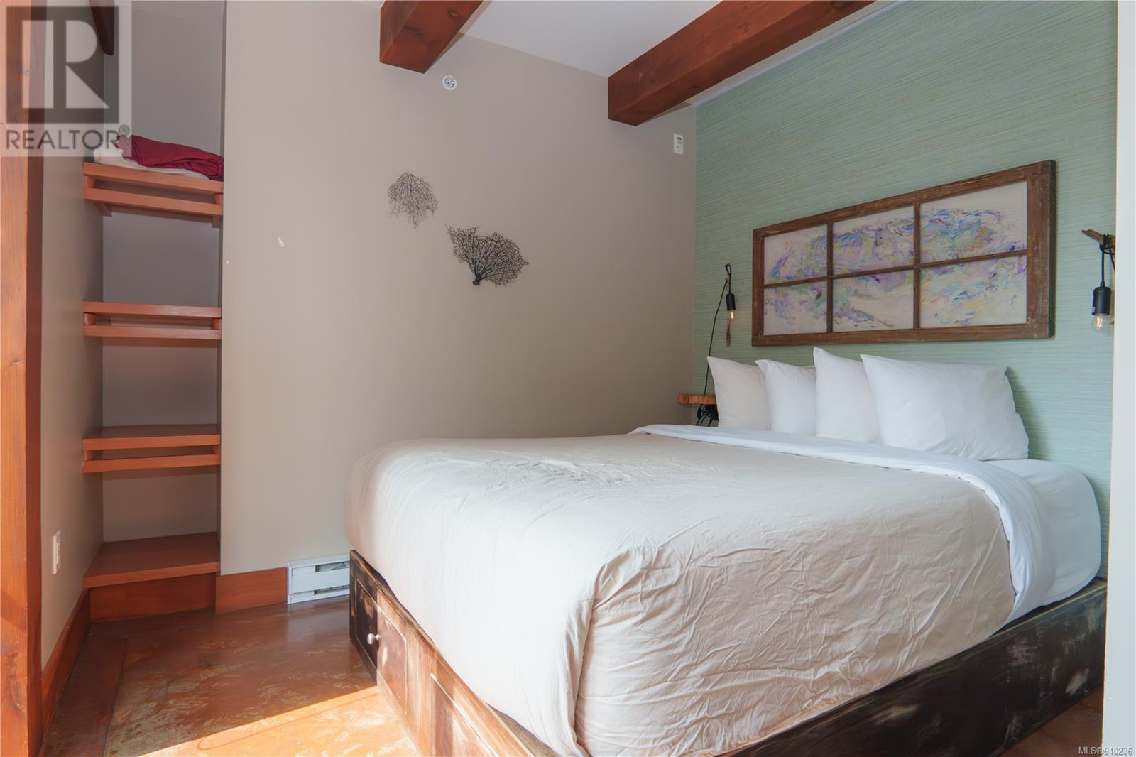 NIGHTLY RENTAL or LIVE-IN - Sunrise ocean view timber frame condo with locally sourced cedar and Douglas fir beams for sale at Whiskey Landing in the heart of Ucluelet. This beautifully appointed homey and elegant suite offers two bedrooms and two bathrooms, with an open living, dining, and kitchen area to create a bright and spacious atmosphere. The master bedroom has an ensuite bathroom with a soaker tub, making it a great space to relax. Indulge in views of Ucluelet Inlet and surrounding mountains from the comfort of your living area with a cozy fireplace. This property can be used as your permanent home, a personal vacation getaway, or a self-managed nightly rental, providing flexibility to meet your unique needs. Current use is a residential apartment and part-time nightly rental. Easy access to the Village Square, Whiskey Dock, Ucluelet Aquarium, and all of the town amenities. Tax rate is being changed to residential 5-6000 savings. Assumable mtg 2.19% for qualified buyer. (id:22211)