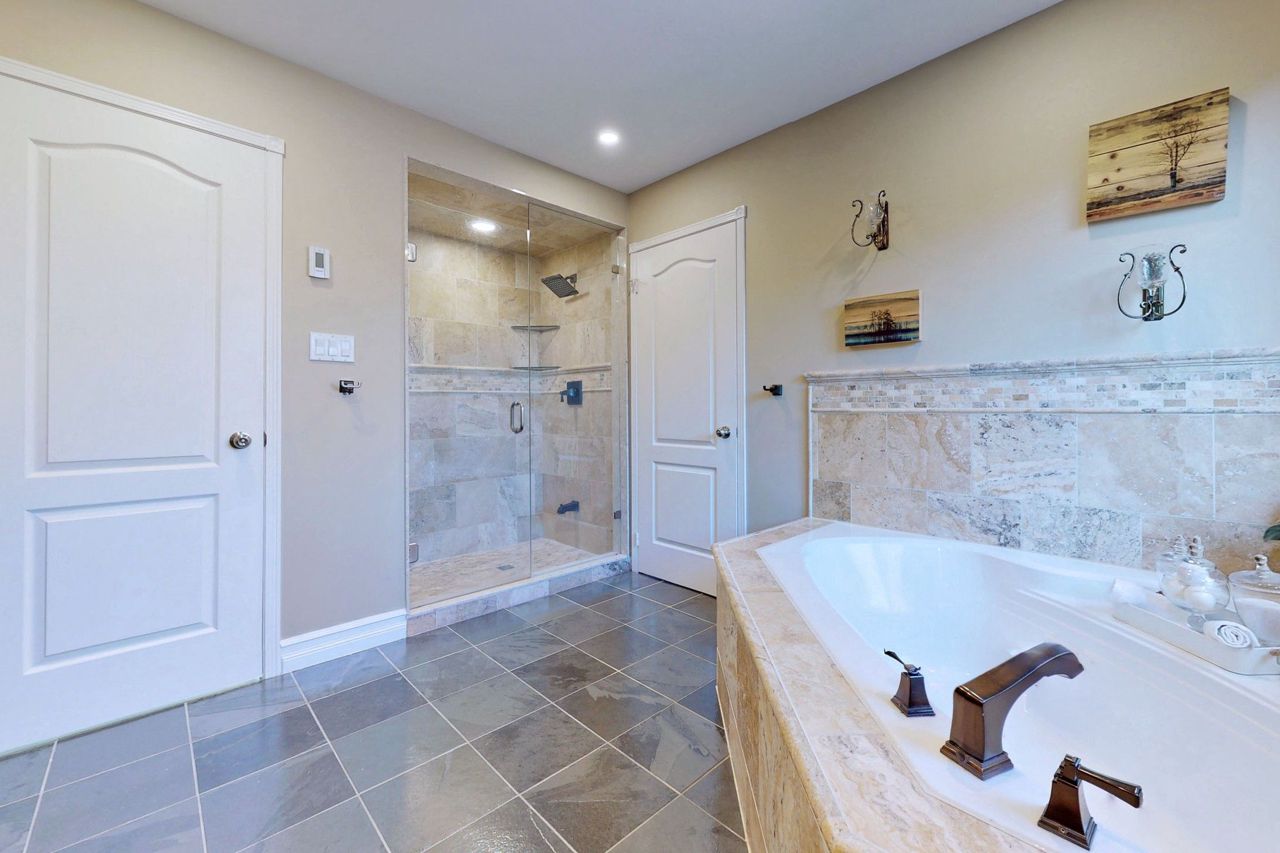 Stunning Home Located in Uxbridges' Prestigious Wooden Sticks Estates! Premium 59+ Ft frontage Lot on Quiet Street W/ Access to Walking Trails & Elgin Park just steps away! Two Storey Family Home Offering over 3500 sq ft of living space! Spacious, Bright Front Foyer Greets you upon Entering. Main Fl Boasts 9 Ft Ceilings & Hardwood Flrs. Sitting Rm at Front Could Easily be Home Office Set Up. Custom Extended Area in Kitchen W/Eat-In & Gleaming Slate Flrs., Patio Door to Deck For Summer Entertaining. Main Fl Great Rm With Soaring Ceilings Yet Cozy W/ Fireplace. Laundry Rm w/ Access to Garage. Primary Bdrm Features Upscaled Reno'd Ensuite W/ Heated Flrs & Lg Walk In Closet, 3 addtional Great Sized Bdrms & Semi Ensuite, Open Area Overlooking the Fam/Liv Rm has Multiple Purposes and could be closed off for additional Bdrm. Fantastic Lower Level features Finished Entertaiment Rm w/ FP, Exercise Area & Custom Wet Bar. Lg Storage Room. Fenced In Private Backyard w/ Mature Trees.Walking Distance Wooden Sticks Golf Course and all your shopping needs. Shingles Approx 6 yrs.