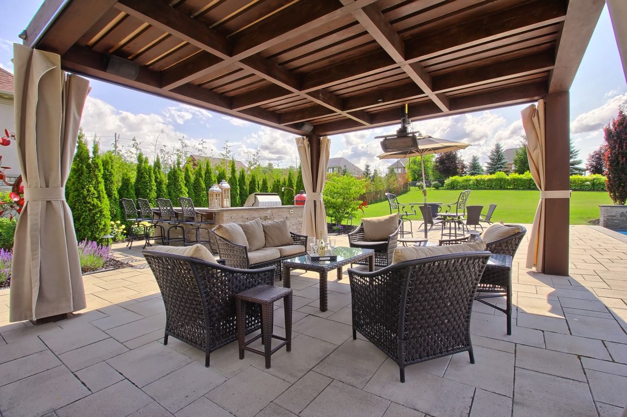 Exterior FeaturesBuilt-In-BBQ,Lawn Sprinkler System,Security Gate,Deck,Landscape Lighting,Patio,Porch,Landscaped