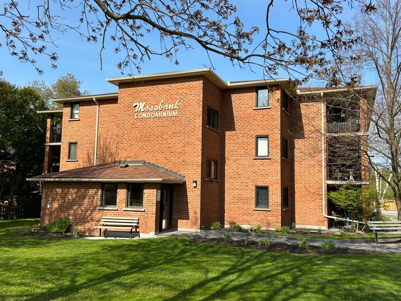 maintained building near downtown. Quiet setting with ravine & stream at back. Nicely landscaped. Common areas