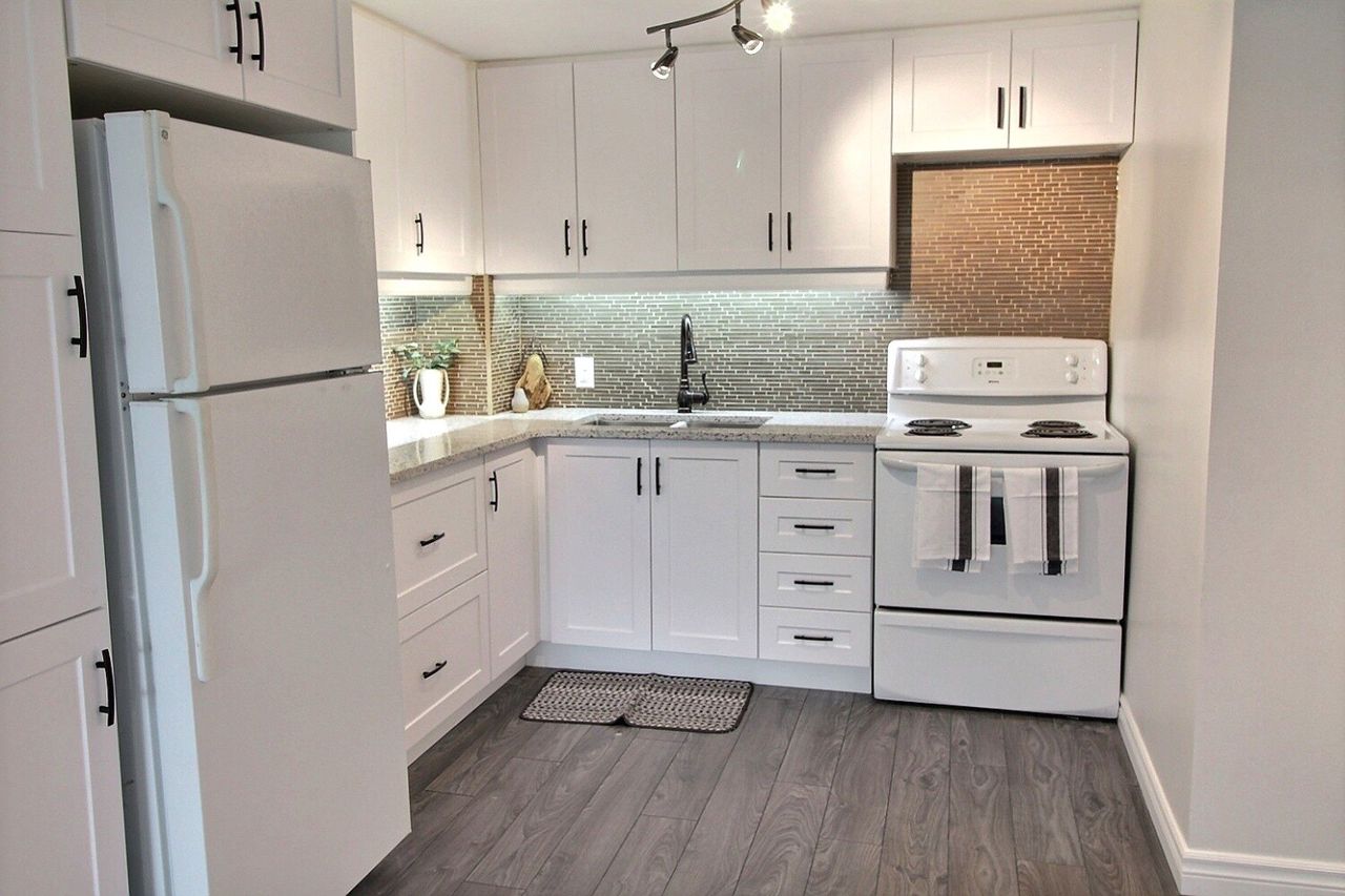 Transit & GO Bus available. Brand new modern kitchen & bath. Large living & dining room area w w/out to covered balcony & forest view. New broadloom in BR's. Low maintenance fee incl most utilities. Near common laundry room. 1 reserved parking + visitor. Enjoy maintenance free living. Shows like new!