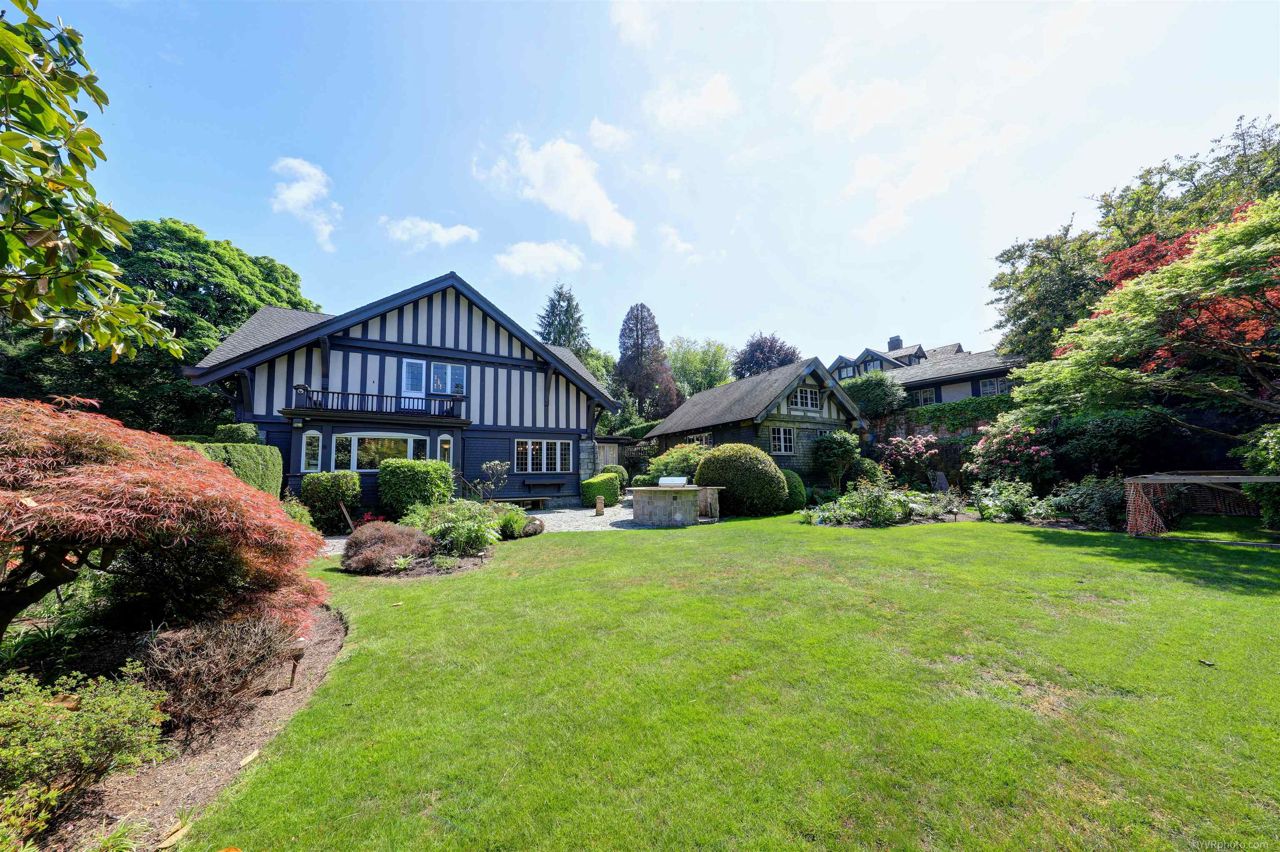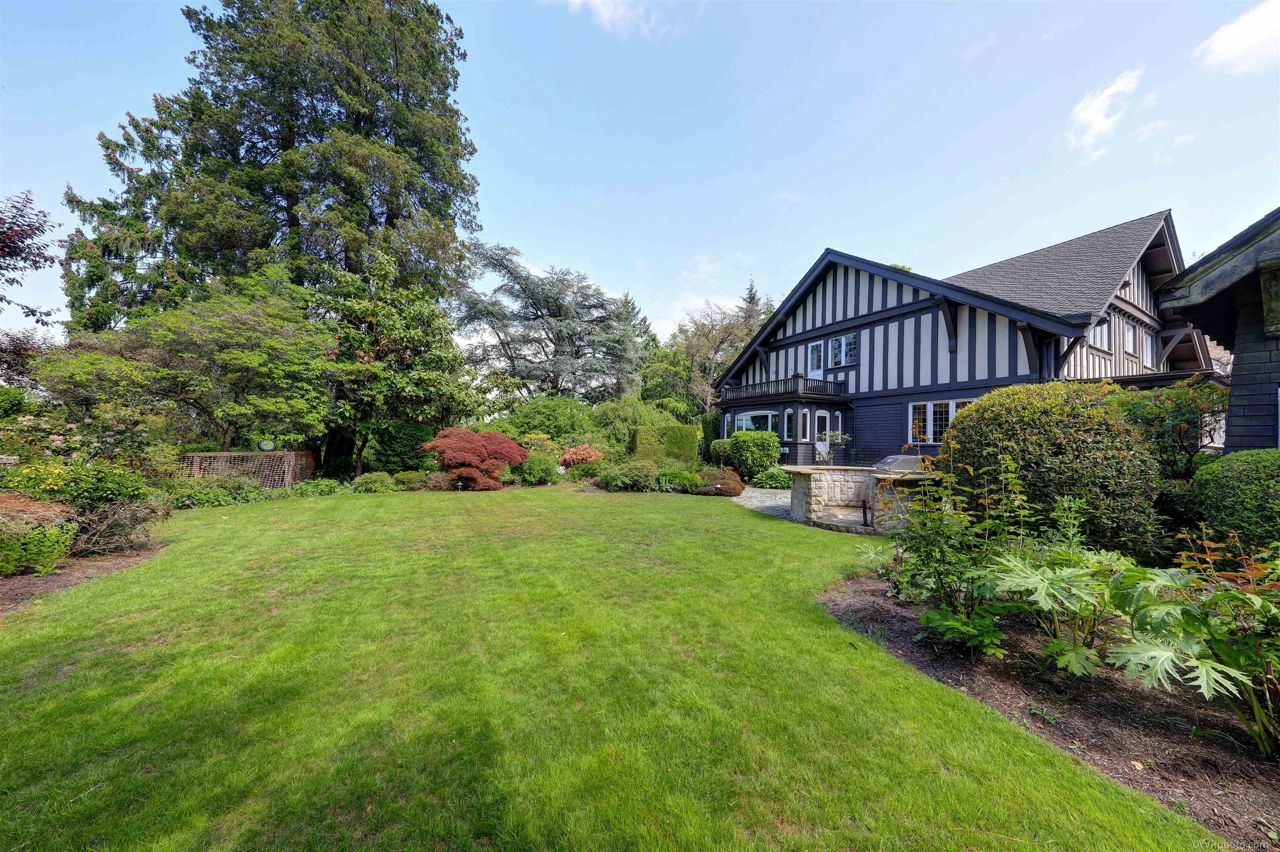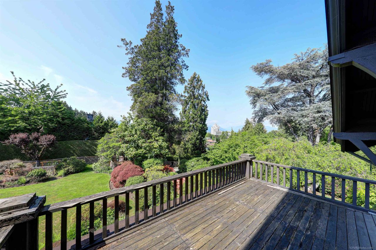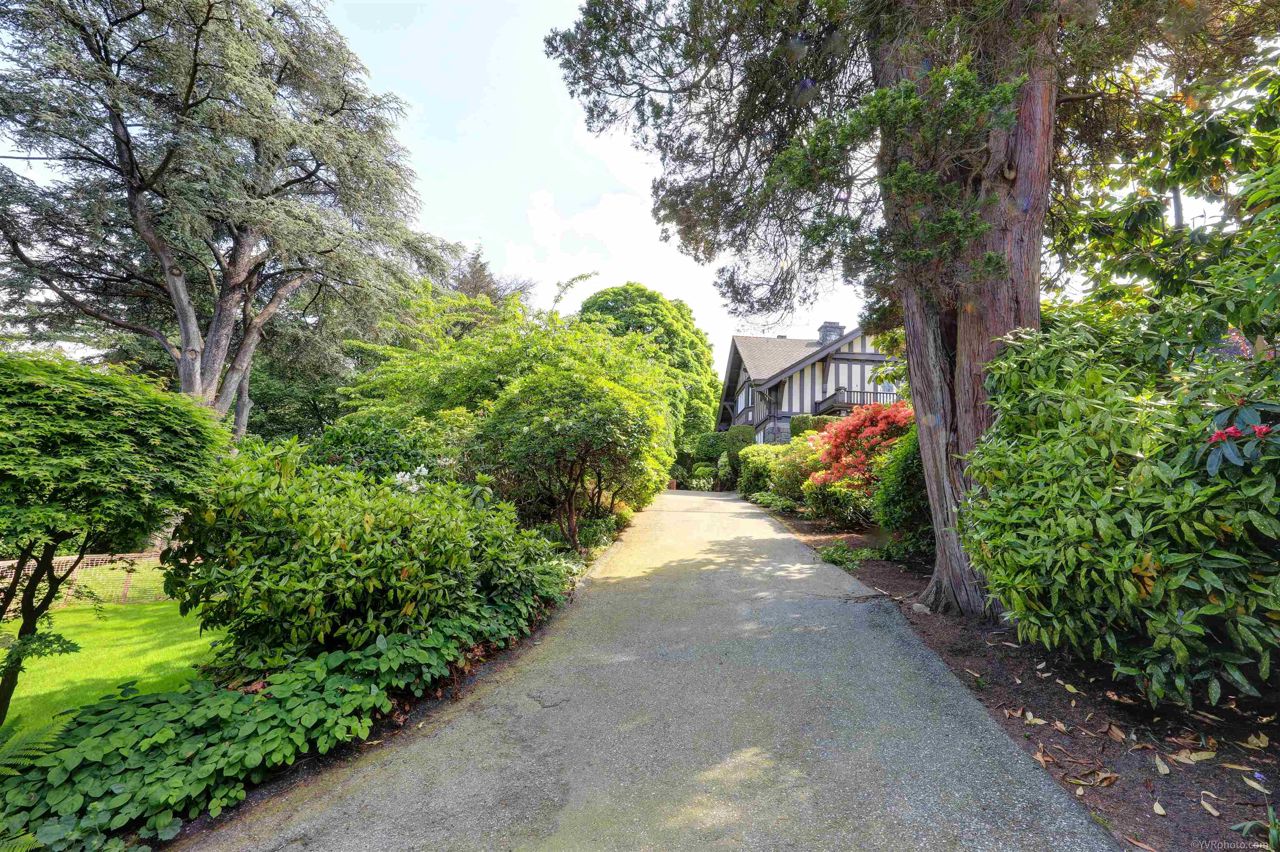 Majestic Sam Maclure Tudor Mansion in 1st Shaughnessy District. RARE find 28,000 sf land (158' X 178'/168'). Sits high on a private and gated property. 3 levels with almost 6000 sf living area. Exceptional grand principal rooms on the main floor with all heritage features intact. Oak floors, wainscoting, coffered ceilings, and leaded glass windows. 4 generous size bedrooms up. Large master bedroom with City & Mountain View. 2nd bedroom with a balcony overlooks the beautiful & mature garden. The lower-level garden is a perfect putting green for golf lovers. Updated bathrooms, heated floor in powder room. A/C, etc.…. Terrific Shaughnessy location with easy access to downtown and the airport. The perfect home to live in or redevelop with the approved plans. Open House: Oct 1, Sun, 2-4PM.