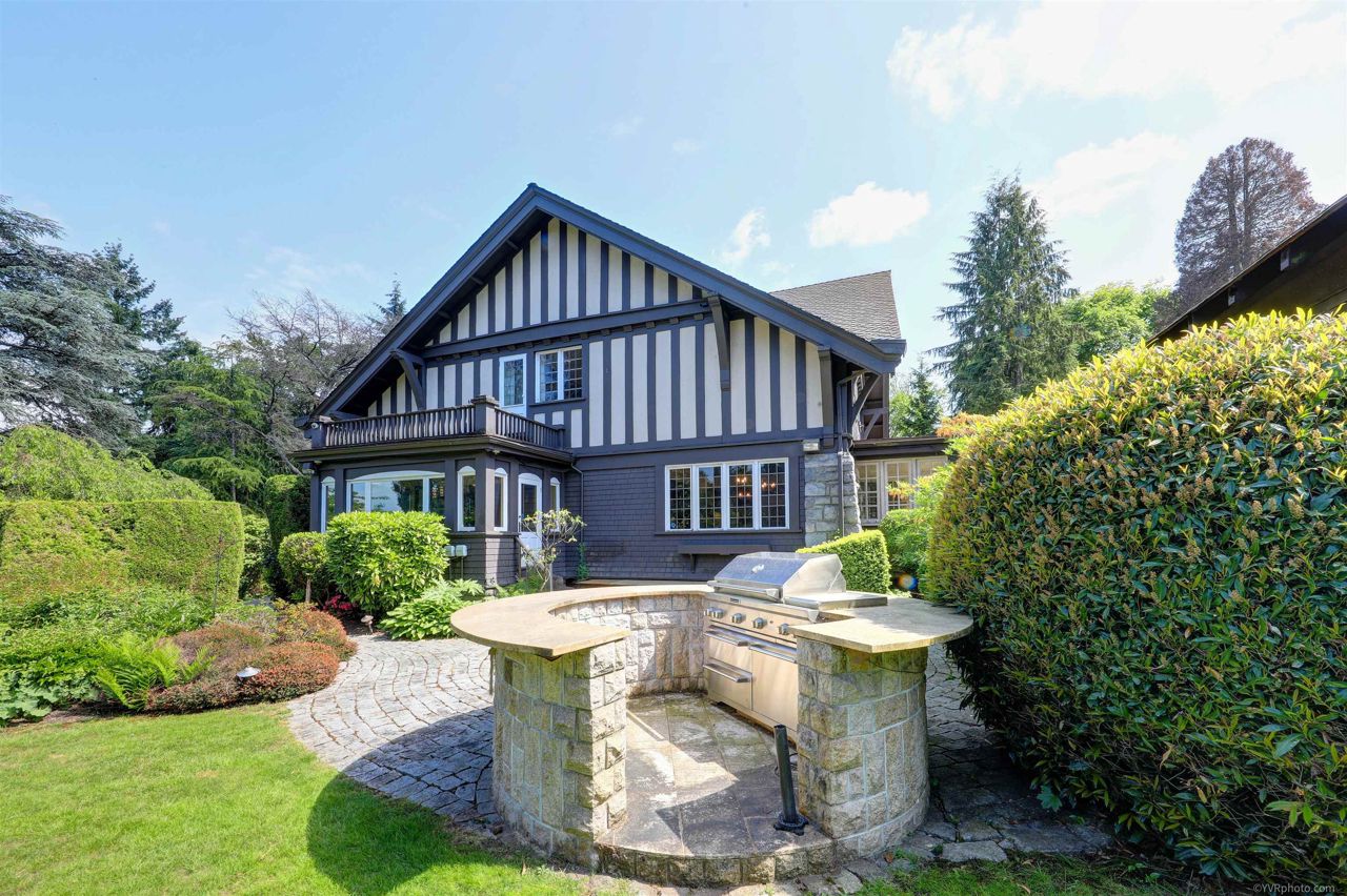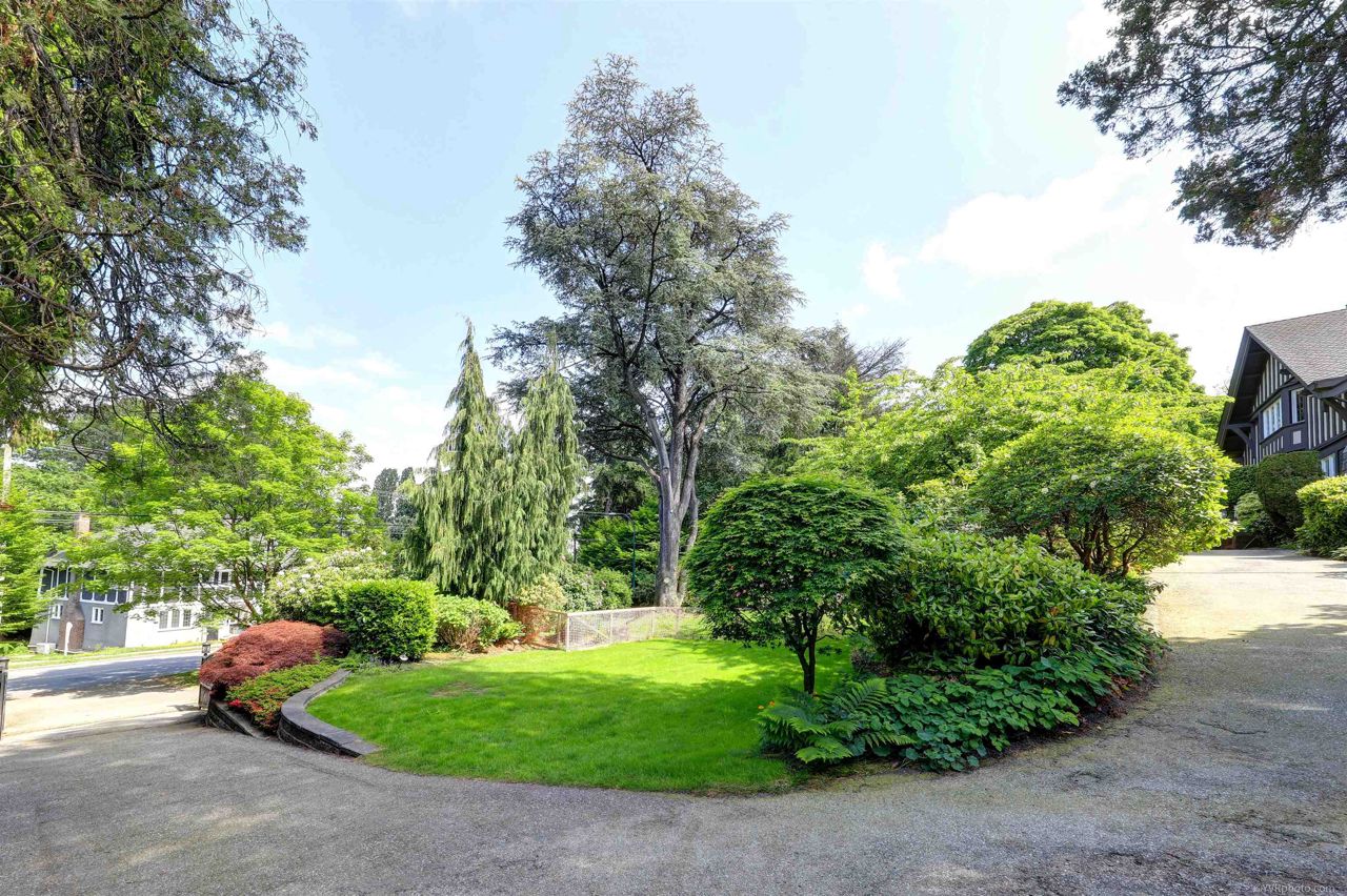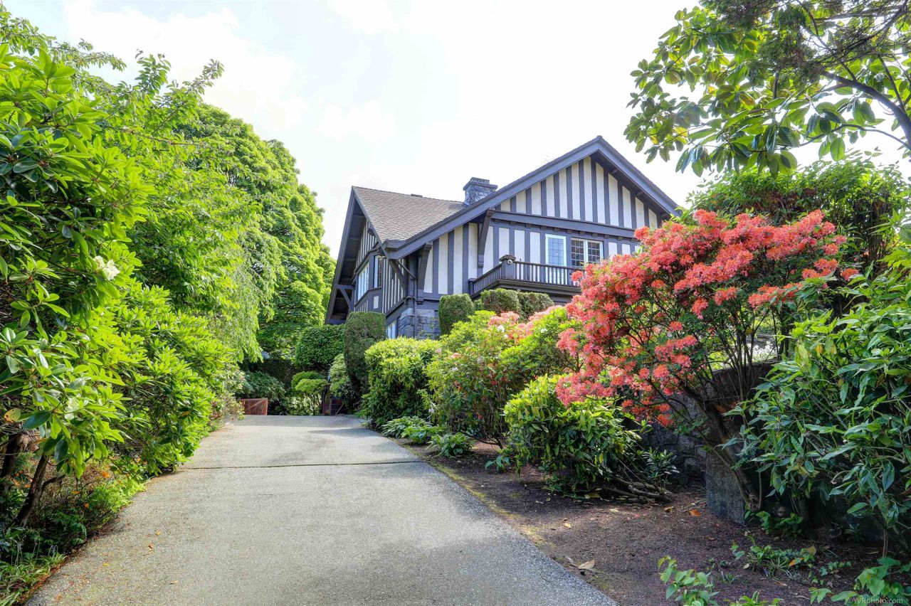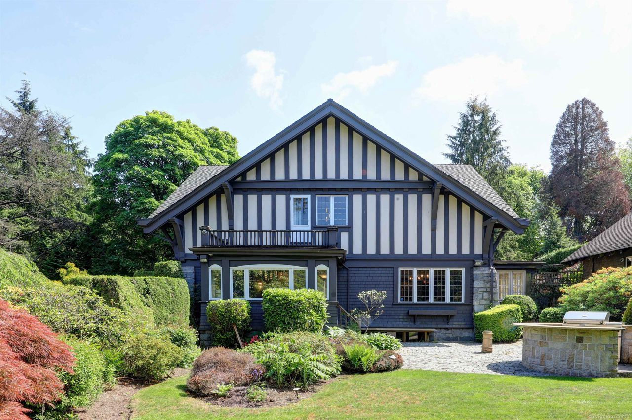 Majestic Sam Maclure Tudor Mansion in 1st Shaughnessy District. RARE find 28,000 sf land (158' X 178'/168'). Sits high on a private and gated property. 3 levels with almost 6000 sf living area. Exceptional grand principal rooms on the main floor with all heritage features intact. Oak floors, wainscoting, coffered ceilings, and leaded glass windows. 4 generous size bedrooms up. Large master bedroom with City & Mountain View. 2nd bedroom with a balcony overlooks the beautiful & mature garden. The lower-level garden is a perfect putting green for golf lovers. Updated bathrooms, heated floor in powder room. A/C, etc.…. Terrific Shaughnessy location with easy access to downtown and the airport. The perfect home to live in or redevelop with the approved plans. Open House: Oct 1, Sun, 2-4PM.