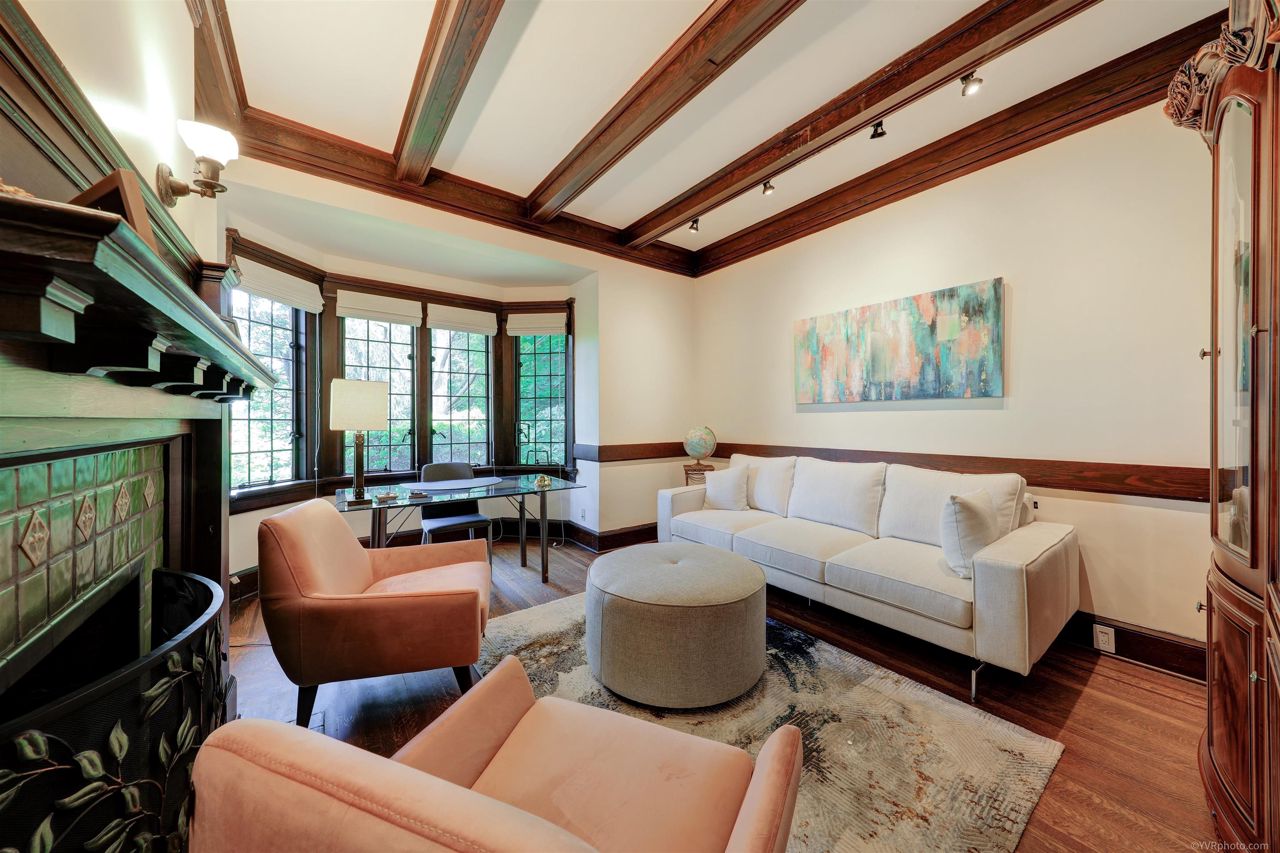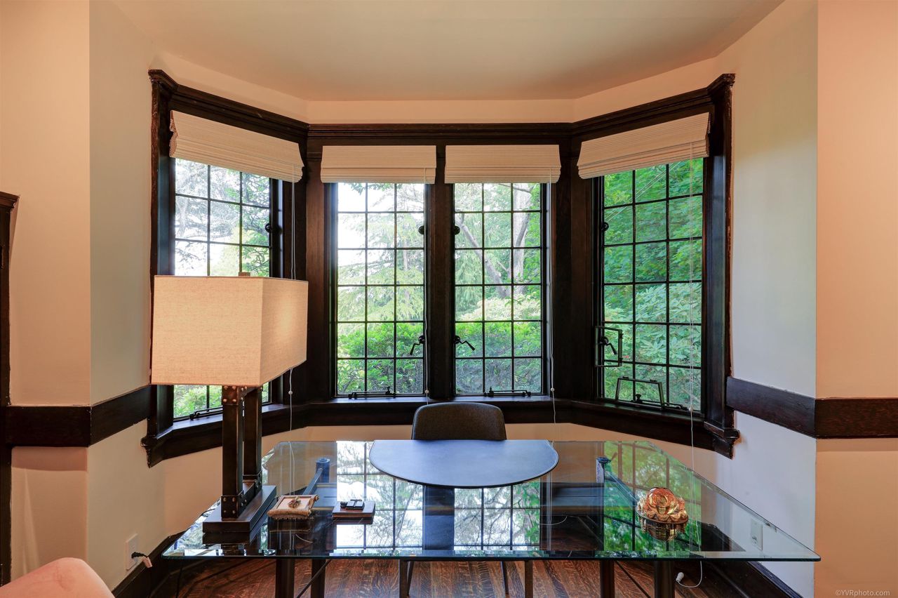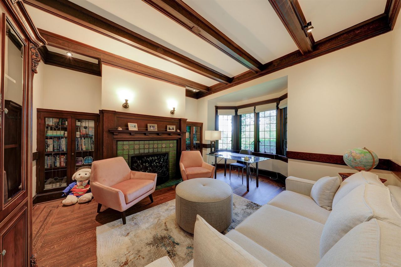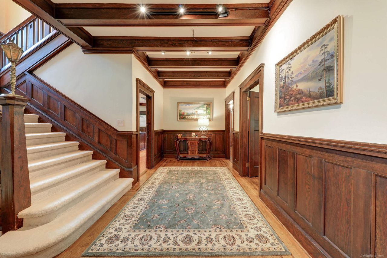 Majestic Sam Maclure Tudor Mansion in 1st Shaughnessy District. RARE find 28,000 sf land (158' X 178'/168'). Sits high on a private and gated property. 3 levels with almost 6000 sf living area. Exceptional grand principal rooms on the main floor with all heritage features intact. Oak floors, wainscoting, coffered ceilings, and leaded glass windows. 4 generous size bedrooms up. Large master bedroom with City & Mountain View. 2nd bedroom with a balcony overlooks the beautiful & mature garden. The lower-level garden is a perfect putting green for golf lovers. Updated bathrooms, heated floor in powder room. A/C, etc.…. Terrific Shaughnessy location with easy access to downtown and the airport. The perfect home to live in or redevelop with the approved plans. Open House: Oct 1, Sun, 2-4PM.