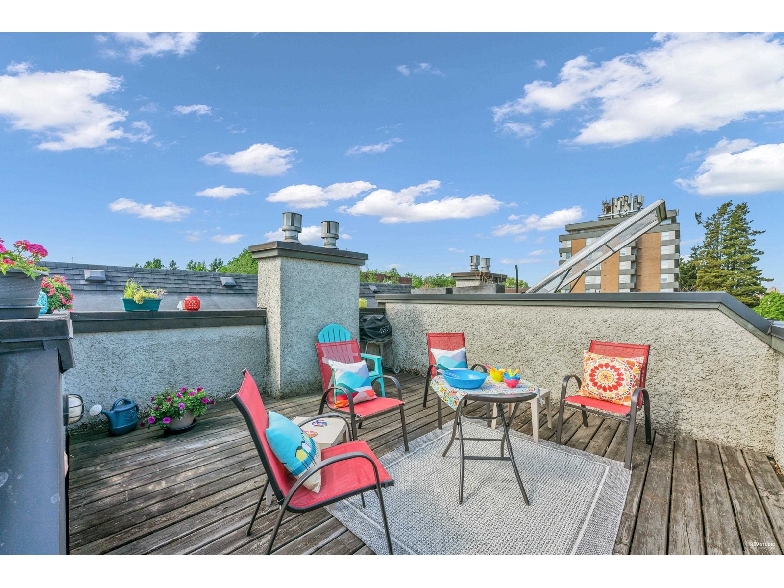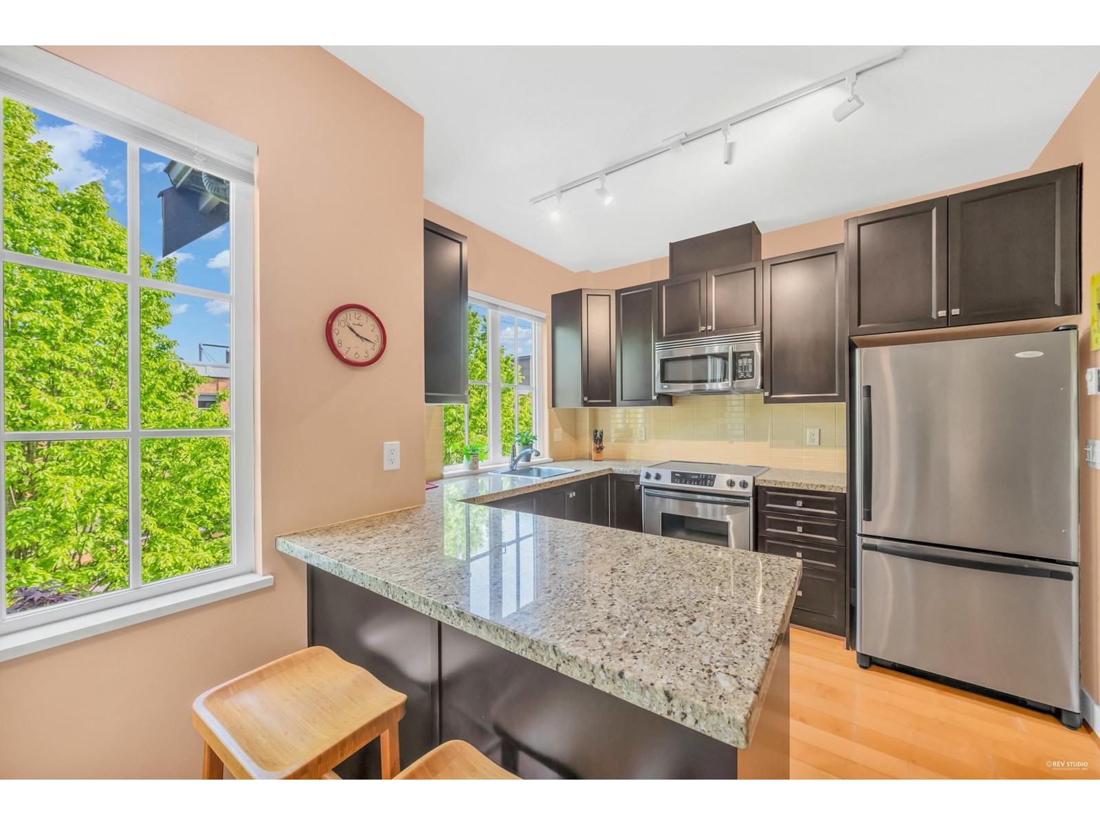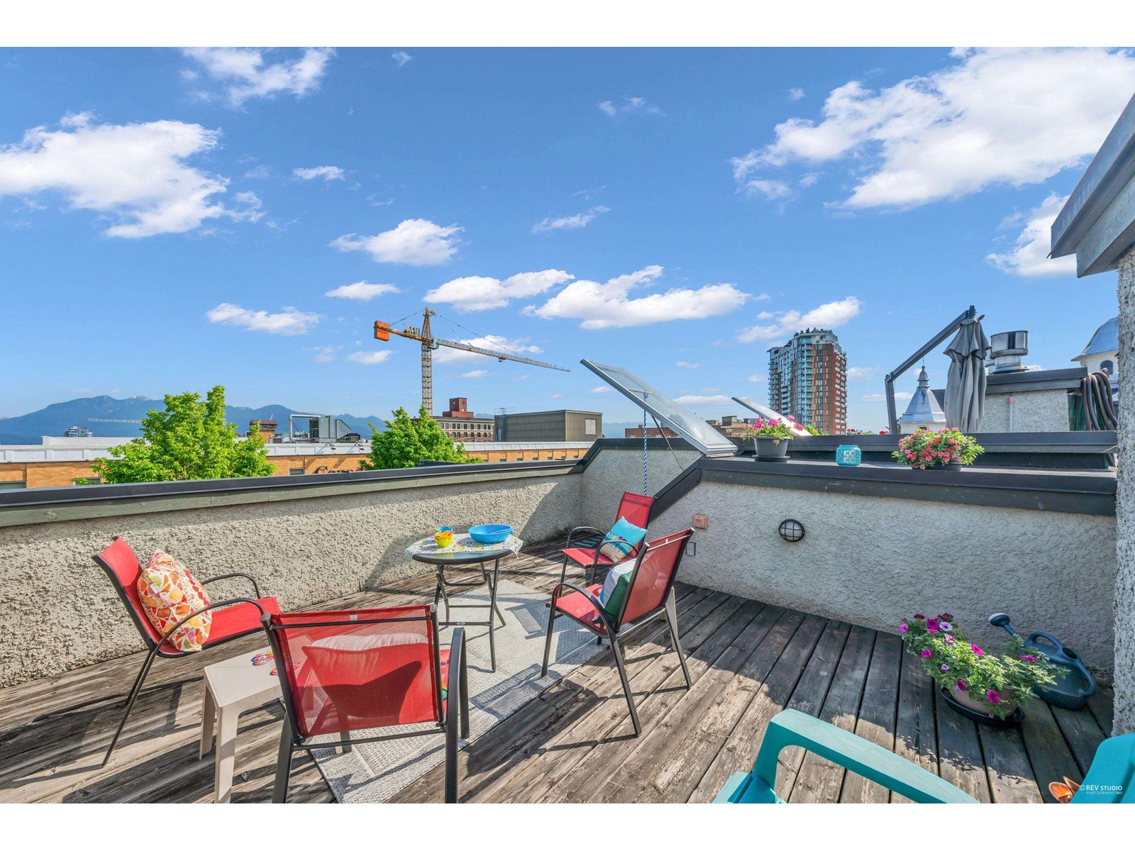 Rarely available 2 Bed. & Den townhouse at Maison in the heart of SOMA. Heritage style boutique complex, crafted by Formwerks. 1 of only 3 units with roof deck & view of North Shore Mountains & Downtown. Layout is great for privacy of your teenager or guests, as bedrooms are separated. Den next to the primary bedroom makes a lovely nursery. A cook's kitchen offers a winter mountain view. Extremely well cared for home. Small friendly strata, with excellent maintenance history. Ditch the car, and shop local - everything you need including future Skytrain station is a short walk away. Quiet treed street with dedicated bike route. A location to be envied. 2 pets OK (cats or dogs). All showings by appointment. (id:22211)