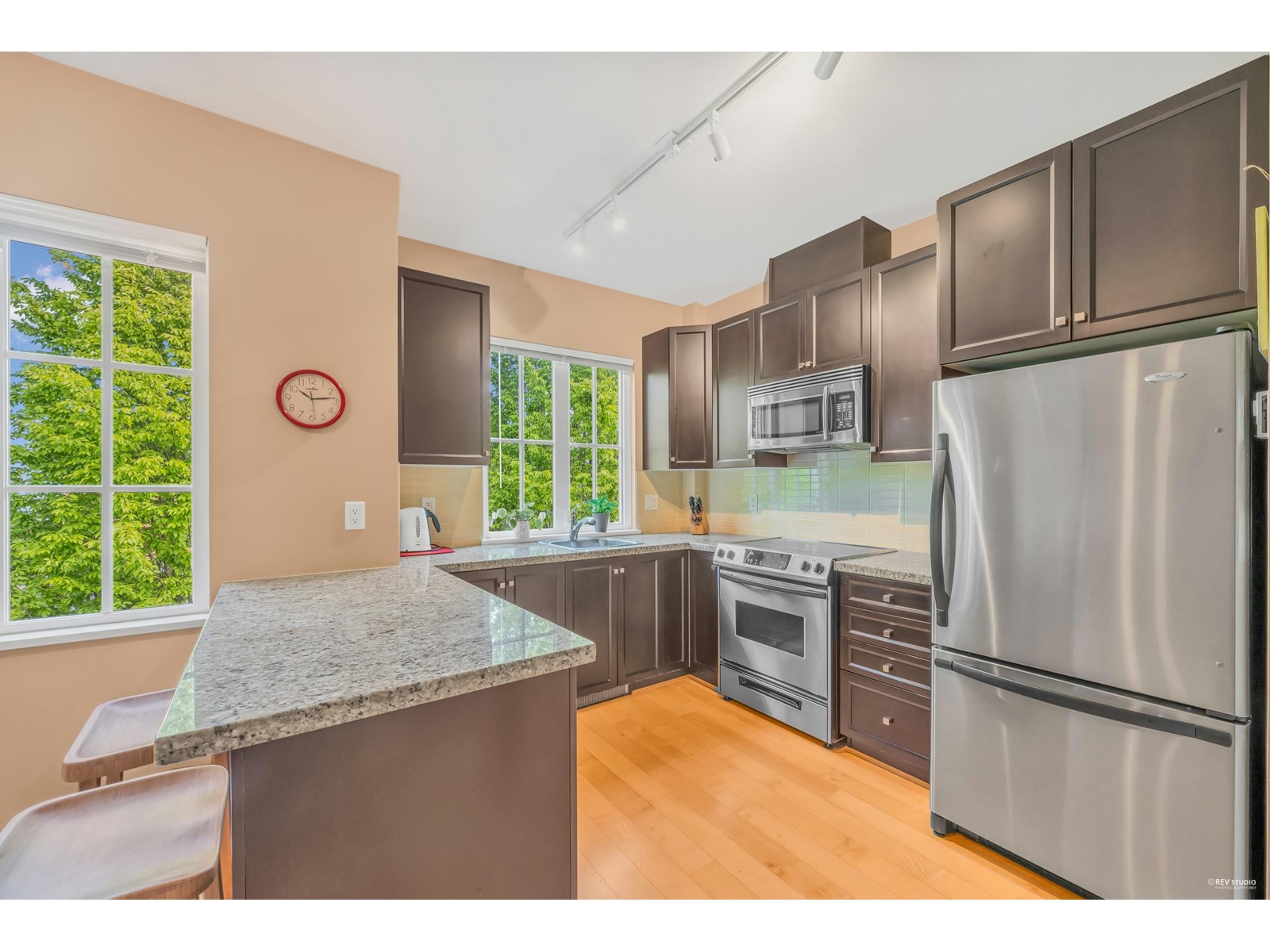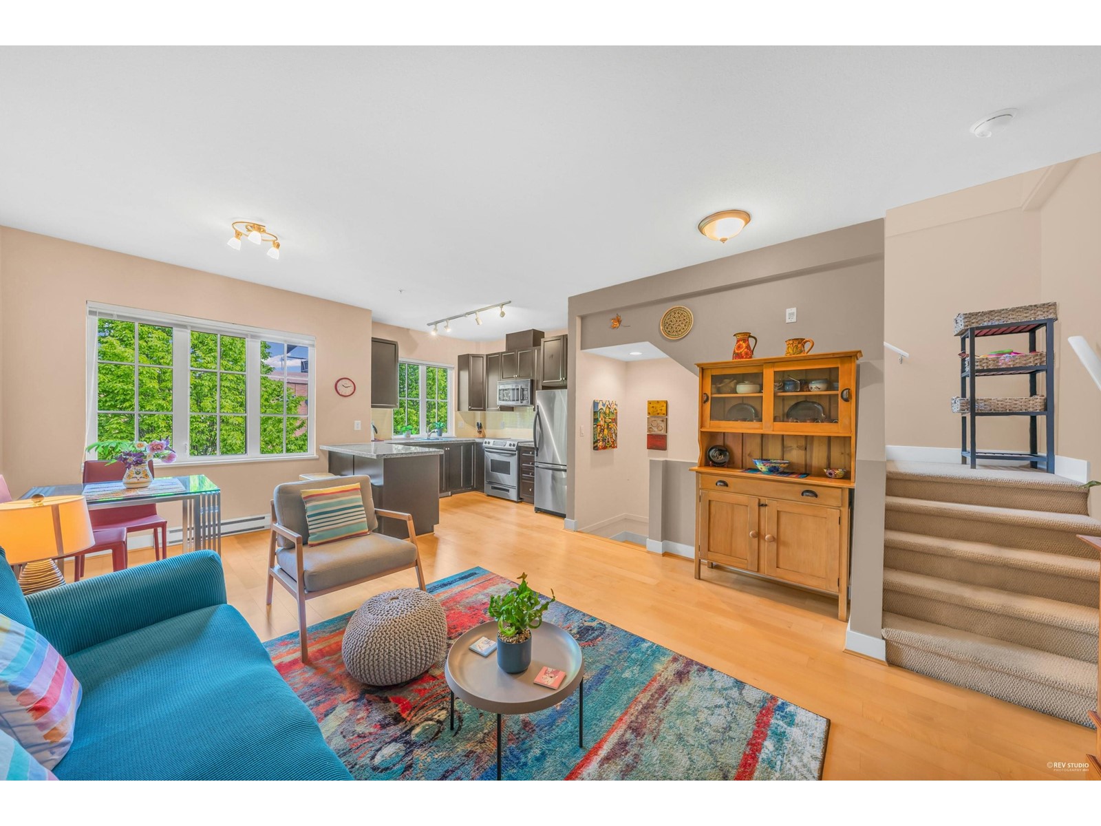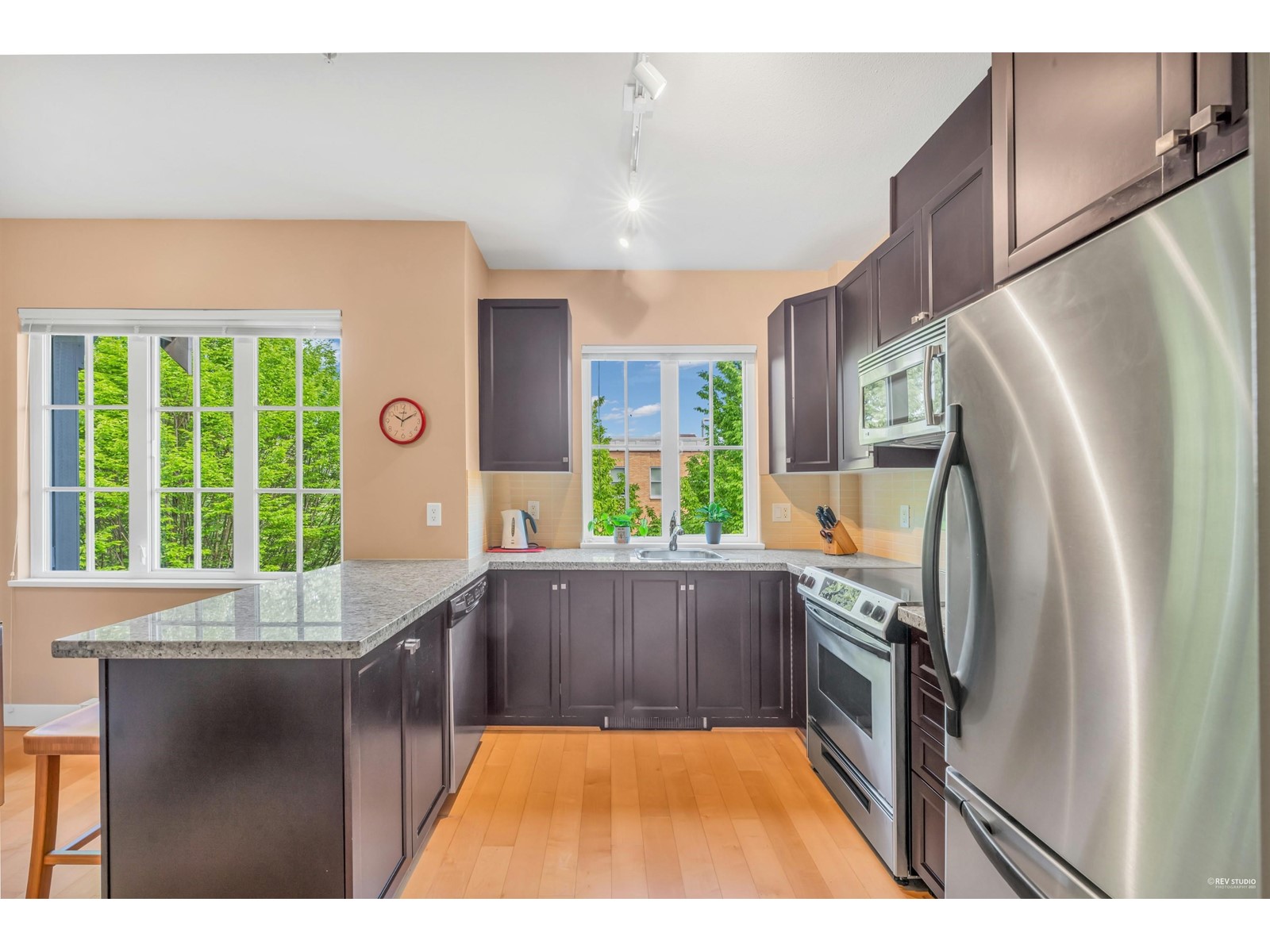 Rarely available 2 Bed. & Den townhouse at Maison in the heart of SOMA. Heritage style boutique complex, crafted by Formwerks. 1 of only 3 units with roof deck & view of North Shore Mountains & Downtown. Layout is great for privacy of your teenager or guests, as bedrooms are separated. Den next to the primary bedroom makes a lovely nursery. A cook's kitchen offers a winter mountain view. Extremely well cared for home. Small friendly strata, with excellent maintenance history. Ditch the car, and shop local - everything you need including future Skytrain station is a short walk away. Quiet treed street with dedicated bike route. A location to be envied. 2 pets OK (cats or dogs). All showings by appointment. (id:22211)
