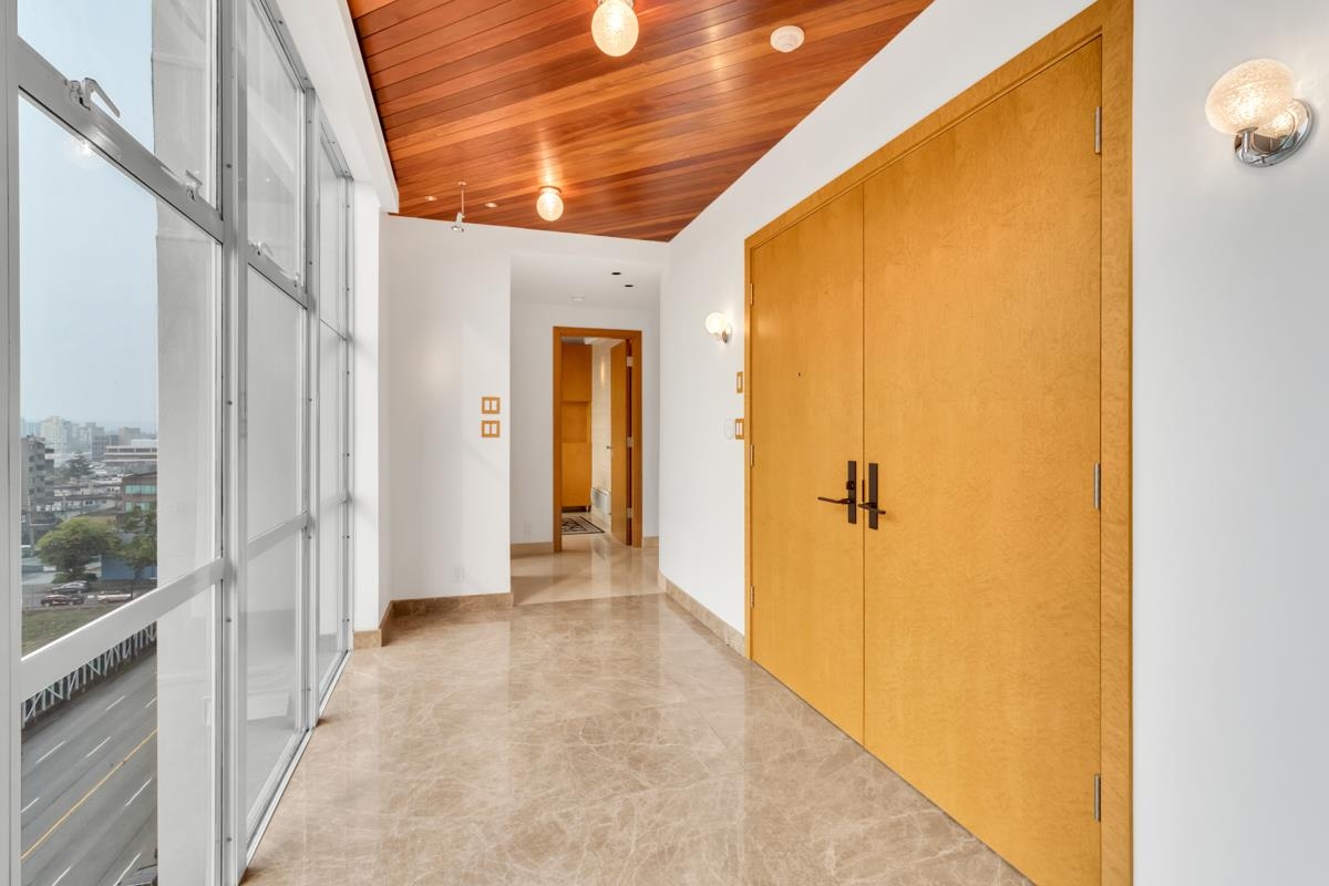 Incredible water, mountain and downtown views. The Full floor (elevator into unit) 3 bed 3 bath unit has been renovated to the utmost of standards. 1885 SQFT with 360 degree views and all day natural light. Polished Limestone throughout with radiant in-floor heat. Everything is custom, Maple cabinets, cherry wood ceilings. Complete automation with Lutron lighting. Kitchen features Thermador & SubZero appliance package. Master Bath with a Kohler steam/ aromatherapy shower and large soaker tub. large wrap around deck with breathtaking views and a 1000 SQFT private roof deck. 2 parking and locker included. Please call to schedule your private showing for this beautiful home.