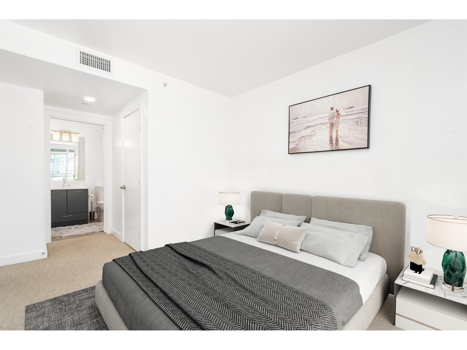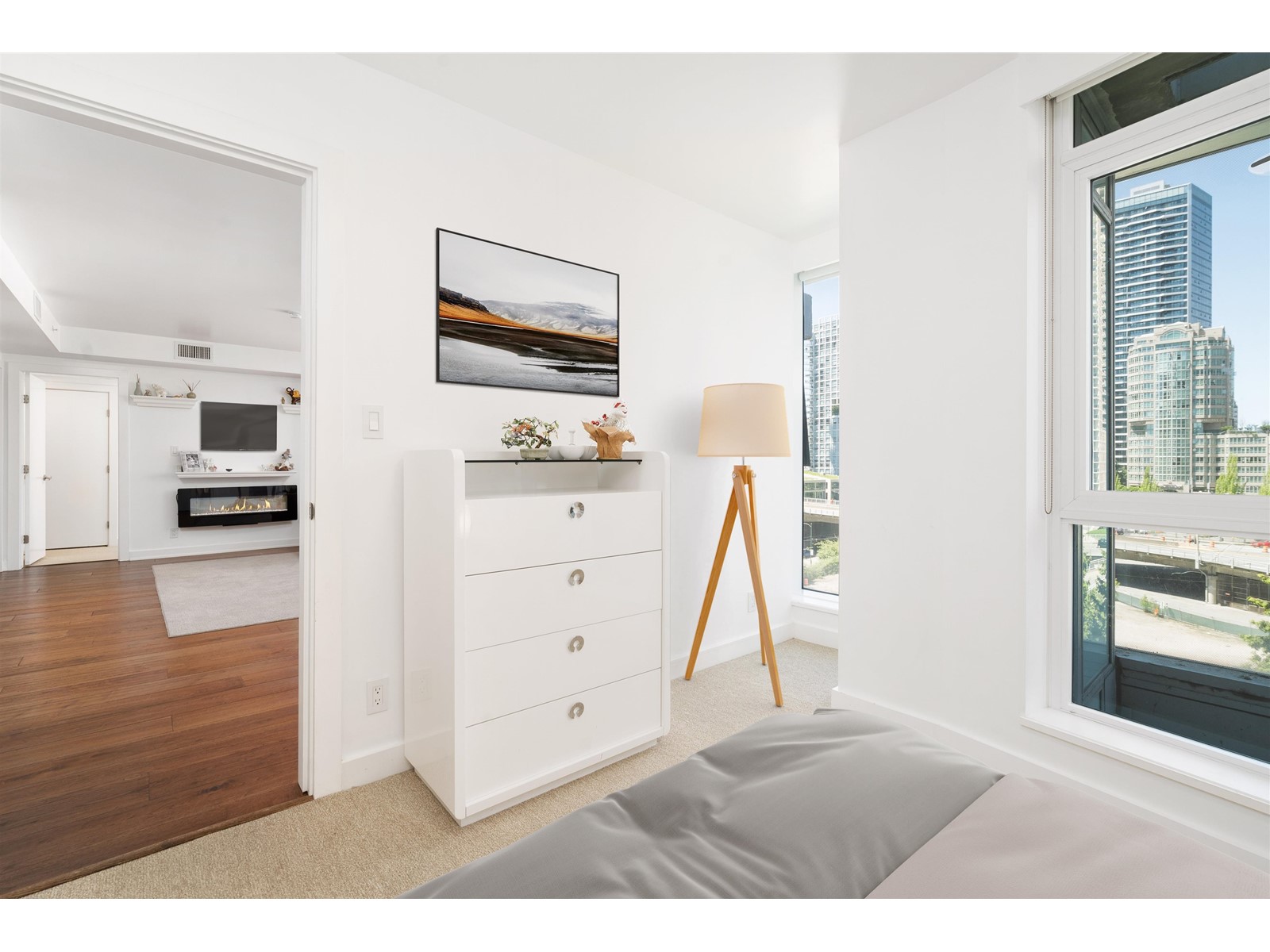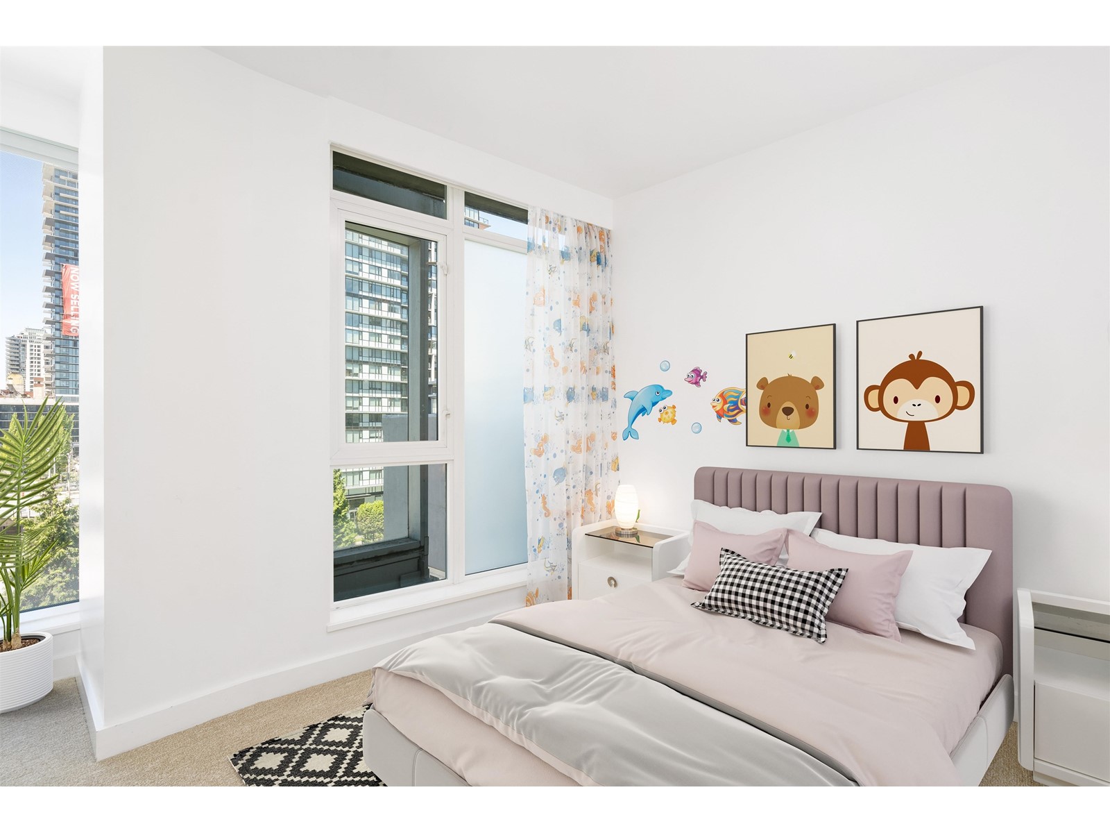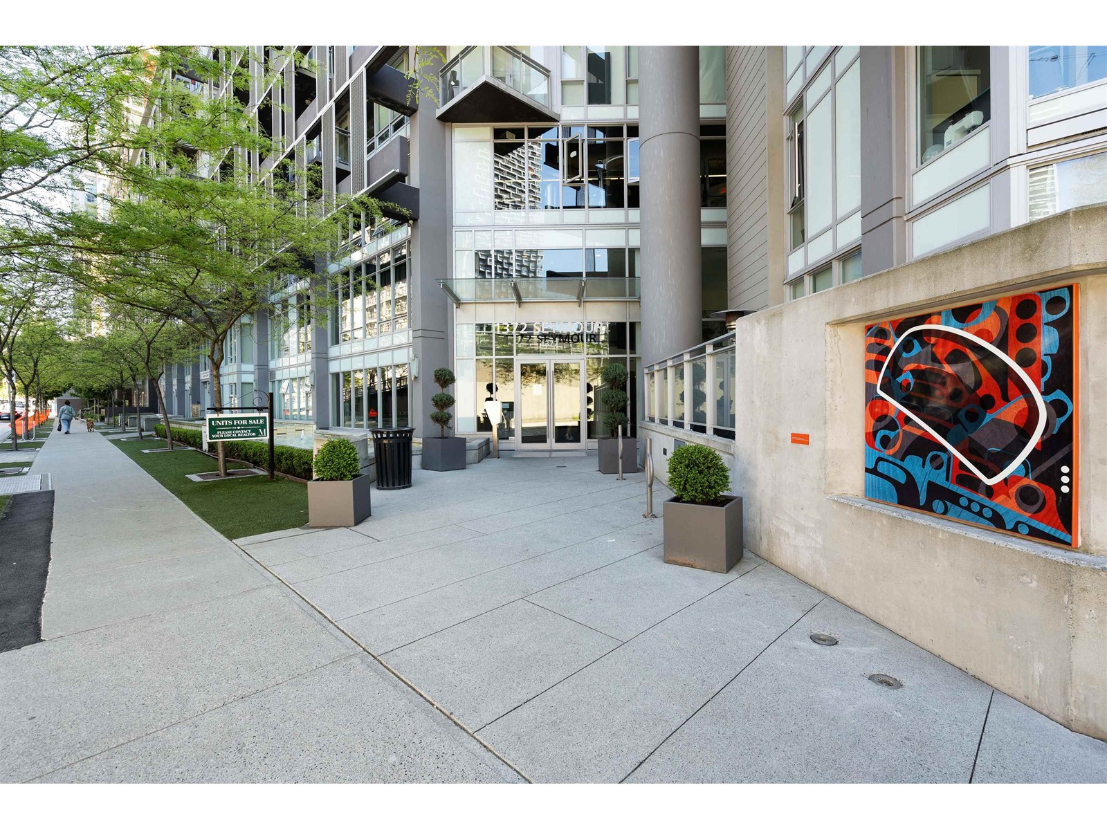 2BD+DEN w/West VIEWS+lots of windows & natural light @The Mark. Located in vibrant Beach District by the Seawall, parks, playgrounds, beaches, finest restaurants, shopping & transit. This layout is perfect! OPEN inviting kitchen with SS appliances, composite stone countertops, under cabinet lighting & gas stove; SPACIOUS dining & living for the family/entertainment. 2 BDs spaced far from each other for comfort & privacy. Enjoy North Shore Mountains, City & some Ocean view from a spacious balcony. A/C+forced air heating. Rollerblinds & custom drapes. Built-in closets in BDs. Resort like amenities: outdoor Pool & Hot tub, HUGE gym, outdoor kitchen/BBQ, Party Rm, Sauna+Steam Rm, 24-hour Concierge, 3 Guest suits, Kids Play Rm w/toys & matts, Office Rm. 1 Parking+1 Storage. AIRBNB allowed. (id:22211)