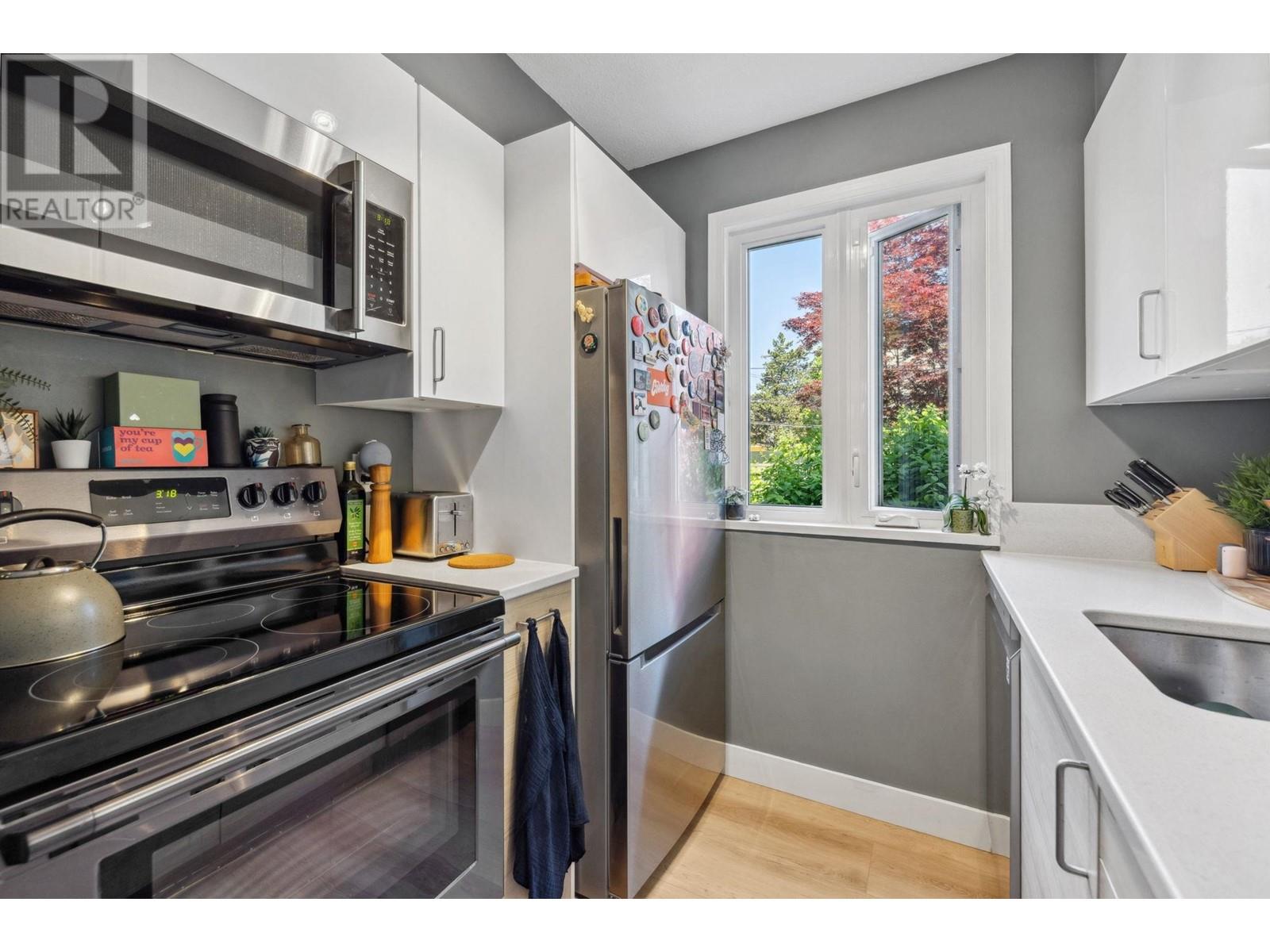 Welcome to this beautifully renovated one-bedroom corner unit, located in the heart of one of Vancouver´s most iconic neighbourhoods. This bright and spacious home offers a functional layout and stylish cosmetic updates throughout, such as a modern kitchen with an extra window, quartz countertops, stainless steel appliances, renovated bathroom, paint, laminate flooring, updated lighting, and a Mysa smart baseboard heating system. Enjoy the outdoors from the large west facing balcony, an extension of your living space. The unit also includes in-suite storage, one parking stall, shared laundry, and is both pet and rental friendly. The building is fully rain screened and features a communal EV charging station. Located within walking distance: the SkyTrain stations, the future Broadway Line, parks, and schools. This location puts everything you need right at your doorstep. Book your private showing today!***Open House Sun, 1-3pm*** (id:61201)