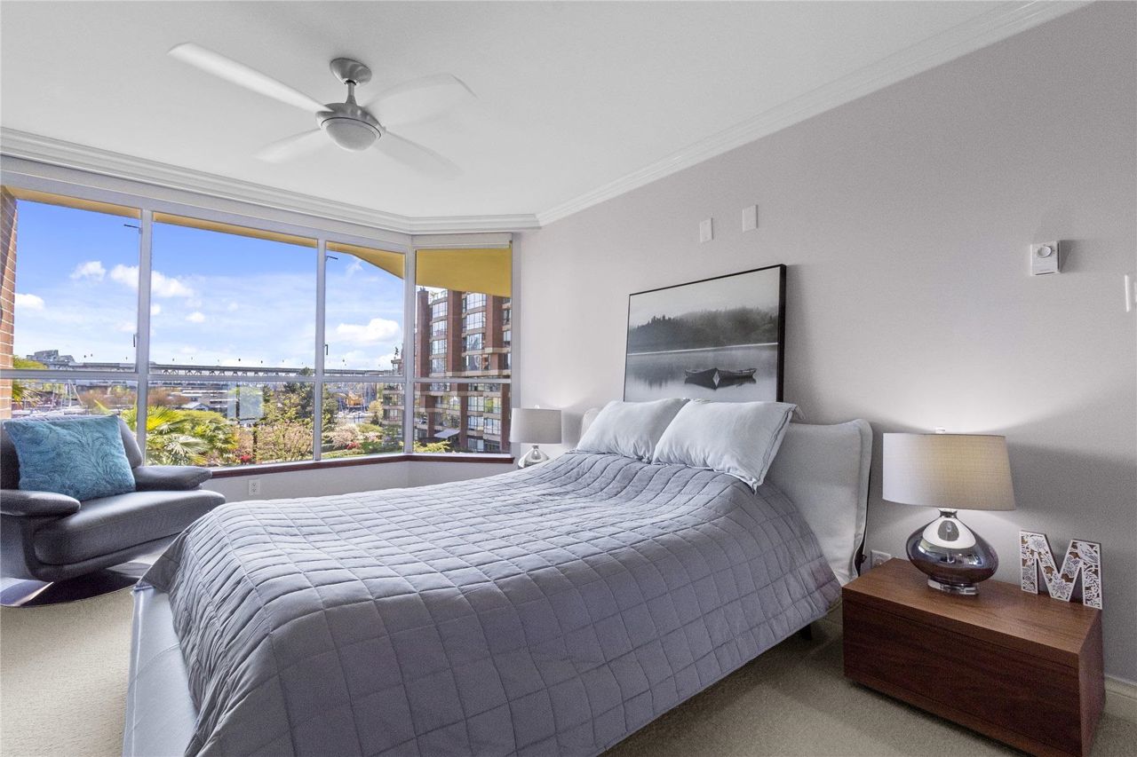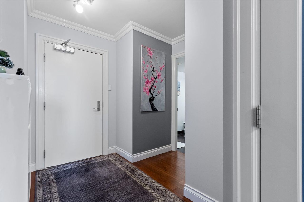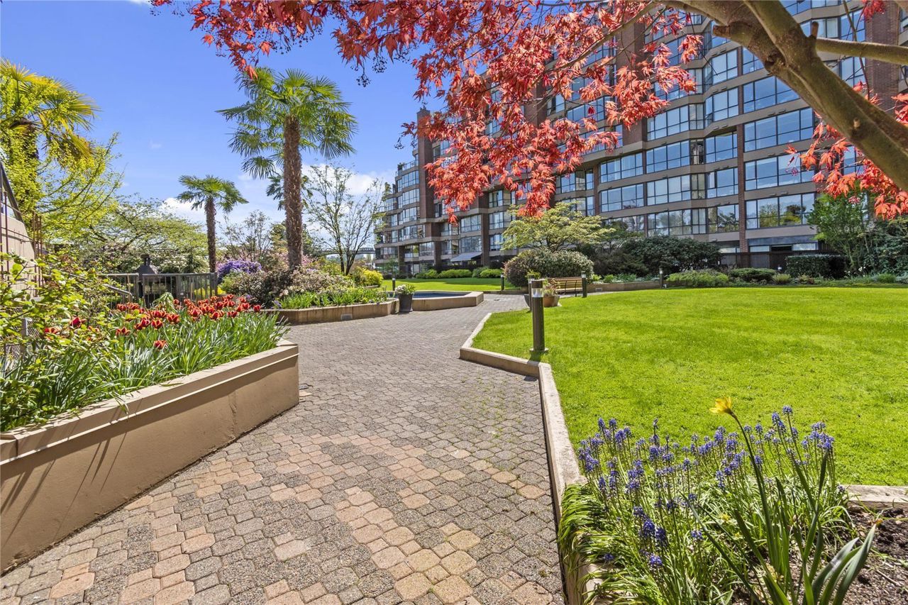 Welcome to the Resort living by the water, Harbour Cove! Stunningly renovated 2beds& 2full bath is in immaculate condition. A beautiful chef’s kitchen with fantastic open layout and tons of storage. Handsome hardwood floors throughout. Caesarstone counters in the kitchen and both bathrooms. Aqua jet Bain Ultra soaker tub in master spa like bathroom. Generous room sizes accommodate house size furniture. Spectacular views overlooking the sumptuous gardens to the marina and gorgeous city skyline from the Solarium room/can be office space. Fantastic rec facilities , indoor swimming pool, jacuzzi, Table tennis/exercise rm, Golf Practice. squash & racquetball courts & library,Party rm. Just mins away to the seawall, Granville island. 1 Parking/1storage. NO pets allowed.