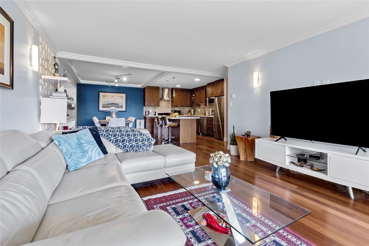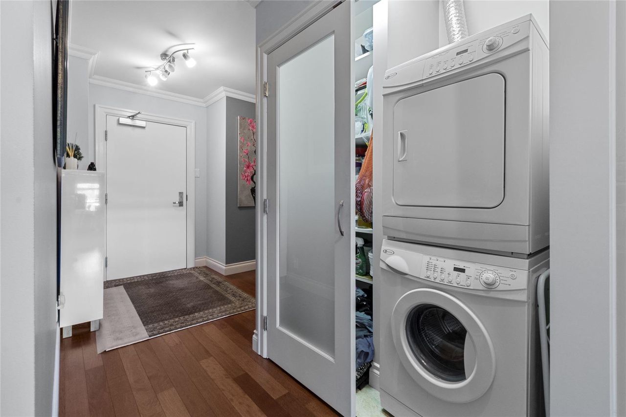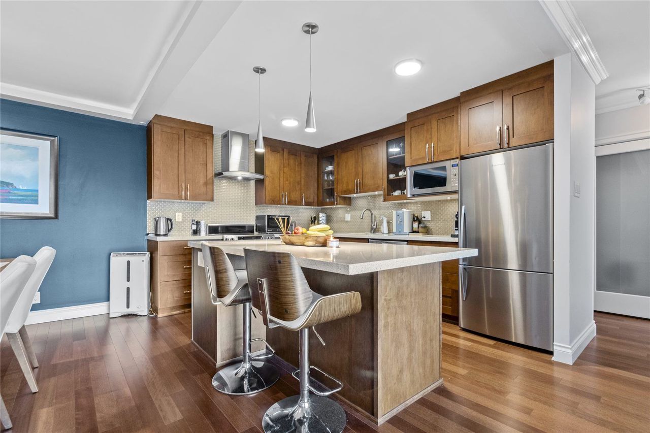Welcome to the Resort living by the water, Harbour Cove! Stunningly renovated 2beds& 2full bath is in immaculate condition. A beautiful chef’s kitchen with fantastic open layout and tons of storage. Handsome hardwood floors throughout. Caesarstone counters in the kitchen and both bathrooms. Aqua jet Bain Ultra soaker tub in master spa like bathroom. Generous room sizes accommodate house size furniture. Spectacular views overlooking the sumptuous gardens to the marina and gorgeous city skyline from the Solarium room/can be office space. Fantastic rec facilities , indoor swimming pool, jacuzzi, Table tennis/exercise rm, Golf Practice. squash & racquetball courts & library,Party rm. Just mins away to the seawall, Granville island. 1 Parking/1storage. NO pets allowed.