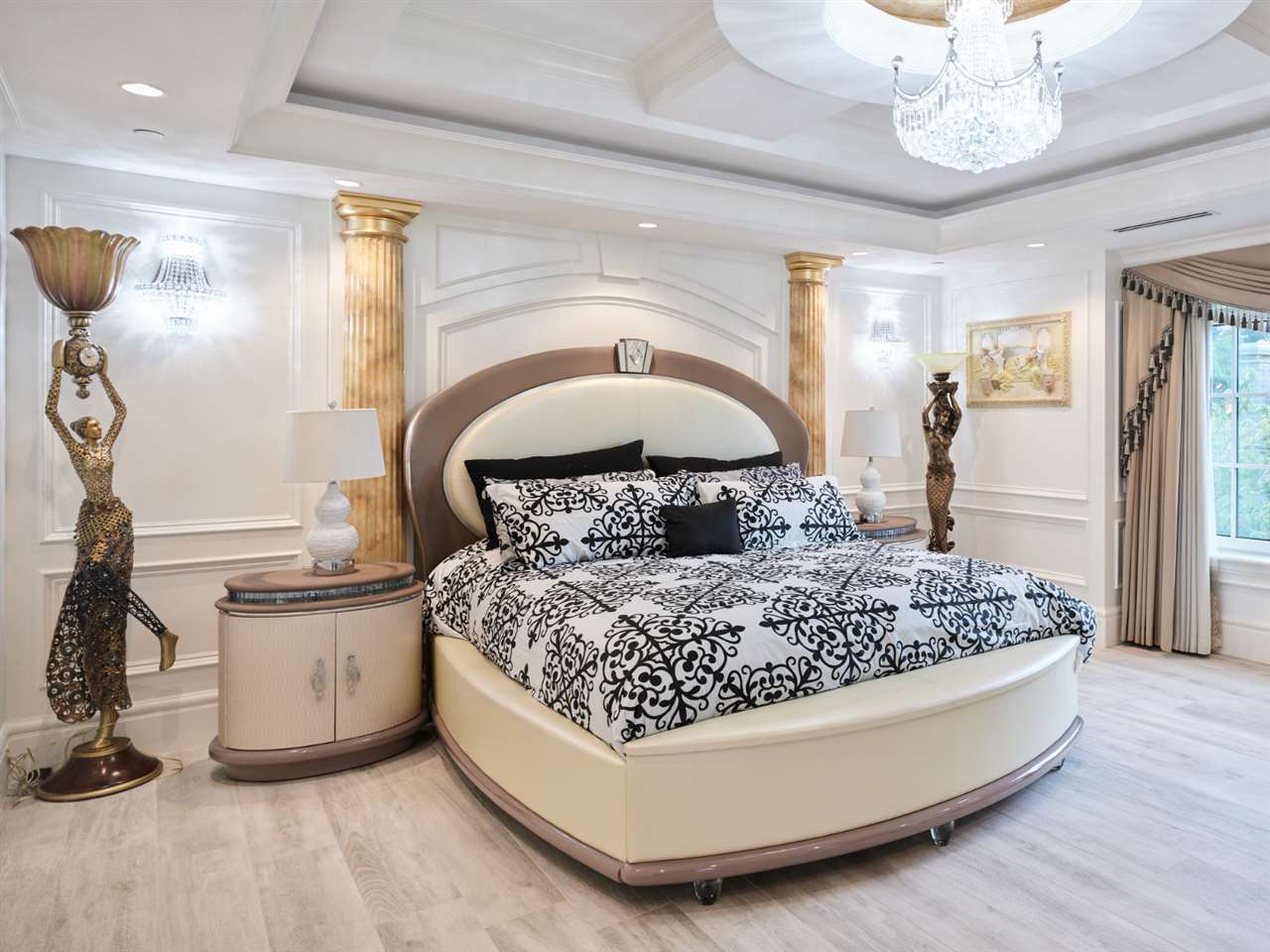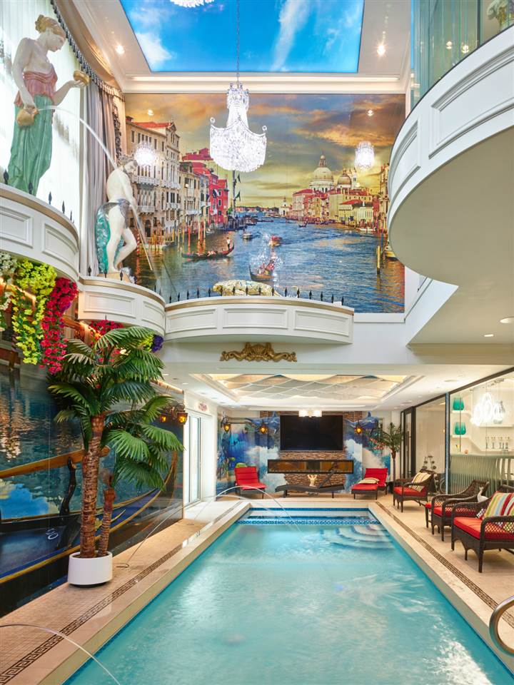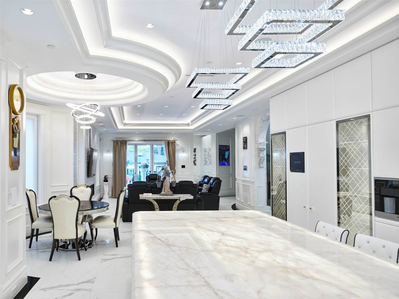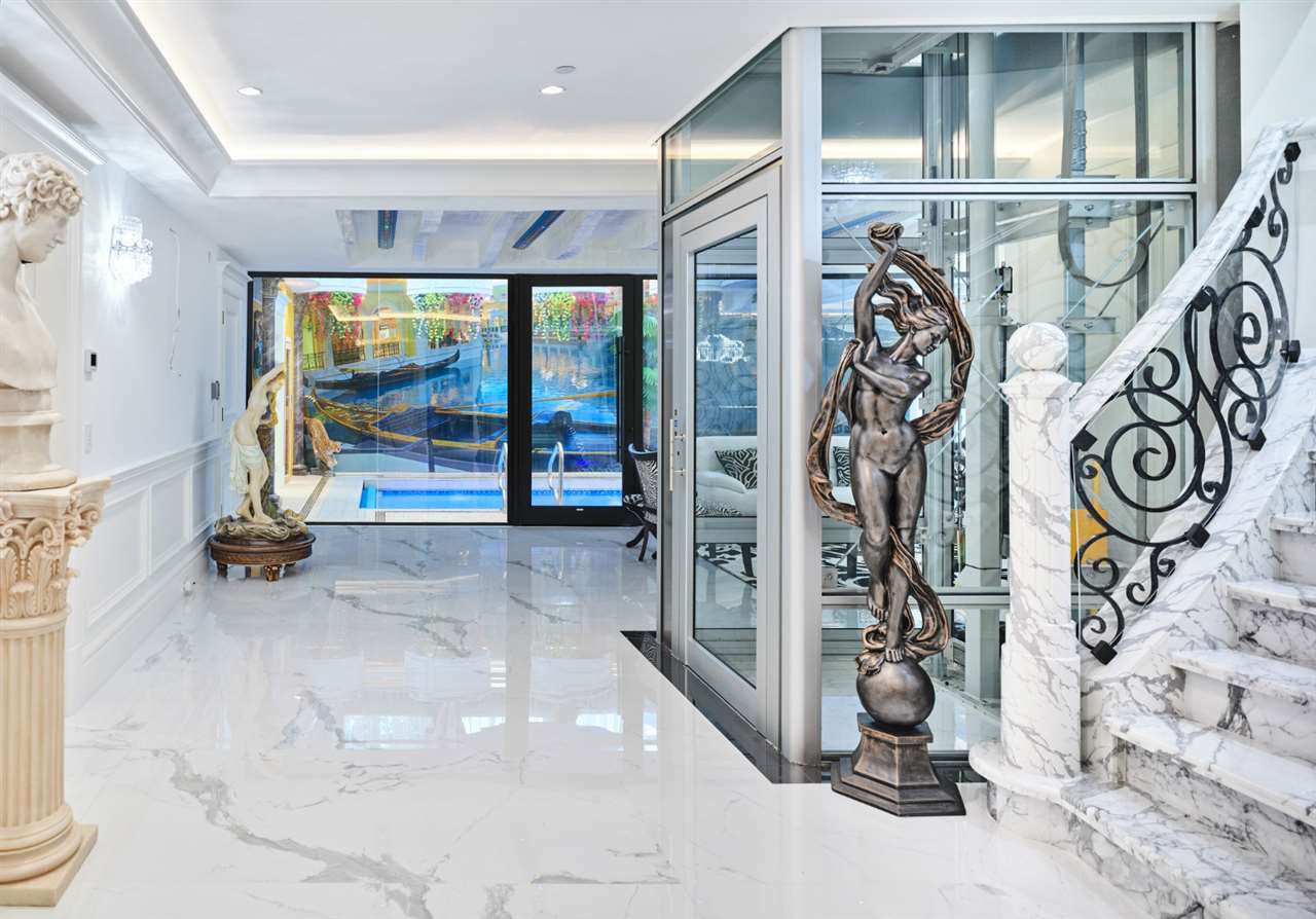 Gorgeous finished by reputable Valentino! This mansion has all your luxurious needs. European design with all the top of the line materials which includes genuine marble stairs, Italian kitchen cabinets, quartz & semi precious stone counter tops back lit, high grade chandeliers & lights with Egyptian crystals & many extra features like raised bathroom vanities lighted below & auto turn on lights, etc. Fully equipped with elevator, theatre room, sauna & indoor swimming pool has lighting feature that changes lights, ceiling faux paintings, tiles on pool wall & upper view deck areas & rainfall feature & statues throw water. High-tech smart home system with full automation on house Control. Beautiful landscape with 3 marble fountains, full outdoor barbeque station, brick burning pizza oven.
