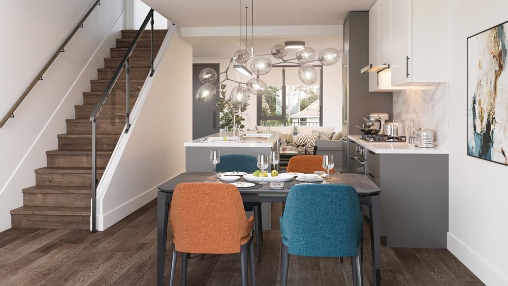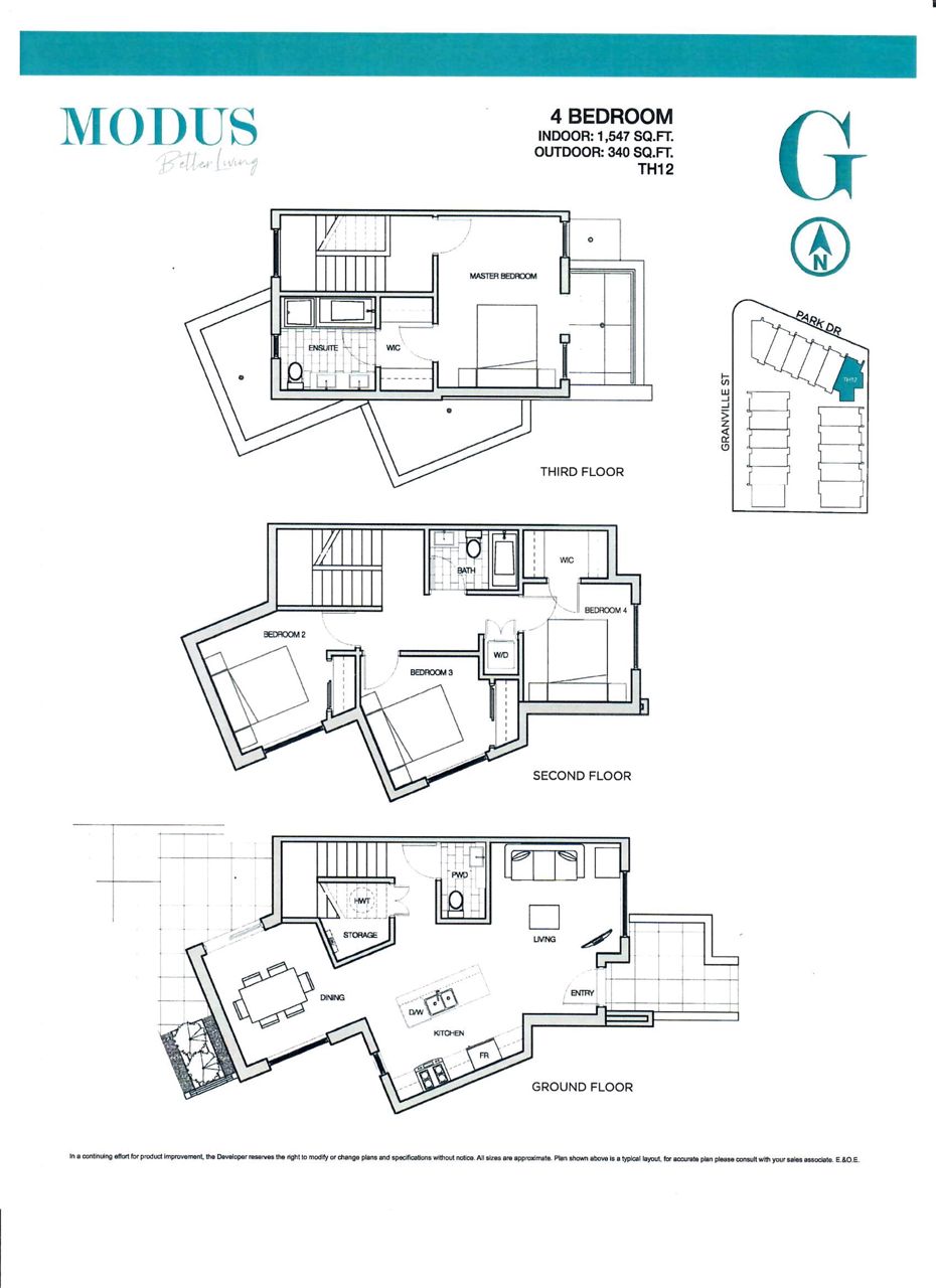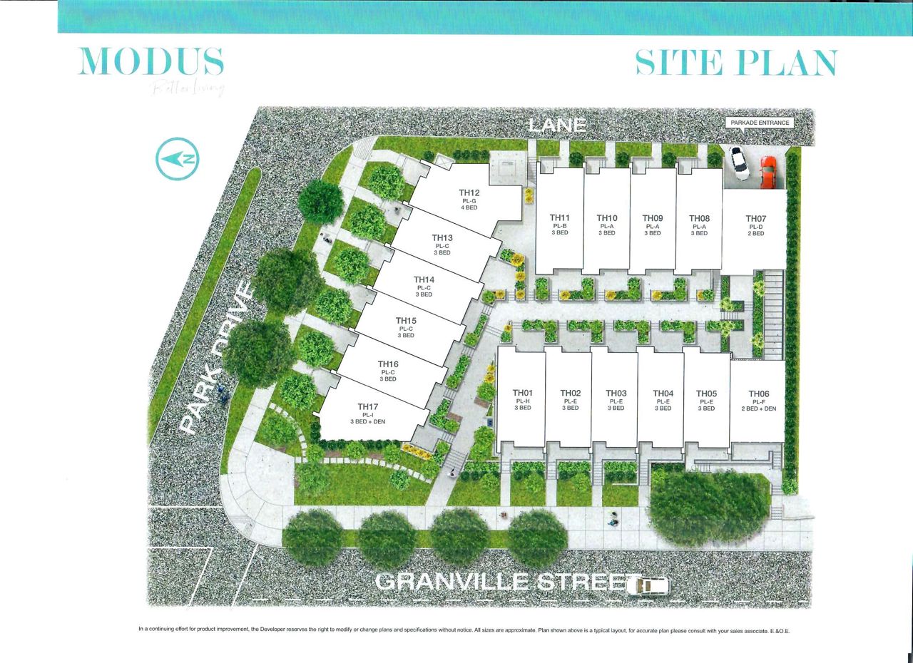 Rare find 4 bedrooms townhouse, North east Corner in the heart of South Granville/Marpole. Steps to the best schools - Churchill IB program, Community Centre, parks, groceries, shops, transit. Beautiful complex with only 17 units, treelined street, landscaped yards. Ground floor with gourmet kitchen, gas cooktop, huge centre island, dining and living areas, 2 pc bath, 9 ft ceiling, front and back yards. 2nd floor has 3 bedrooms, walk-in closet and 4 pc bath. 3rd floor is private master bedroom with luxury ensuite & private balcony. Top of the line quality. Engineered hardwood floor, Air-Con. Lots of natural light.1547 sq ft functioning living space + 340 sq ft outdoor space.Comes with 2 EV parking & lockers. Anticipated completion Spring 2024. www.modusliving.ca for more project info.