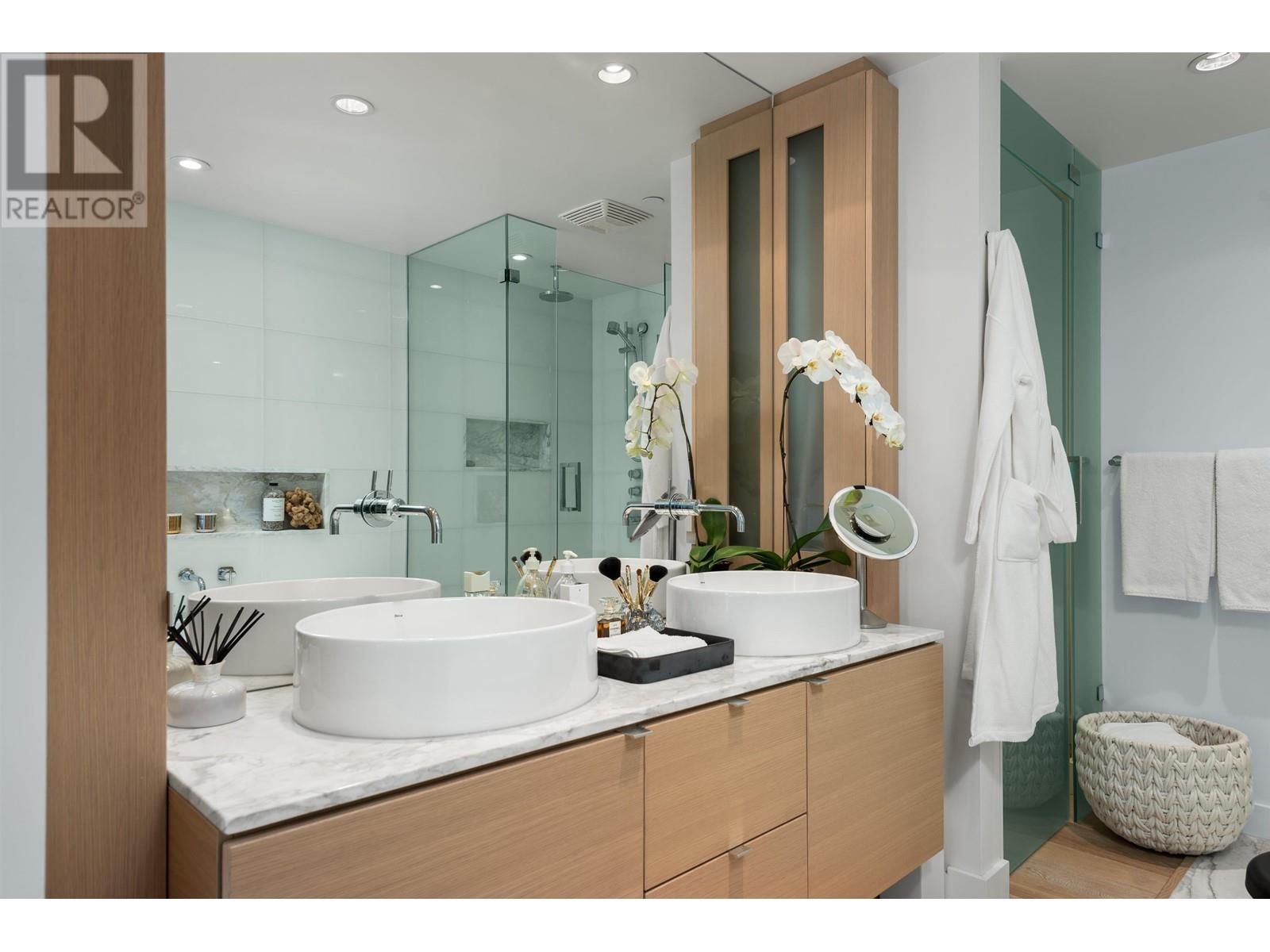 Rarely available NW corner ´01´ Plan at the award winning West Pender Place in COAL HARBOUR. A stylish contemporary 2 bdrm VIEW residence by Alda Pereira signature interior design offering spacious PRIVATE covered outdoor TERRACE with sliding walls of glass allowing seamless indoor/outdoor transition for easy entertainment & enjoyment of MARINA/NORTH SHORE MNTS views all year round. Modern interior boasts 1052 SQFT of living space with high end feat. like brushed Oak HW flrs thruout, kit cabinetry by Dada of Italy paired with high performance German Gaggenau & Subzero appliances, elegant quartz cntrtop, as well as gorgeous spa-like appointed marble ensuite with frameless glass shower & soaker tub. Geothermal heating/cooling make this home energy efficient. 2 SXS PKG & locker (id:22211)