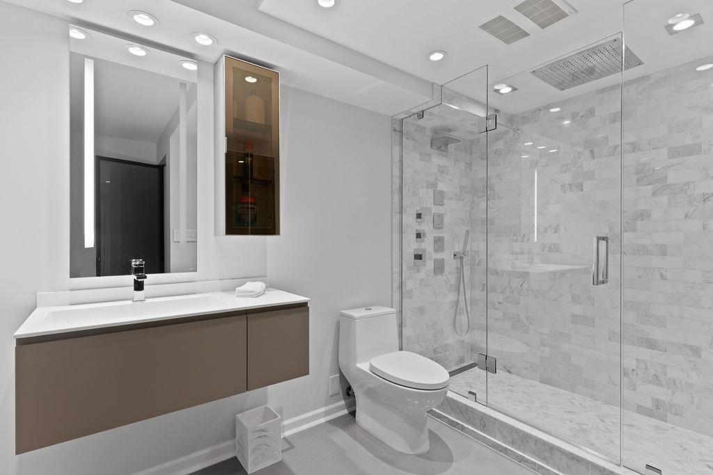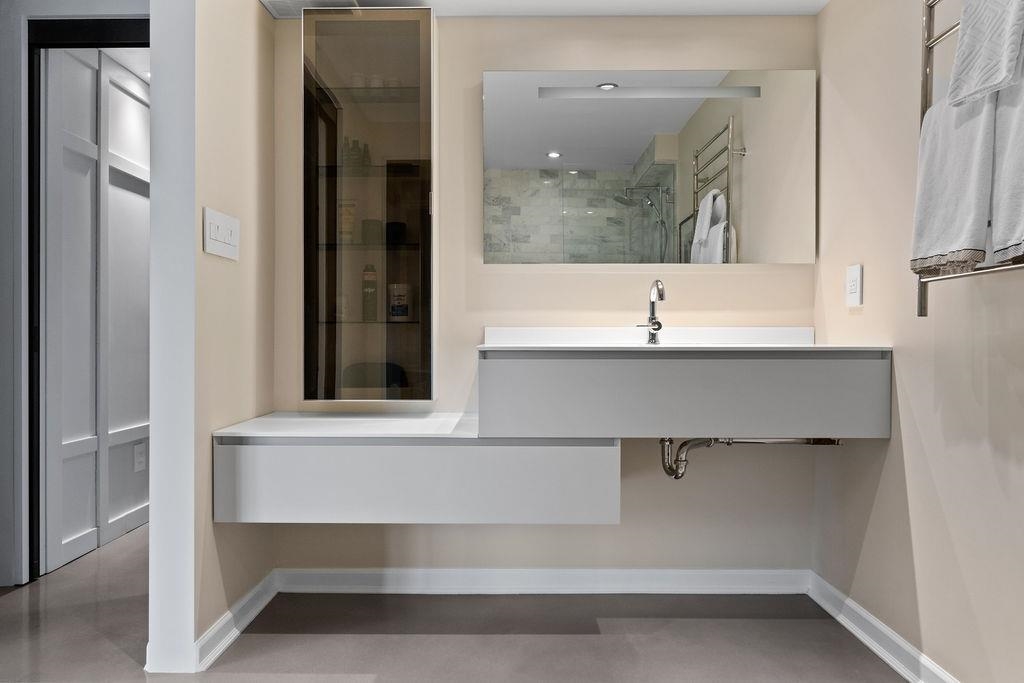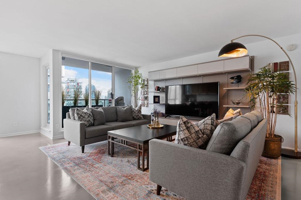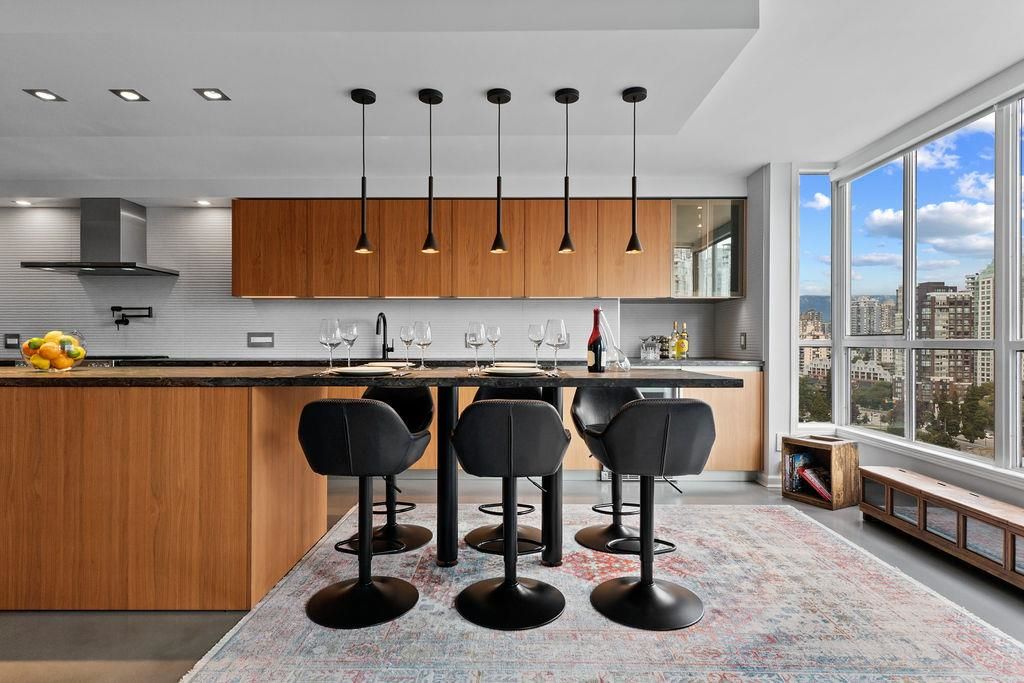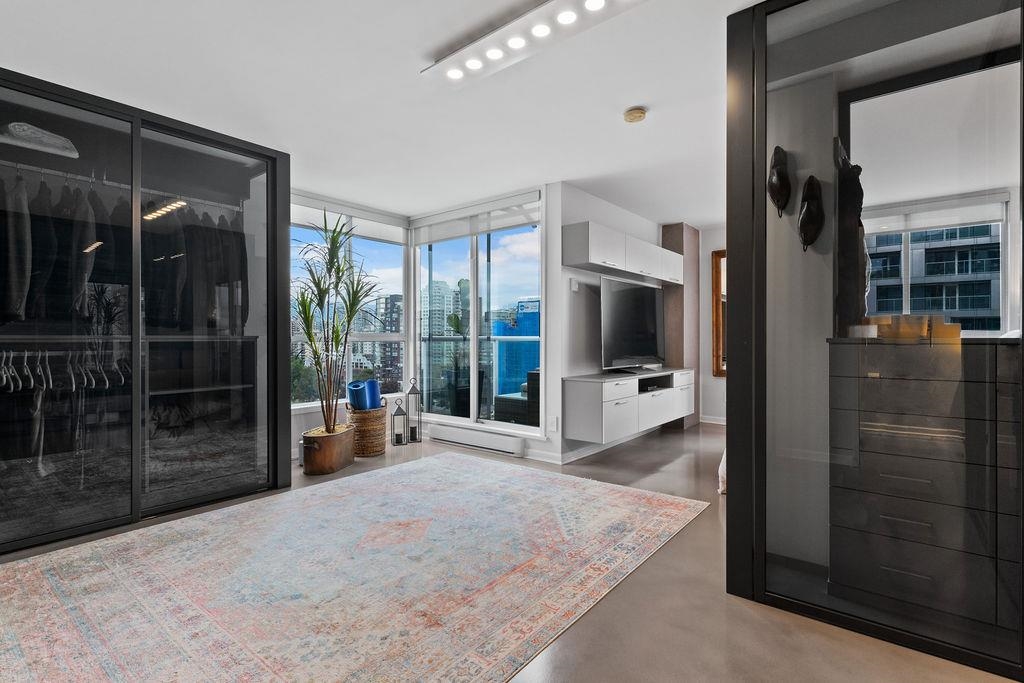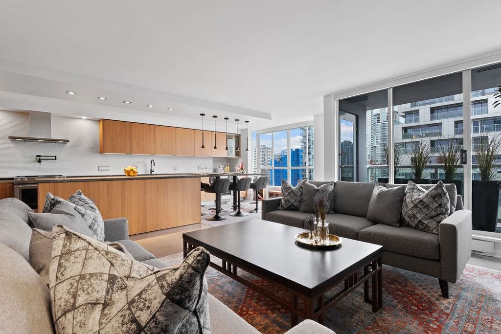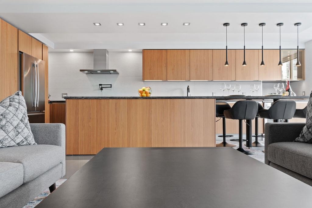 A truly rare offering: a 1,319 sqft 1-bedroom executive condo that underwent a $350,000 TOTAL re-design. This unique home was stripped back to the building envelope and completely re-imagined. Every component is new including the studs, insulation, electrical, plumbing, and drywall. The house-sized kitchen features Elmar Italian cabinetry, Jennair appliances, and a unique quartzite countertop. European bathrooms feature Ideagroup Italian vanities, Aquatek linear sinks, Newform bathroom shower fixtures, and Antonio Lupi mirrors. The master suite is huge with English-Bay facing patio and luxury retailer-quality custom closet systems. Aside from its size, this rare home offers 4 parking stalls, 2 storage lockers, and 2 patios. Building just completed at $1.255M exterior maintenance project.