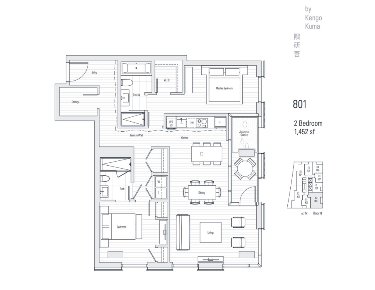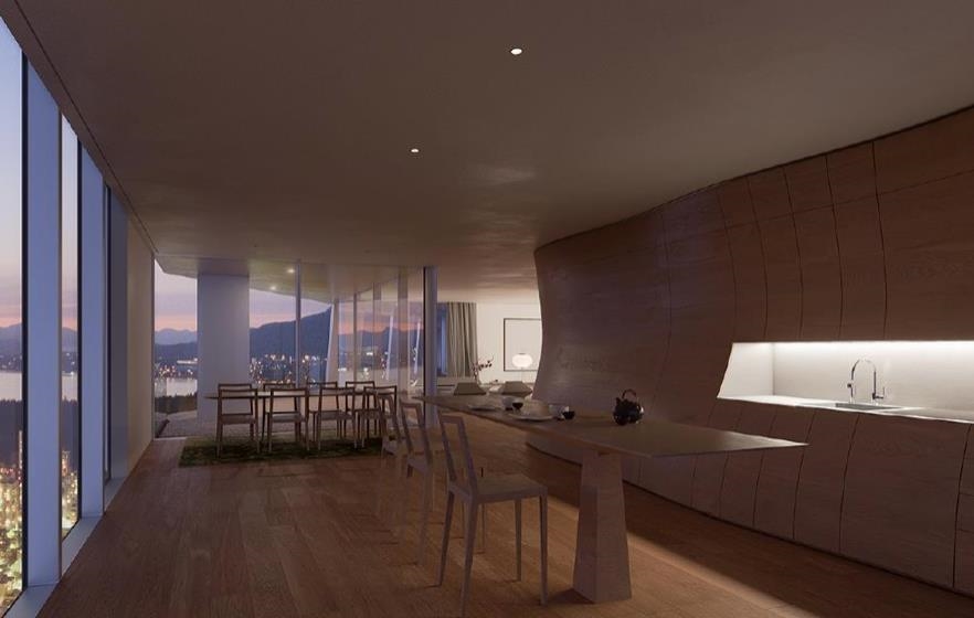 SOLD OUT ARCHITECTURAL MASTERPIECE! SOUTH WEST FACING, almost 1500 SF w/ 2 PARKING making this the BEST price per SQFT available. Own in the most prestigious & anticipated building in Vancouver. Built by award winning Westbank Properties & designed by renowned Architect Kengo Kuma. This jaw-dropping tower has changed Vancouver's skyline forever. Boasting sought after layout w/ true entranceway, floor to ceiling windows, 2 sun drenched master bedroom suites, office/storage, spectacular curved solid wood kitchen & Japanese Garden. World class amenities; 2 star Michelin Restaurant Waketokuyama, live moss Garden w/ Fazioli piano, wine tasting room, library & 2 level gym. Incredible spa facilities; swimming pool, sauna/steam rooms & hot tubs nestled intricately in layered wooden sculptures.