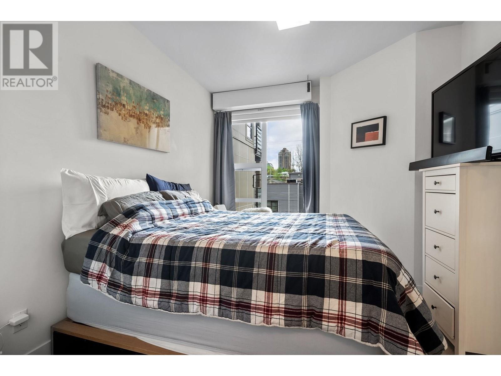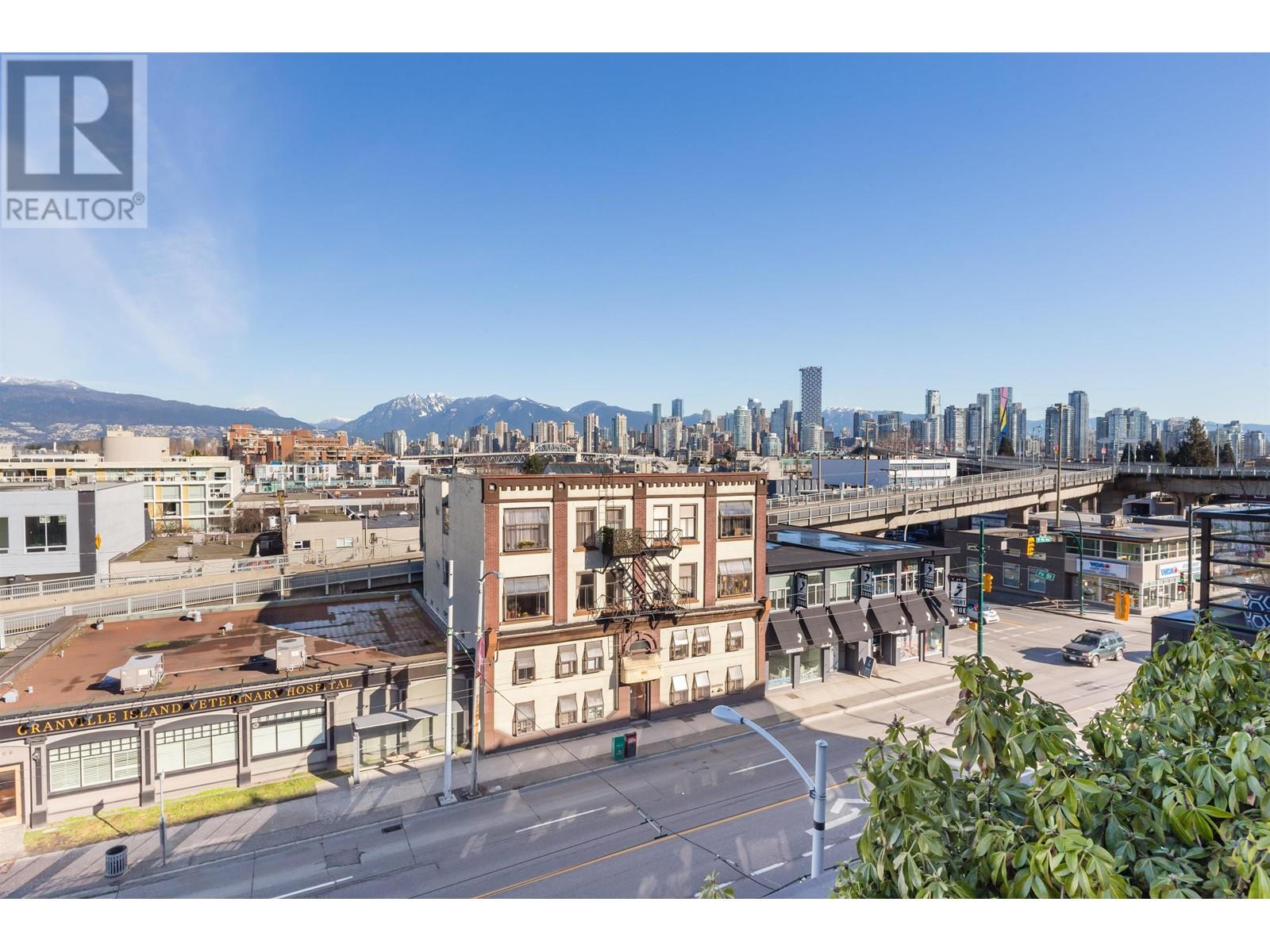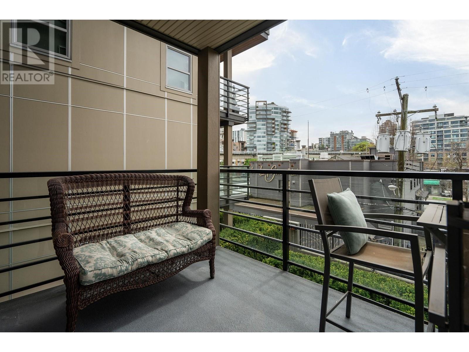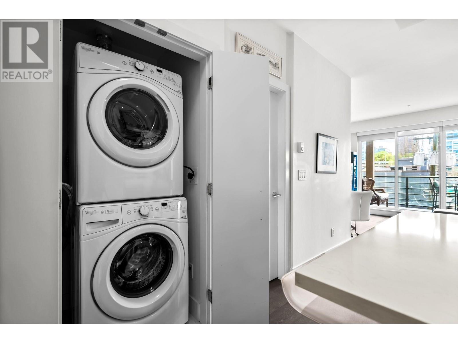 Welcome to "Radius" - proudly built by award-winning developer, Ledingham McAllister. This beautiful southwest facing one-bedroom plus den home is built with top-of-line craftsmanship and has no wasted space. Offering hardwood flooring throughout, over 100 square feet of outdoor space, a spacious bedroom with walk-in closet, a gourmet kitchen with Miele stainless steel appliances, gas cooktop, gloss white cabinetry and a spacious island with a built-in microwave, a large den with organizers, and comes with one parking stall, one storage locker, and one sports cage. This well-run building also offers a rooftop deck for the residents to enjoy. Centrally located in the desirable False Creek/Fairview neighbourhood with W 4th Avenue´s lively shops and restaurants right at your doorstop, and just a short walk to the touristy Granville Island, Kitsilano and the seawall! (id:22211)