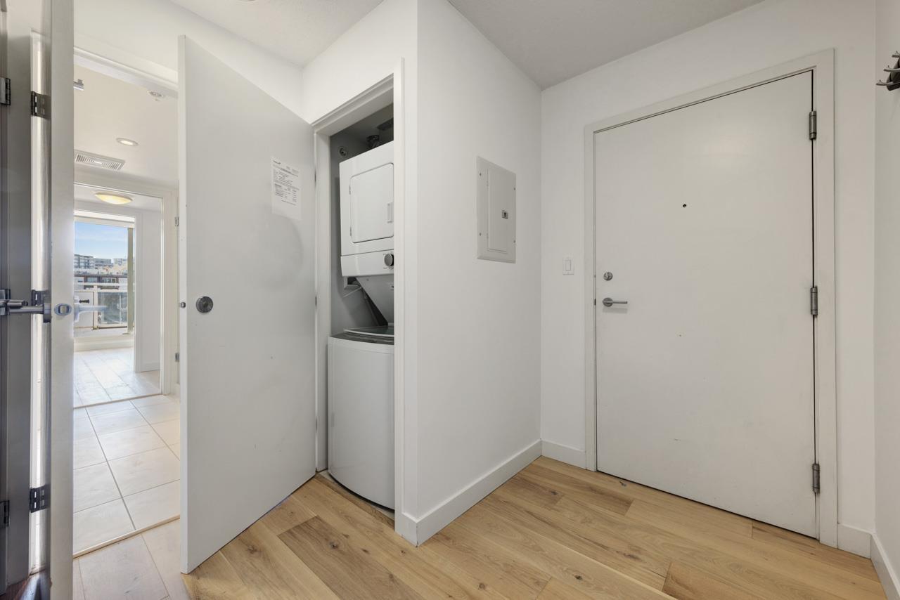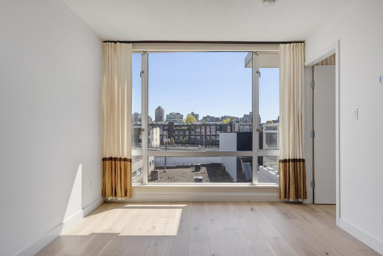 Bright and spacious CORNER TOP FLOOR unit at LUMEN. An airy open layout featuring one bedroom and flex, semi ensuite bathroom, floor-to-ceiling windows adding in an abundance of natural light, and a south-facing patio. Freshly painted with brand new flooring. Included; one secure underground parking, storage locker, bike storage, and a gym. Added bonus -furnished common rooftop deck, with great city and mountain views and a BBQ area. Concrete & steel construction by Bucci Developments and is 'Certified GREEN Built'. Fantastic location walking distance to Granville Island, Kits Beach, West 4th shops, grocery store & easy access to downtown. (note-virtually staged photos). OPEN HOUSE Sat May 20th from 1-3pm. Showings available before open, call for appointment. (id:22211)