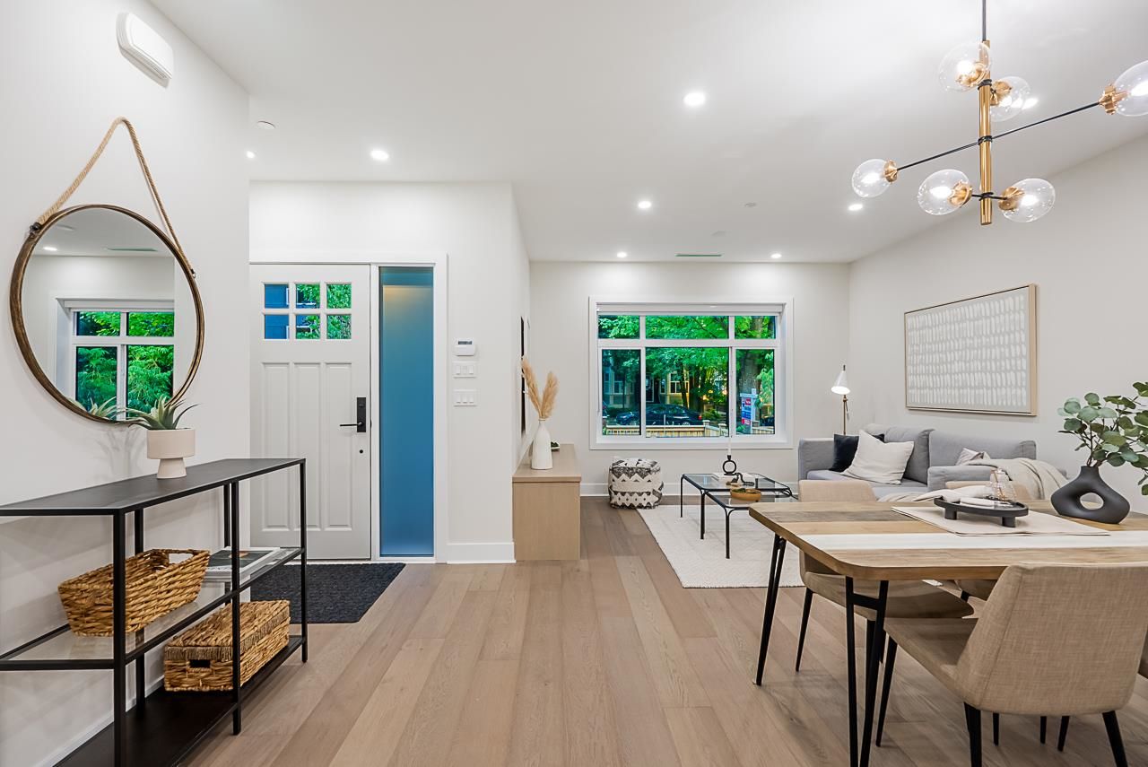 Welcome to 1653 East Georgia, this home is Zoned in RM-4 allowing an EXTRA LARGE duplex which offers a modern touch with a ever lasting classic feel. From brushed brass fixtures to white speckled counter tops, a seamless back splash and a collection of high-end appliances from Fisher & Paykel this kitchen is everything anyone could ever ask for. Enjoy your coffee, tea or wine from your spacious living room looking out onto your beautiful private front lawn.3 BEDROOMS ALL ON THE SECOND FLOOR and BASEMENT has REC ROOM downstairs that can be used as a home theater, office, guest room or potential suite. Much desired restaurants, schools, public transit and shopping are located within walking distance.