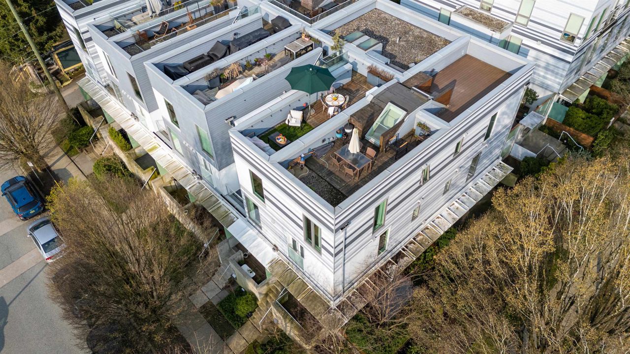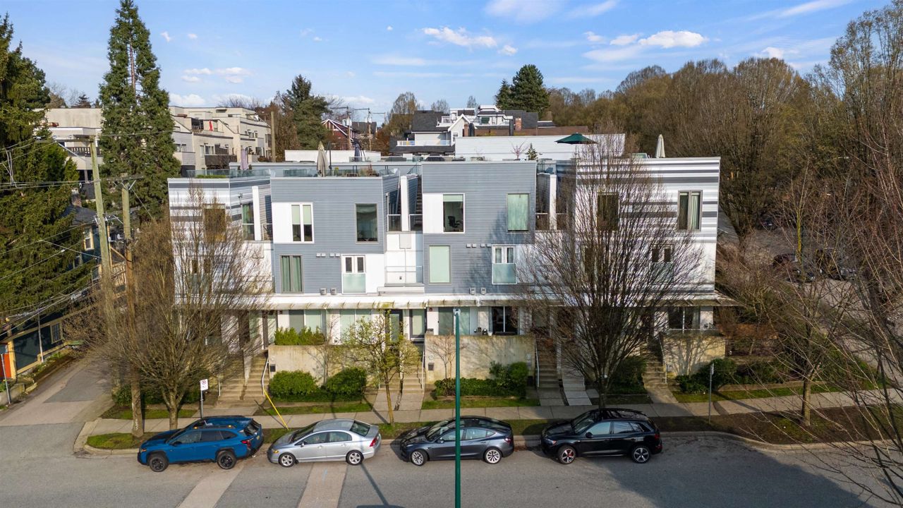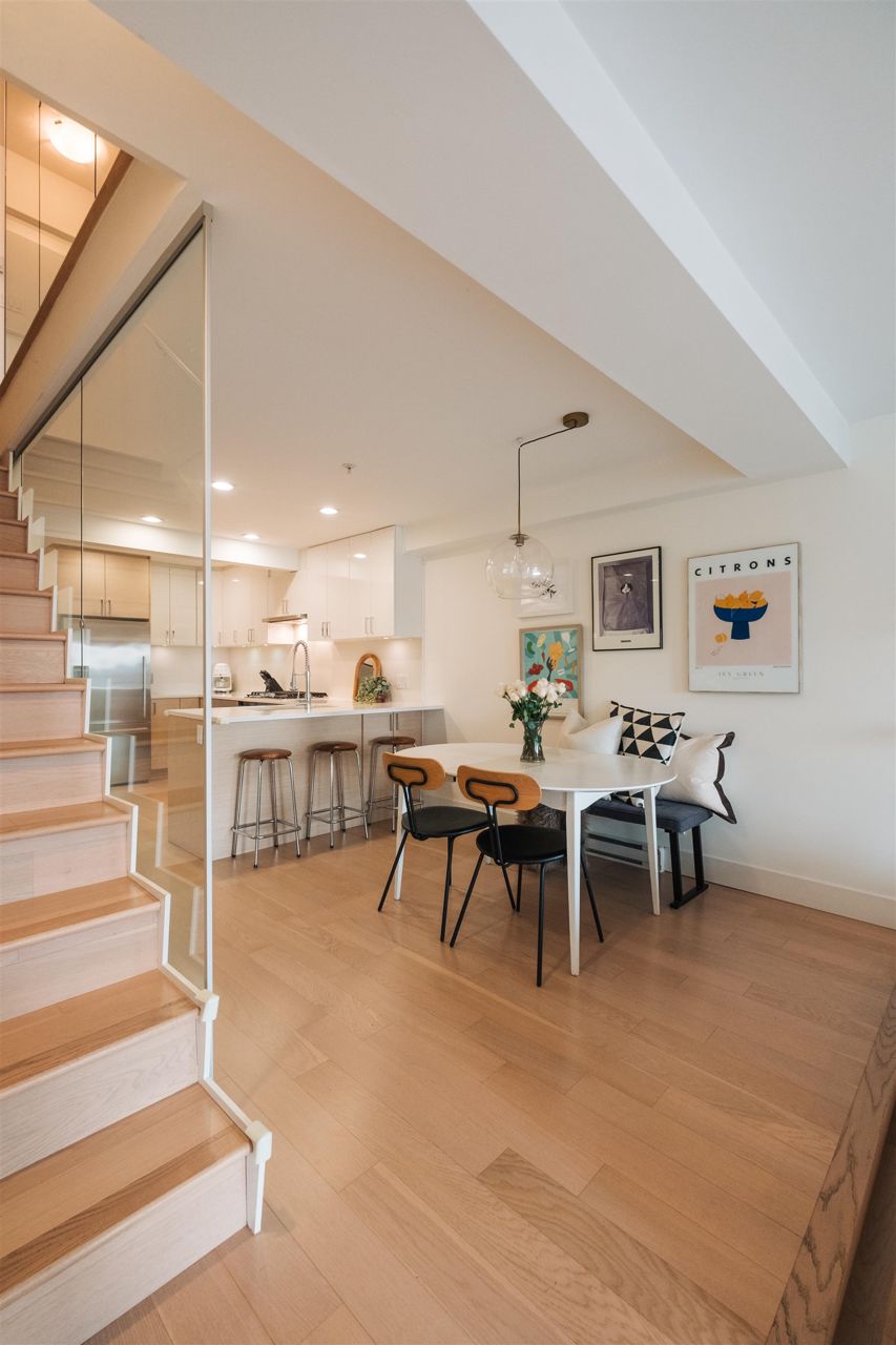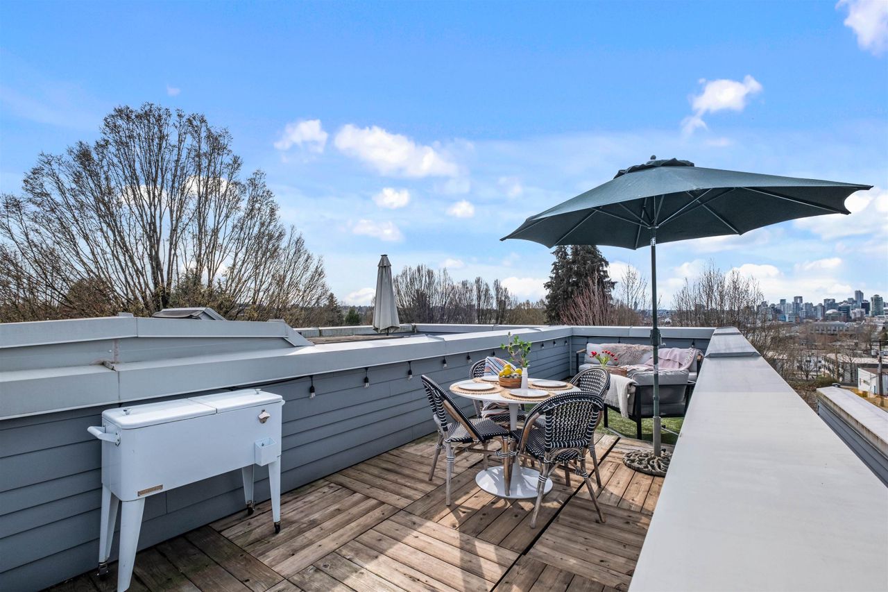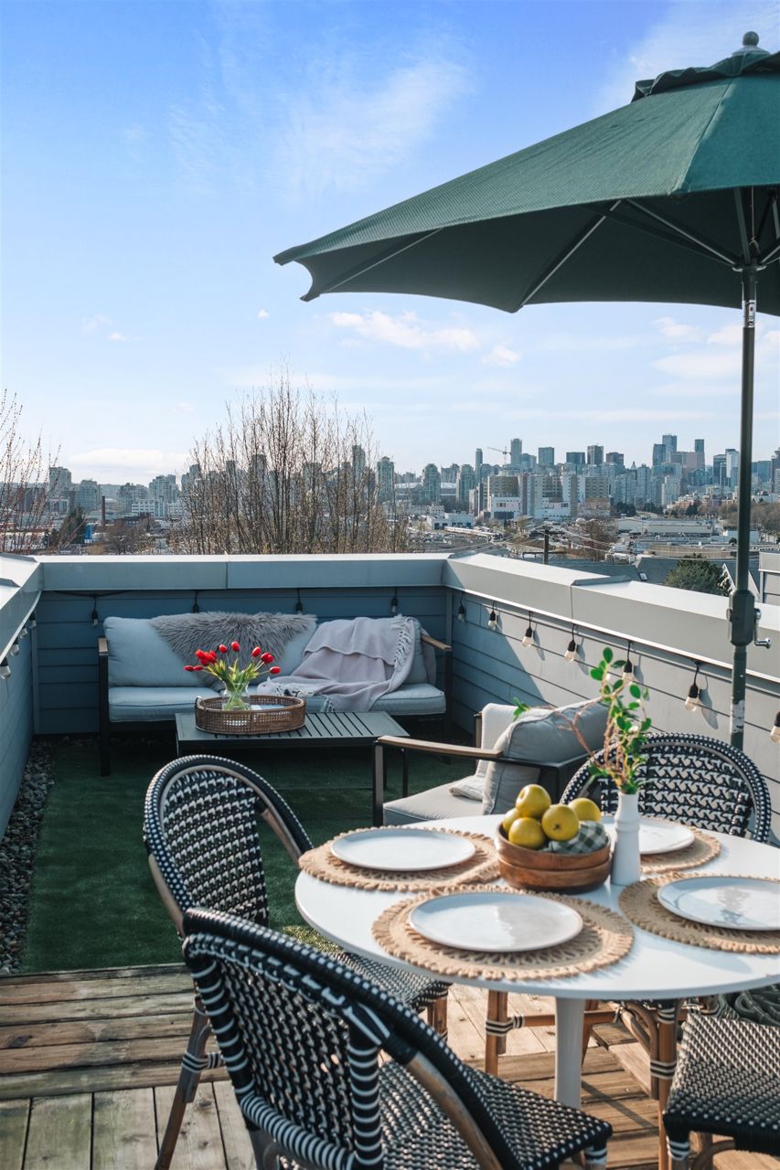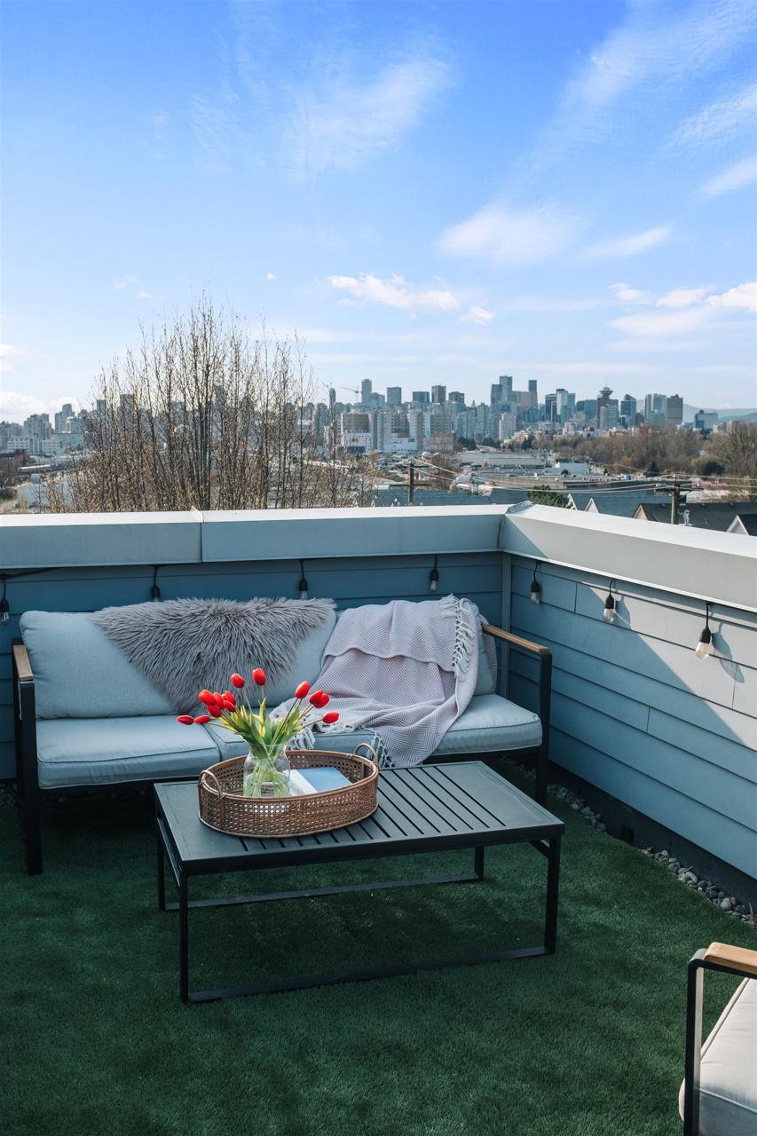 WELCOME TO YOUR MODERN TOWNHOUSE JUST MINUTES FROM THE DRIVE! This 3-bed + den, 4-bath home offers 1,485 sq/ft of well-designed living space, plus a 250 sq/ft private rooftop patio—perfect for dining al fresco, entertaining guests, or enjoying warm summer evenings in your own outdoor oasis. The open-concept main level features stainless steel appliances, quartz countertops, laminate flooring, and oversized windows that flood the space with natural light. Upstairs, you'll find three generously sized bedrooms—each with its own full bath—plus a spacious den, ideal for a home office or flex space. All this just steps from transit, parks, shops, and the vibrant energy of Commercial Drive. Don’t miss this one—book your private showing today!