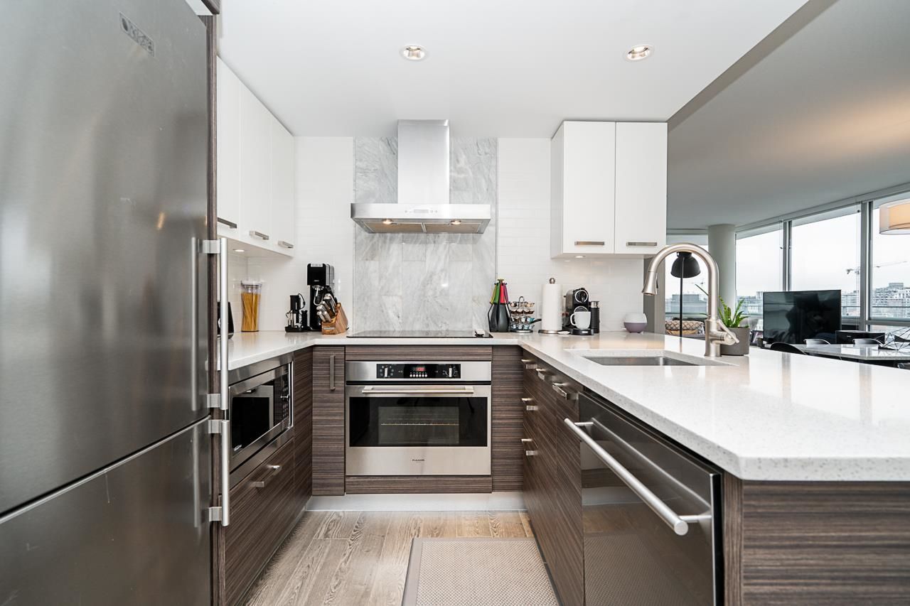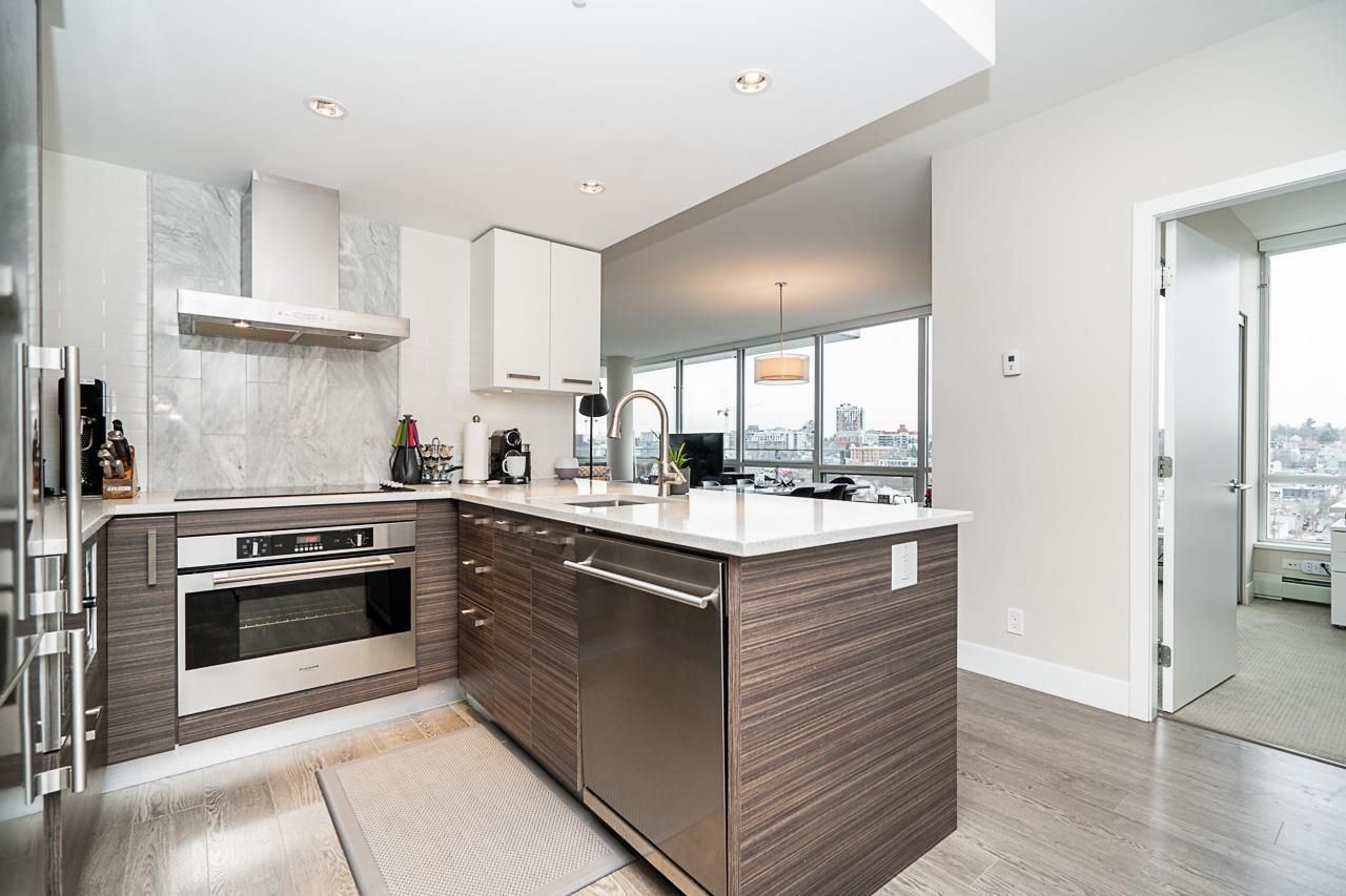 LIFESTYLE + SPACE = This large corner unit set in the heart of vibrant Olympic Village! Located at the Residences at West, this 1000sqft condo offers size for one to grow with separated bedrooms, cheater en-suite off 2nd bedroom, den/flex space that has a bonus window overlooking the green rooftop. Featuring modern and sleek interior complete with a sophisticated 2 color palette cabinets with soft-close, stainless steel appliances, floor to ceiling windows, and quartz countertops. Enjoy the abundance of natural light soaking up your home with southern exposure and city/treescape views! Olympic Village gives a walk score of 90, steps to 2 skytrain lines, restaurants, Urban Fare, breweries and more! BONUS: Heat & hot water included in maintenance fees. Call today to book your appointment!