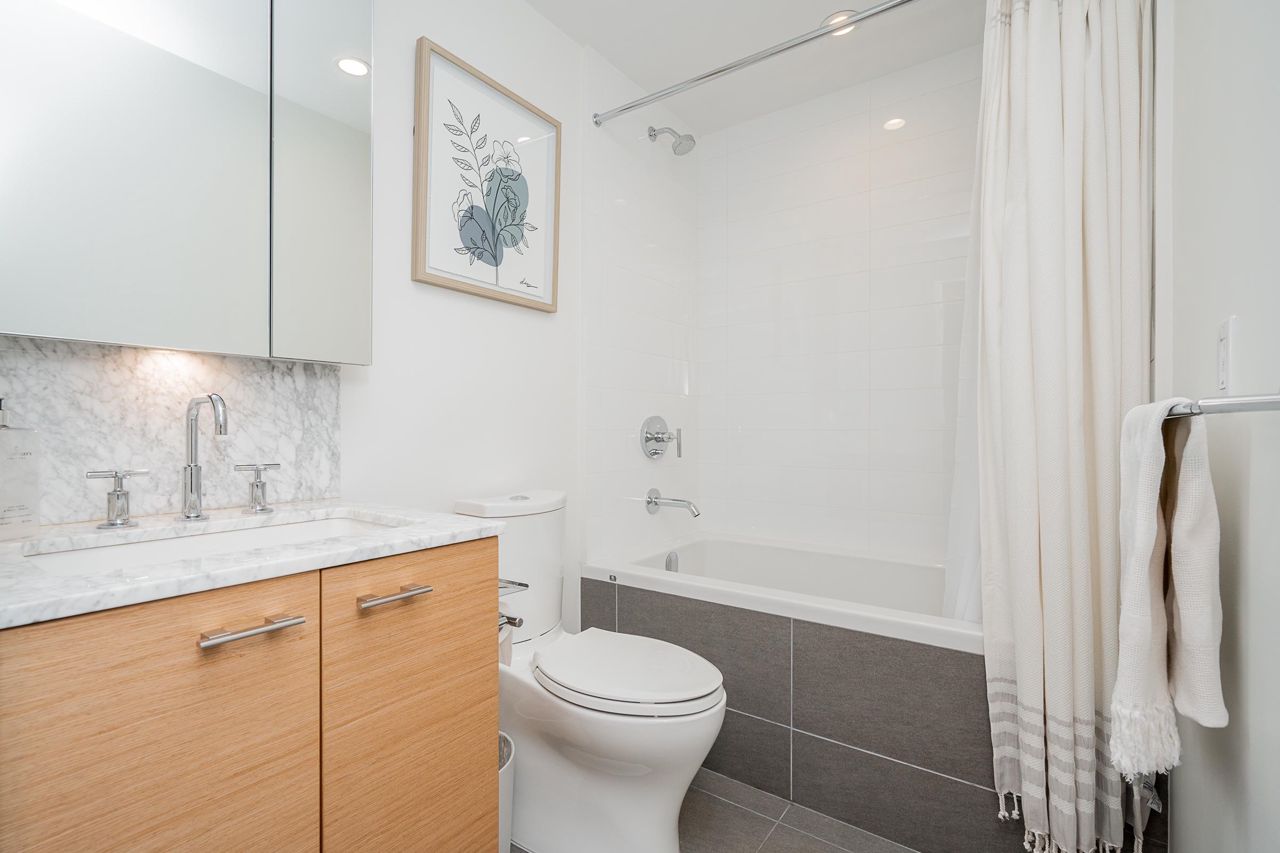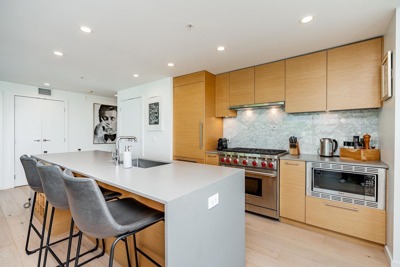 WEST FIVE at 5th & Burrard in Kitsilano, surrounded by shops/restaurants and just minutes away from Downtown. Designed by award-winning Yamamoto Architecture. Top-of-the-line contemporary finishings. 2 bdrms features 9’ ceilings & expansive windows create open living spaces bathed in natural light, energy efficient heating/cooling system, engineered hardwood flooring thru, Chef Kitchen with Caesarstone countertops/stainless steel appliance package (Fhiaba & WOLF), NuHeat under floor heating in marble bathrooms. Large balcony for you enjoy sweeping mountain & city views or outdoor entertaining. Parking stalls (with EV charger) included. Pets/rental allowed. Just steps away from everything you want. It is the perfect place for you to own!