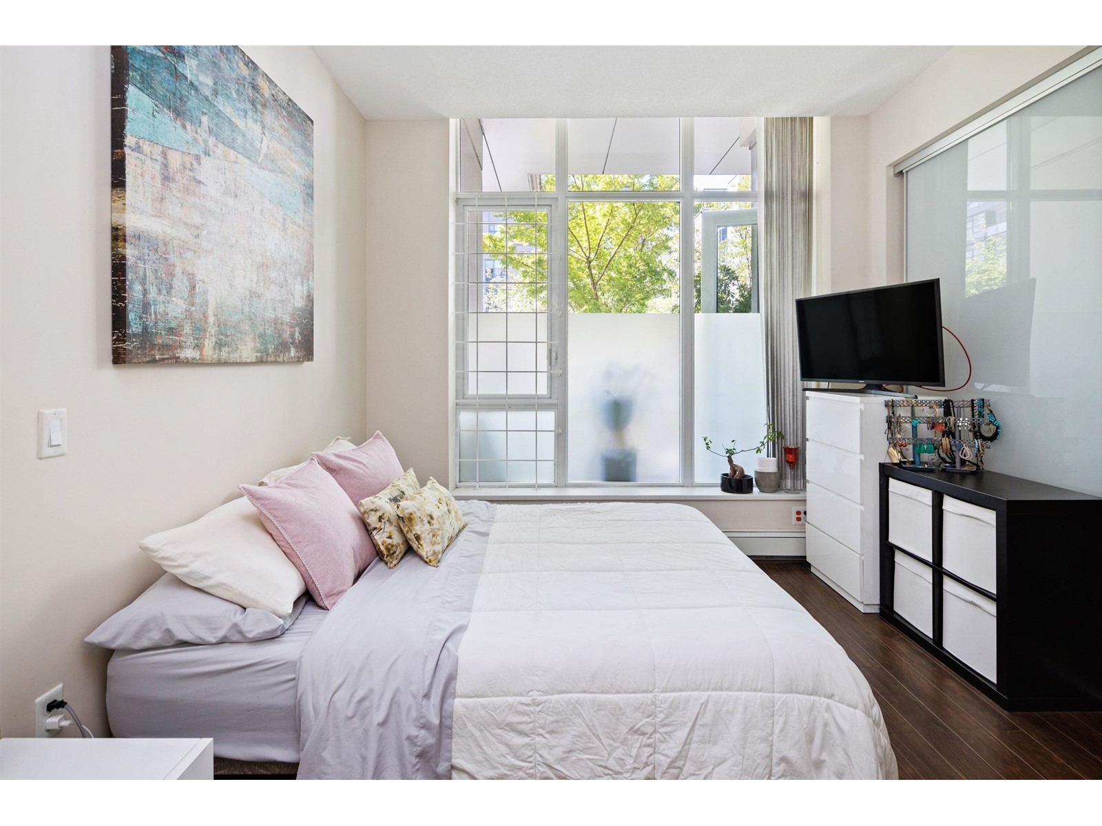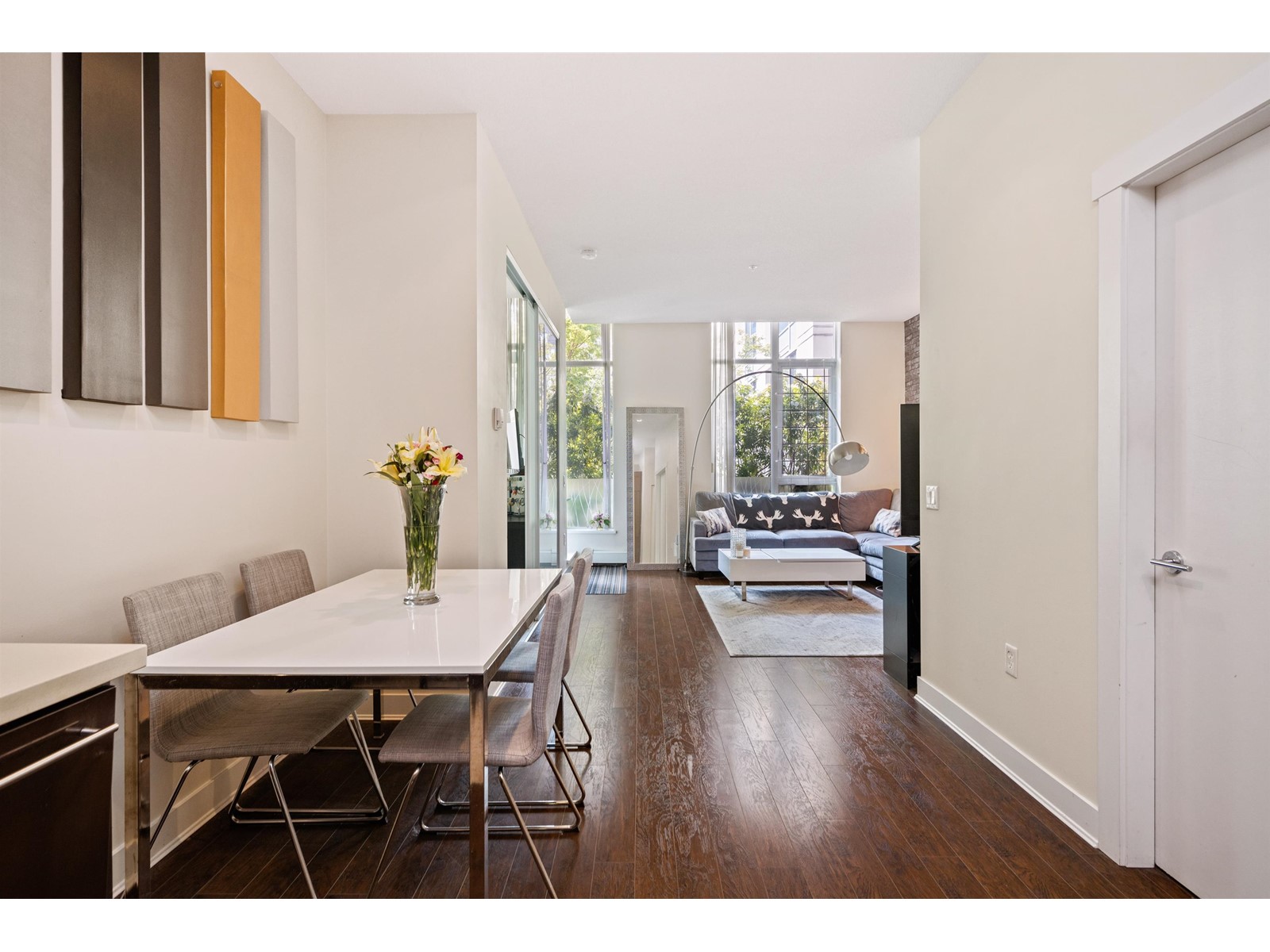 WELCOME TO THE FOUNDRY! This 1 bed, 1 bath & flex in a LEED certified Polygon building is one you won´t want to miss! Features include an efficient kitchen with Blomberg & Bosch appliances, expansive living area, large bedroom, walk through double closet, in-suite laundry & ensuite. Overheight 9'7" ceilings with an open, spacious floor plan & floor to ceiling windows creates beautiful natural light & flow. Nearly 100 square ft private patio off your living room with easy access to the building´s gated courtyard features a playground, community garden & grass area. BONUS: Visitor parking, gym and bike storage plus 1 parking stall. This very convenient location is a short walk to restaurants, coffee shops, parks & all other amenities Olympic & Cambie Village has to offer! (id:22211)
