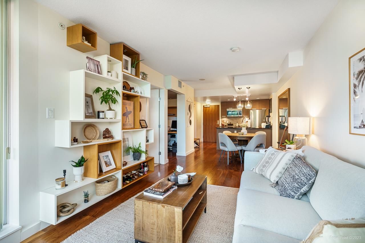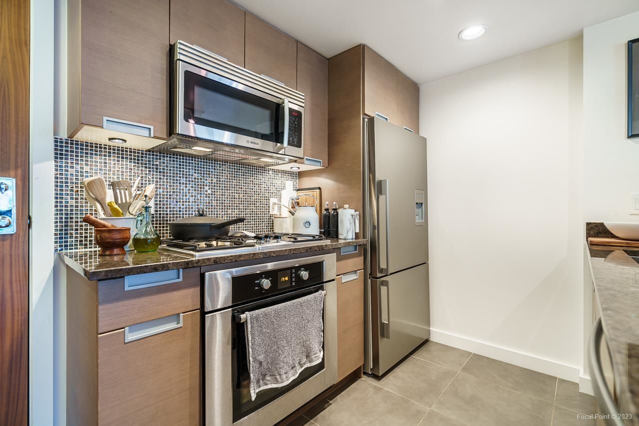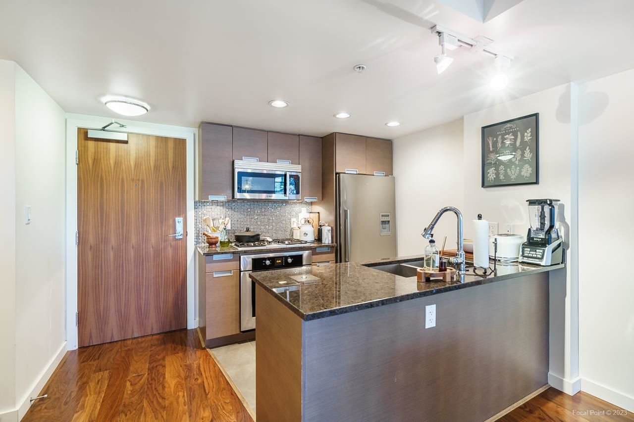Stunning show suite in prime Kitsilano location at Pinnacle on Broadway. Located on the 3rd floor with LARGE PATIO, this bright immaculate unit faces north with an open very functional floorplan, and boasts beautiful walnut engineered h/w floors, chef’s kitchen w high-end SS appliances incl gas cooktop, microwave/hoodfan, terrific den perfect for home office, custom built-ins + lighting, great carpeted primary bedroom with walk-in closet. Awesome building w shared rooftop deck complete w firepit lounge + shared 2x BBQ areas, fitness centre + billiards / ping pong games room. All steps to Kits shopping, restaurants, coffeeshops, transit, and right down the street from planned new Arbutus skytrain station. 1 parking + 1 locker.