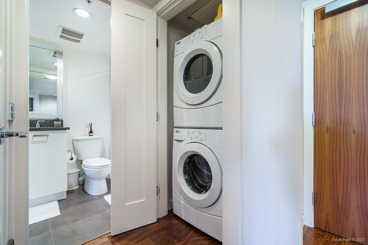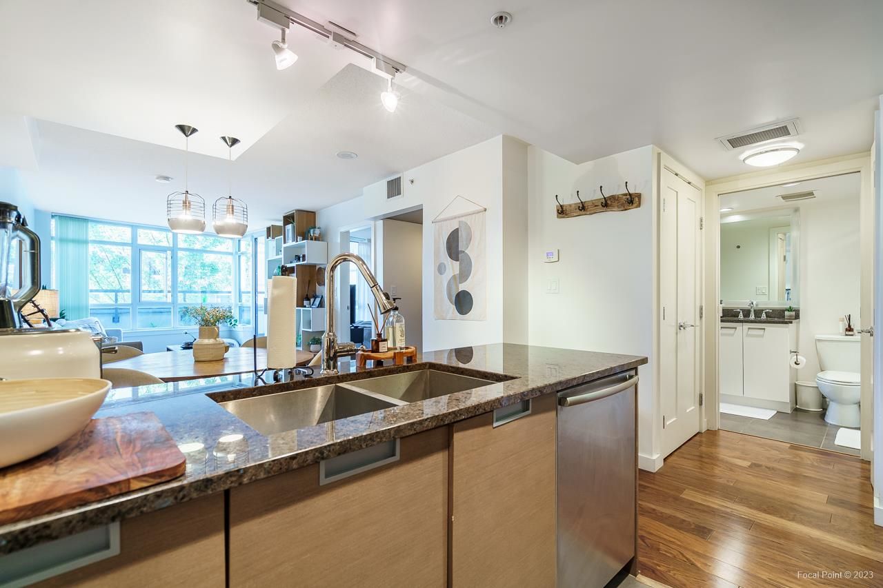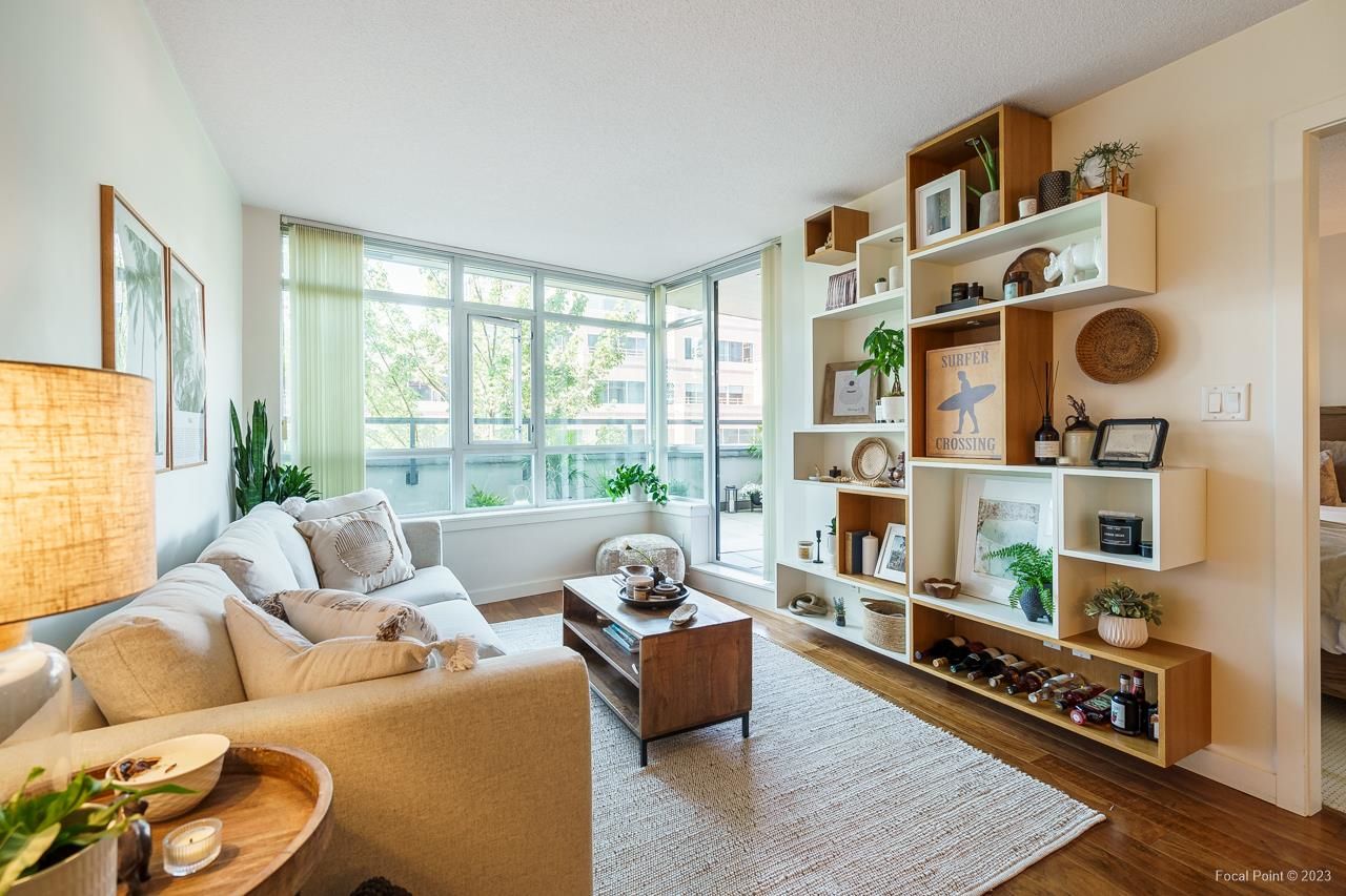 Stunning show suite in prime Kitsilano location at Pinnacle on Broadway. Located on the 3rd floor with LARGE PATIO, this bright immaculate unit faces north with an open very functional floorplan, and boasts beautiful walnut engineered h/w floors, chef’s kitchen w high-end SS appliances incl gas cooktop, microwave/hoodfan, terrific den perfect for home office, custom built-ins + lighting, great carpeted primary bedroom with walk-in closet. Awesome building w shared rooftop deck complete w firepit lounge + shared 2x BBQ areas, fitness centre + billiards / ping pong games room. All steps to Kits shopping, restaurants, coffeeshops, transit, and right down the street from planned new Arbutus skytrain station. 1 parking + 1 locker.