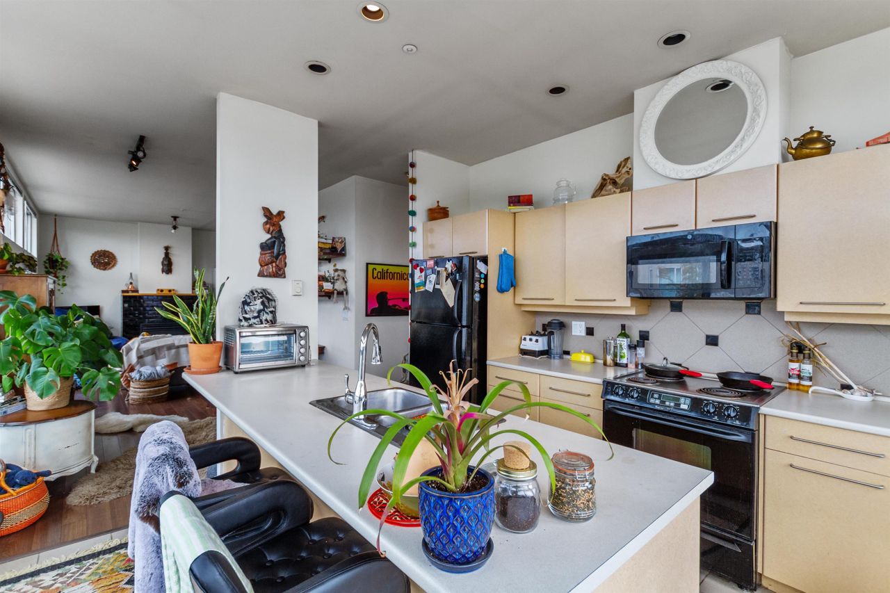Bright Southwest 2 bedroom corner Penthouse in THE LOFTS AT KITS on Arbutus Walk. Features high ceilings, open concept floor plan has nice kitchen with eating bar, laminate floors and gas fireplace. Large entrance way. Storage and laundry in suite. Community Courtyard for your outdoor enjoyment. Extra wide parking space with additional storage next to bike room. Walk to Connaught Park, upcoming Broadway line station. Kits Beach and Community Center. Right next to Arbutus Greenway makes this a walking and biking paradise. Open Saturday August 12, 2:00-4:00 and Sunday August 13 12:00-2:00.