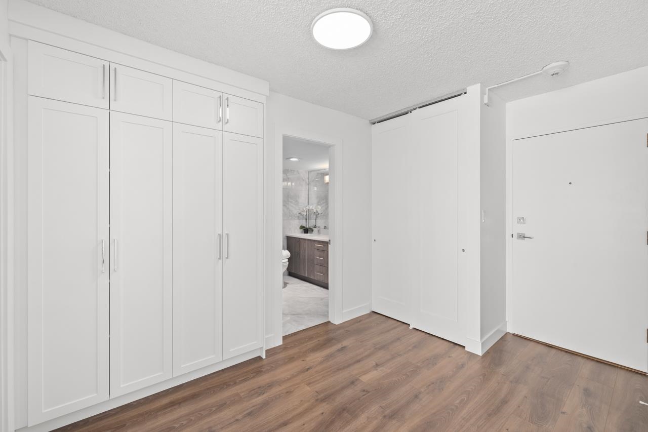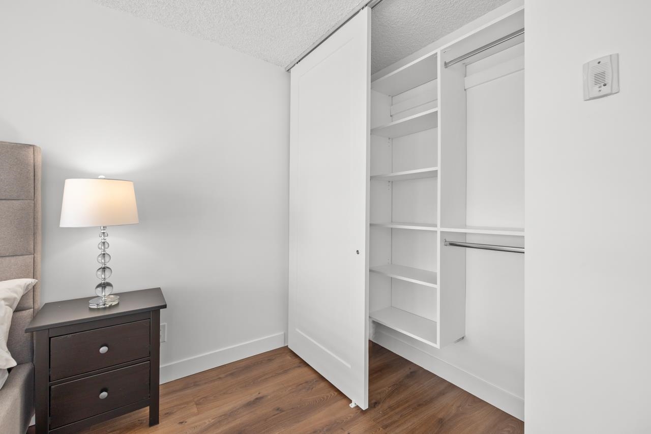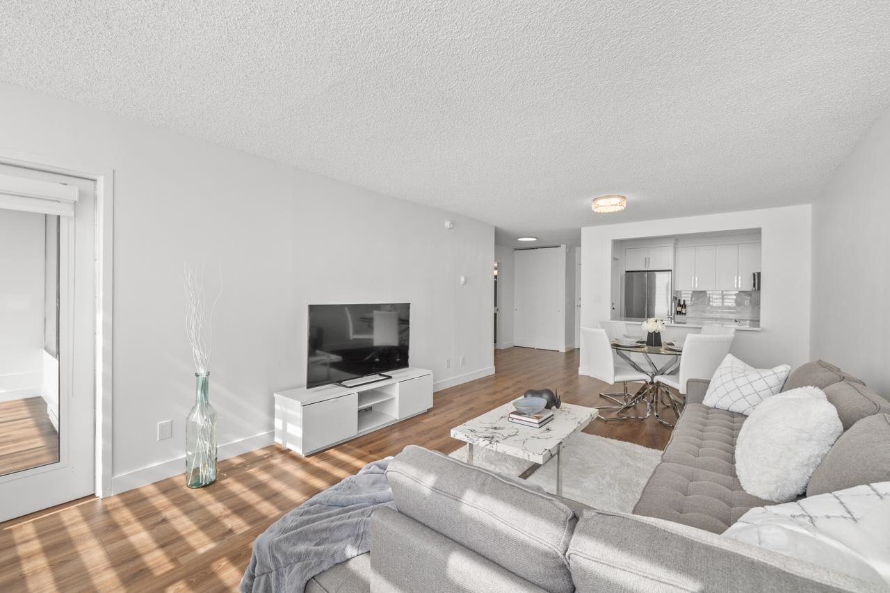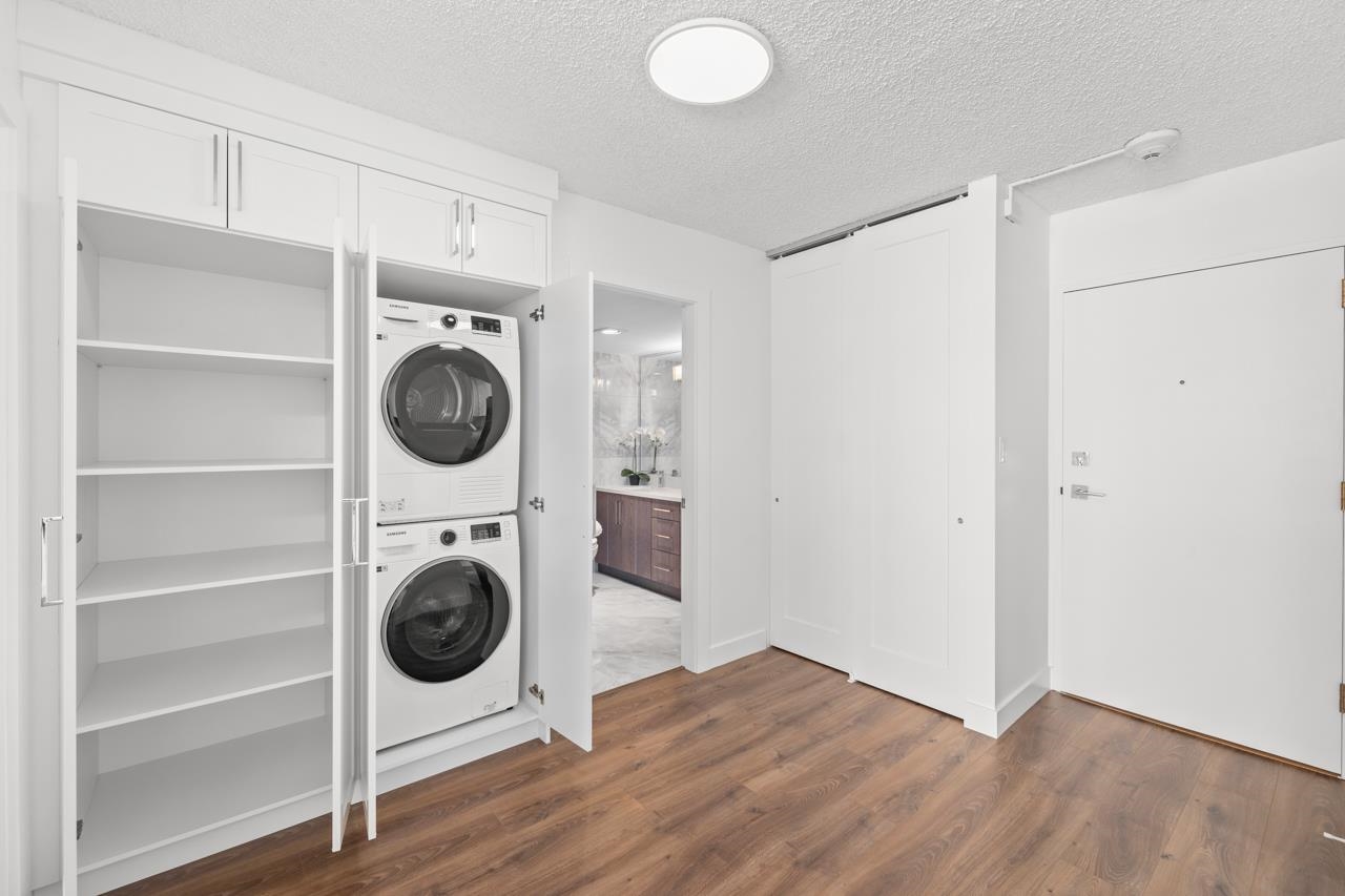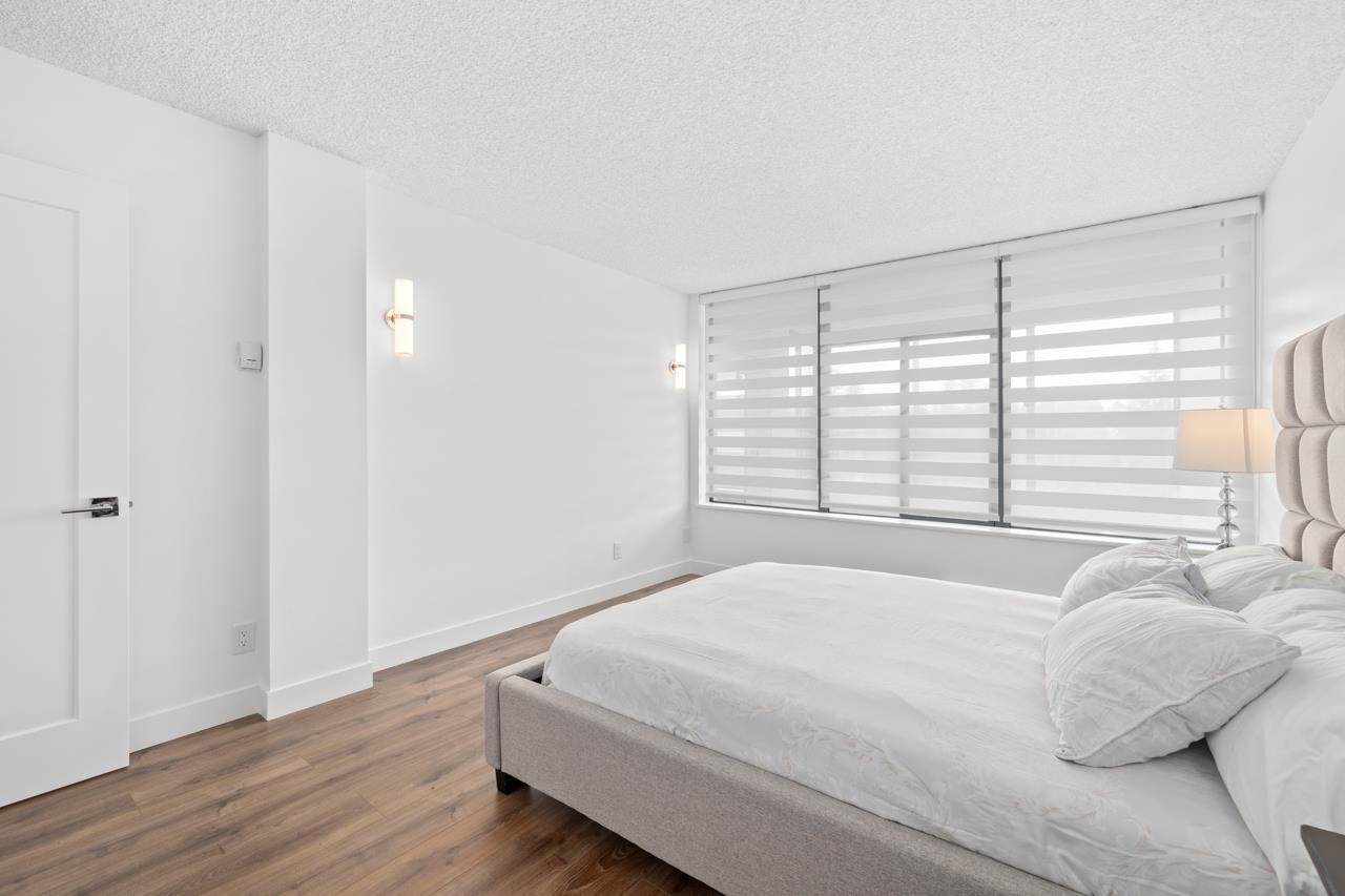 Exquisite, fully renovated, massive 1 bedroom plus den unit located in the heart of Quilchena. Boasting elegant finishes and a spacious layout, this stunning property offers the perfect balance of comfort and luxury. Enjoy new drywall, paint, leveling & laminate flooring throughout the unit. Kitchen has been completely redone with brand new stainless steel appliances, custom shaker cabinetry with tons of storage, quartz countertops with an extended overhang, a beautiful tile backsplash, and extra wide opening for tons of light. Stunning bathroom surrounded by elegant tile from top to bottom, new tub, new fixtures and more custom cabinetry with a bonus double vanity. Spacious bedroom w/ new closet organizers and zebra blinds throughout the unit. comes with 1 parking & storage locker.