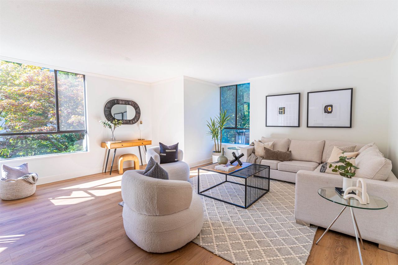 Welcome to The Briar at the heart of Arbutus Village. Huge family home for unforgettable gatherings. Beautifully renovated w/ brand new laminate flooring, paint, & lighting (Sept 2023) w/ a recently renovated kitchen & bathrooms (2015). Whether you are a plant enthusiast, a bookworm, or remote worker, enjoy the two sunrooms in this SW facing, one-level living, corner home. Nothing to do but move in your house-size furniture. This well-managed concrete bldg is recently updated w/ elevator, hallway carpets, & plumbing. Enjoy summers at the outdoor pool. Steps from Prince of Wales & Quilchena Park, shopping & Arbutus Club. Easy access to Arbutus Greenway. School catchment: Trafalgar Elem & Prince of Wales Sec. 2 parking stalls + 1 storage locker.