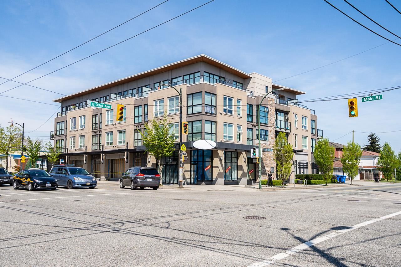 ENJOY THE SUMMER in your new 2 bedroom/2 bath home with LARGE TERRACE at MAIN & 33RD. Features include a contemporary kitchen with S/S appliances, quartz countertops & wine rack, ample room for dining and living, plus entertainer’s dream outdoor space. The main bedroom boasts an ensuite bathroom, WIC & room for home office. Benefits include parking stall, bike locker, in suite storage & laundry. You’ll be minutes to the cool vibe of the shops & restaurants on Main, recreation at Nat Bailey & QE Park, with quick access to downtown. Pet & Rental friendly too. For home or investment, don’t miss this one!