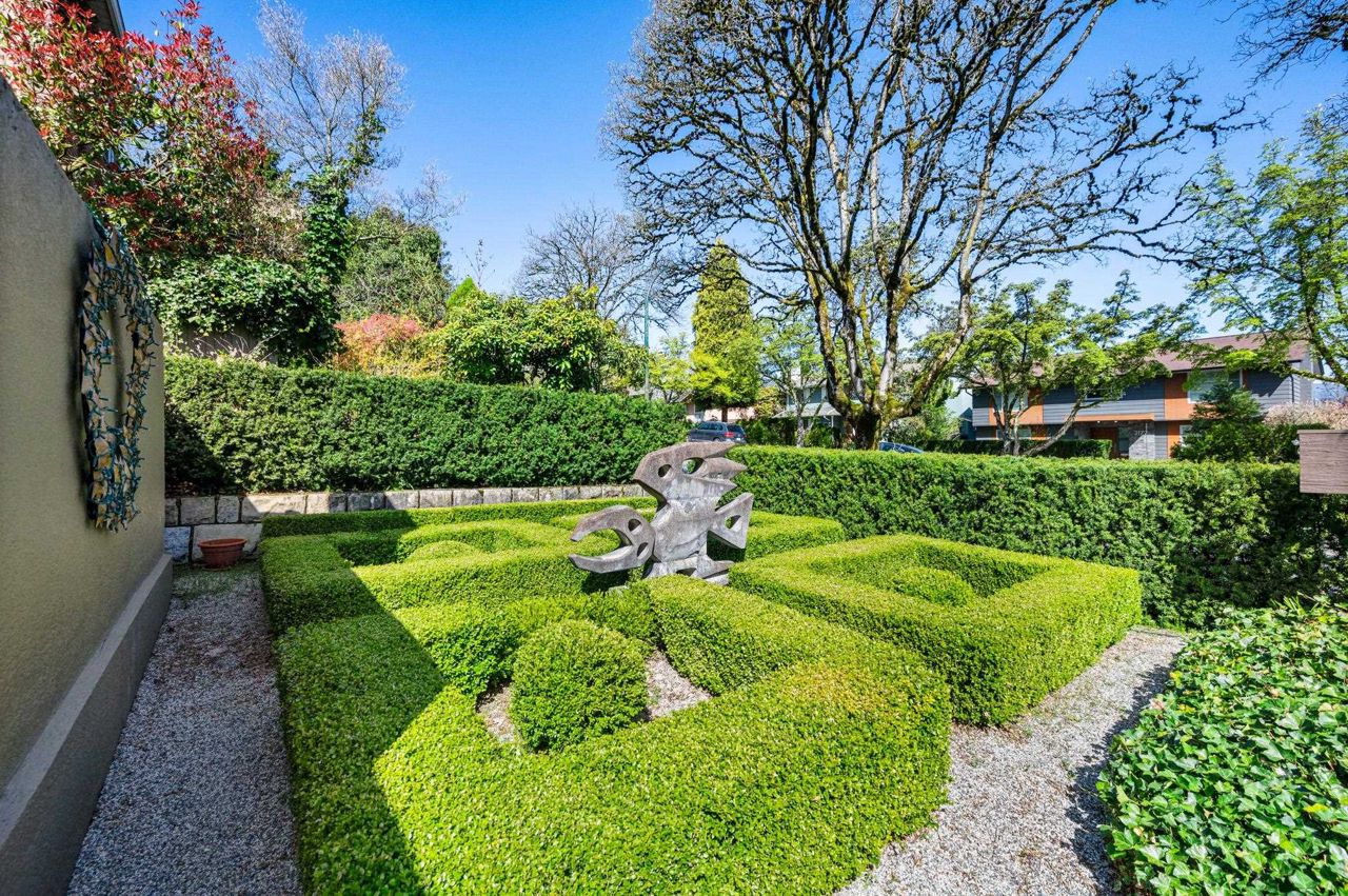 Welcome to a one-of-a-kind property designed by acclaimed architect, Werner Forster. Situated on a lg south facing lot in Mackenzie Heights, this home features a light filled open-concept design offering seamless flow between the living areas, making it perfect for entertaining. The main floor principal suite is tucked well away from the entertaining spaces and boasts a lg dressing rm with plenty of closets as well as an en-suite bathroom and private balcony. 2 bdrms up offer peek a boo views of the North Shore Mountains and share a 2 pc bthrm. In addition to the beautiful interior, this property also boasts an impressive outdoor living space including beautifully landscaped gardens and patio spaces for both lg and sml gatherings. An attached 2 car garage completes this fabulous offering.
