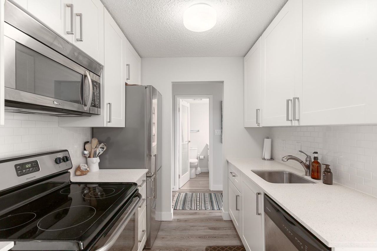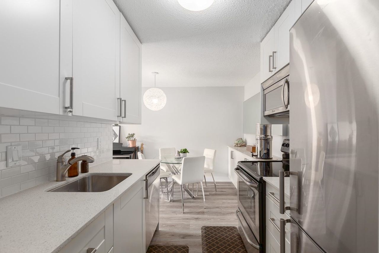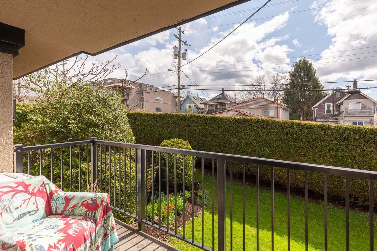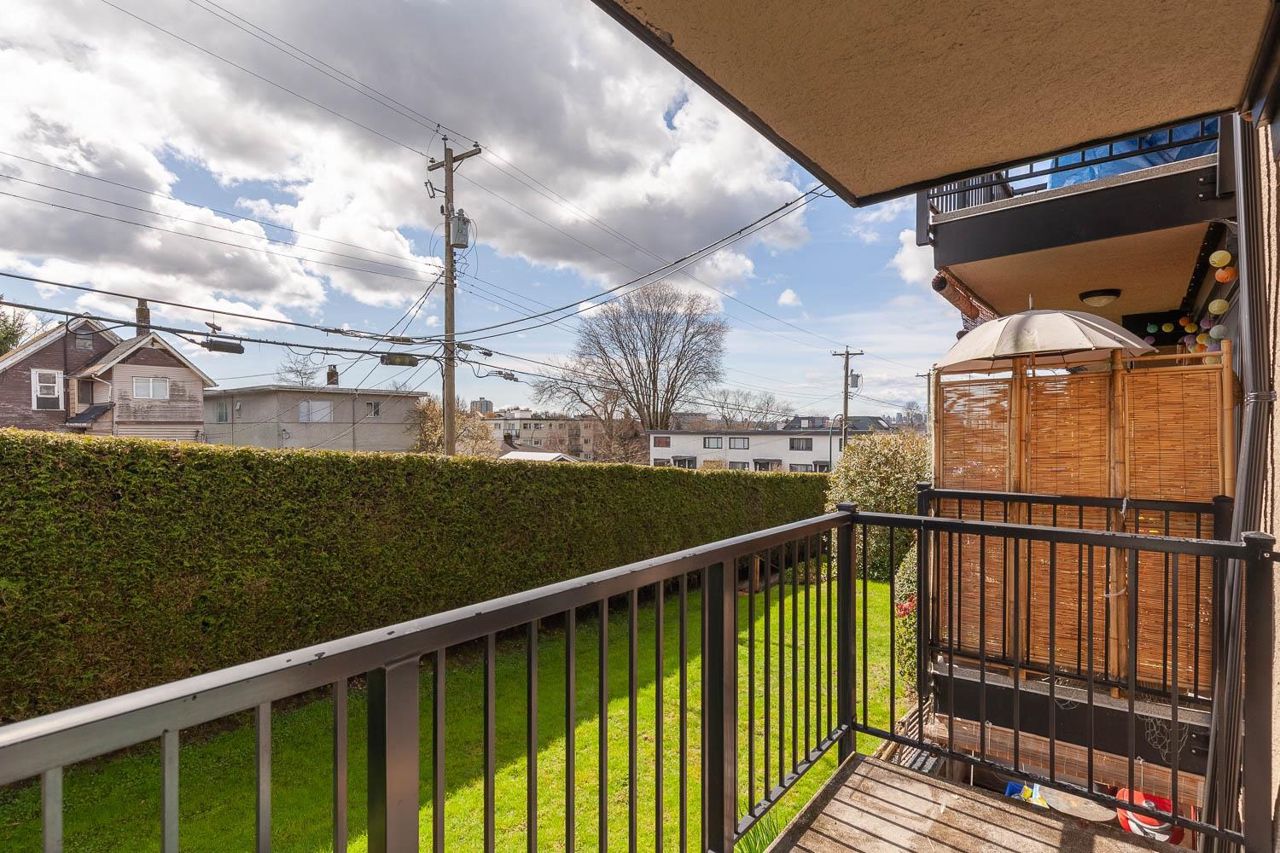 Large beautifully renovated 1 bedroom condo located in the heart of Vancouver's eastside village. Terrific floor plan with spacious open living/dining that opens onto your sun soaked balcony. Fantastic southern exposure overlooking private green space and views of the city. Kitchen features stone countertops, clean white shaker cabinets and stainless steel appliances. Laminate flooring throughout, extremely bright and cheerful on a beautiful tree lined street. Centrally located close to Hastings hopping and restaurants, a short walk to Commercial Drive and easy transit and bike routes all around. Underground parking and storage locker.