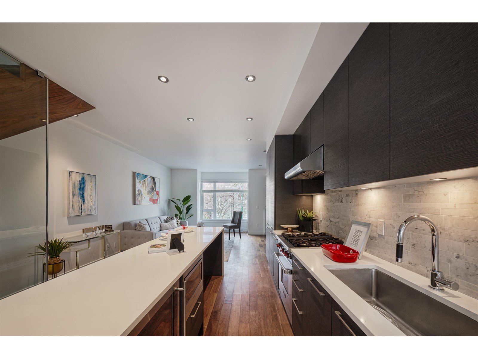 Rare to find a townhouse in MacKenzie Heights in Vancouver west, nestled within the tree lined streets. Two underground parking and a giant storage room. This home has a solid thoughtful design, exquisite interior finishing's and timeless Edwardian architecture. Main floor features include Inform European Custom Cabinets, Wolf SS Gas Range, Integrated Appliances, Wide Plank Engineered Walnut Flooring. Quartzite Countertops, overheight ceilings, Upper floor offers 2 bedrooms with frameless Glass shower enclosures, contemporary bathrooms and more. 900m from Kerridale Elementary school, and walking distance to Point grey secondary school. Easy to go to UBC by transit. Home is move in ready. Book your private appointment today. (id:22211)