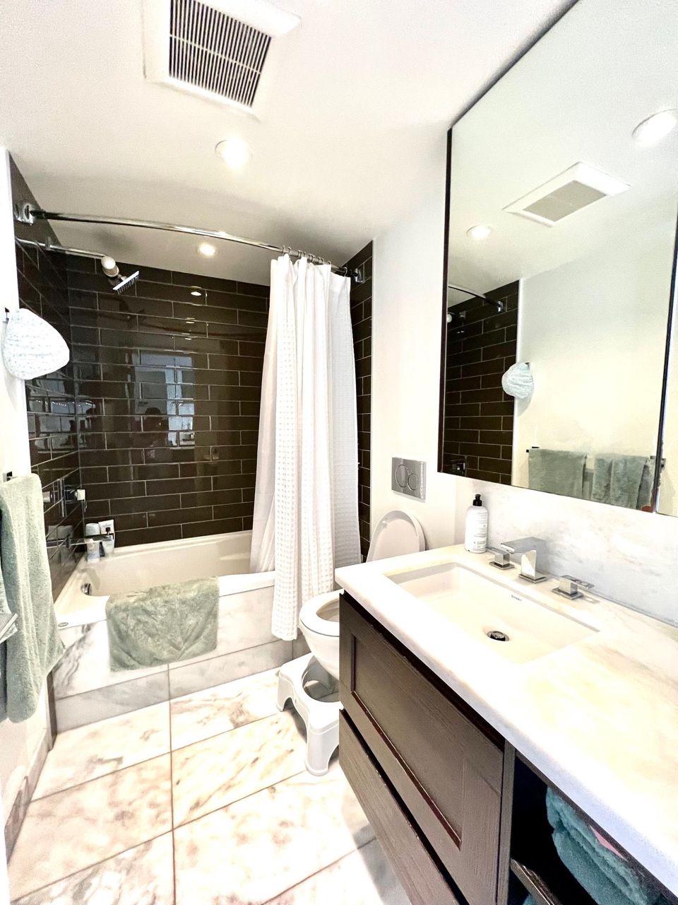 Binning Tower by the renowned Wall Group of Companies, nestled next to the Pacific Spirit Park within the vibrant community of Wesbrook at UBC. SOUTH WEST FACING one spacious and very bright bedroom plus den with SPECTACULAR OCEAN VIEW !!! The unit offers central air-conditioning/heating, sleek European gourmet kitchen with high quality designer brand name integrated appliances, premium quality hardwood flooring in living space, marble & quartz countertops, & large outdoor space. Good for investment and living in . Absolutely the finest living at UBC! Locker number: P2-Room 7-34. Parking #239. Tenant occupied . (monthly rent $3,000). Please allow 24 hour notice. Please allow 24 hour notice. Easy to show.