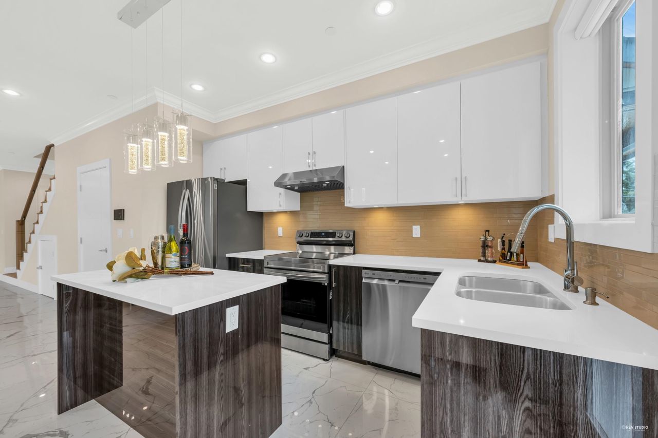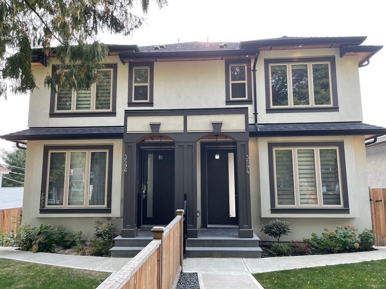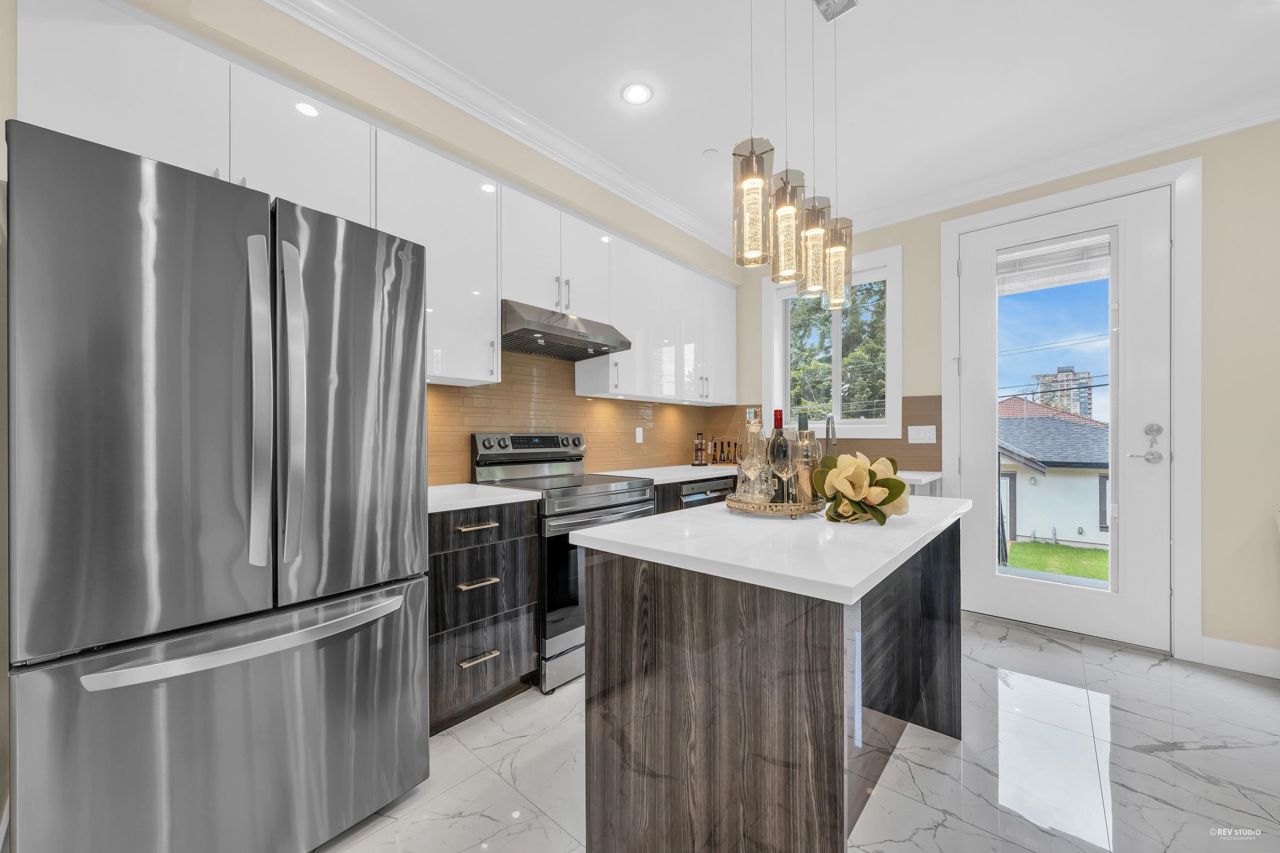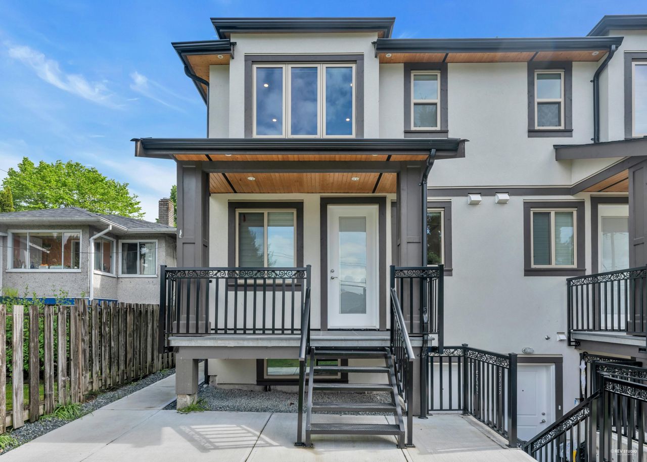 One best location and open concept layout; quiet and convenience. Home is built with excellent quality including high-efficiency heat pump air conditioning system, radiant floor heating, stone counter tops, tiles on both basement and main floor and laminated flooring on top floor. 3 level duplex with a 2-bedroom (617 sq ft) legal basement suite. Close to Joyce sky-train, school and transit. Best and spacious layout. This is the best value.