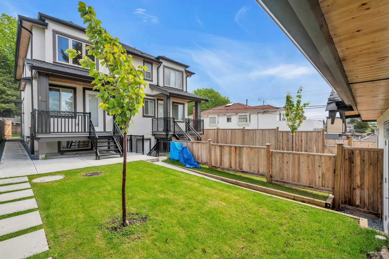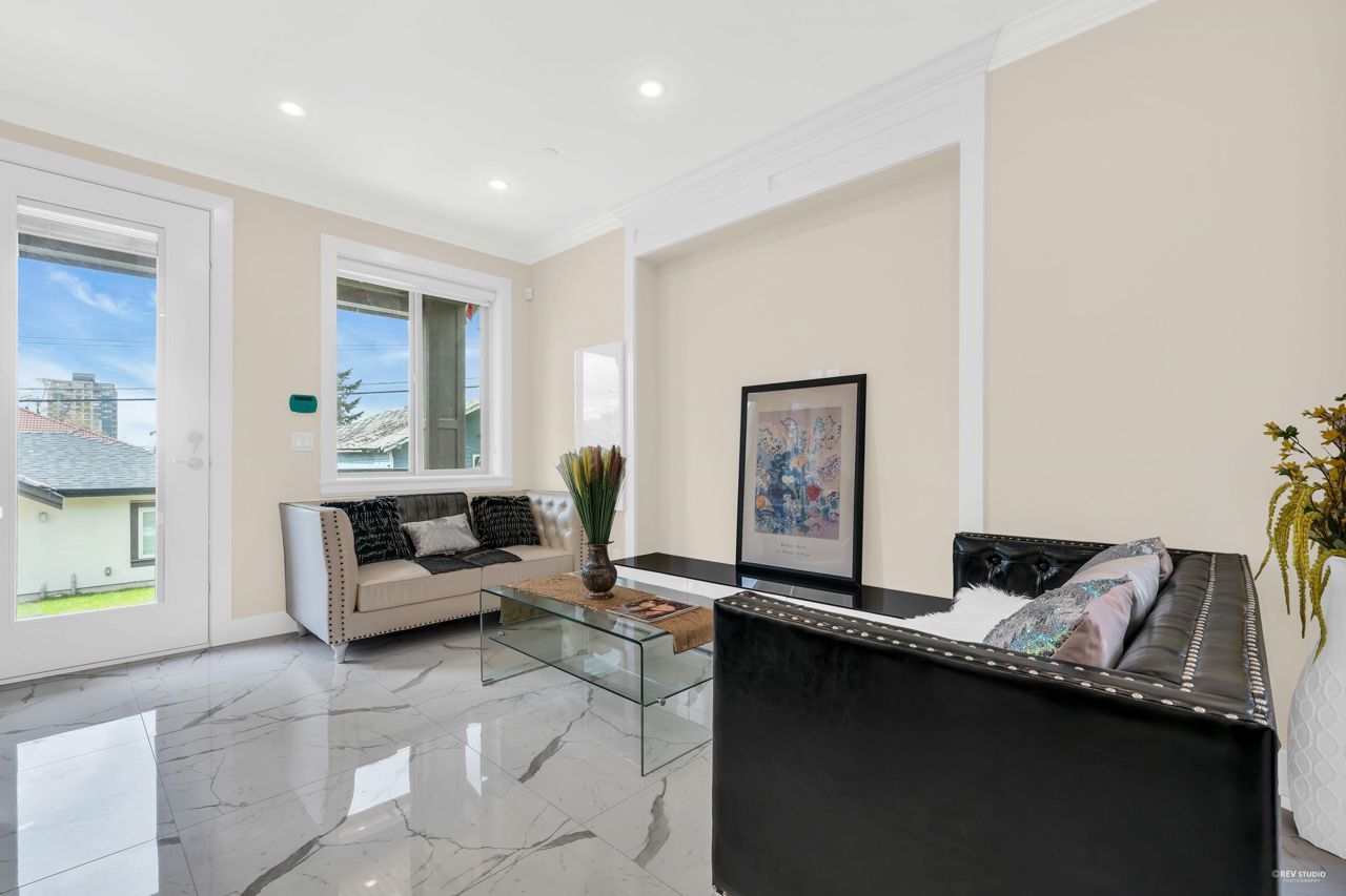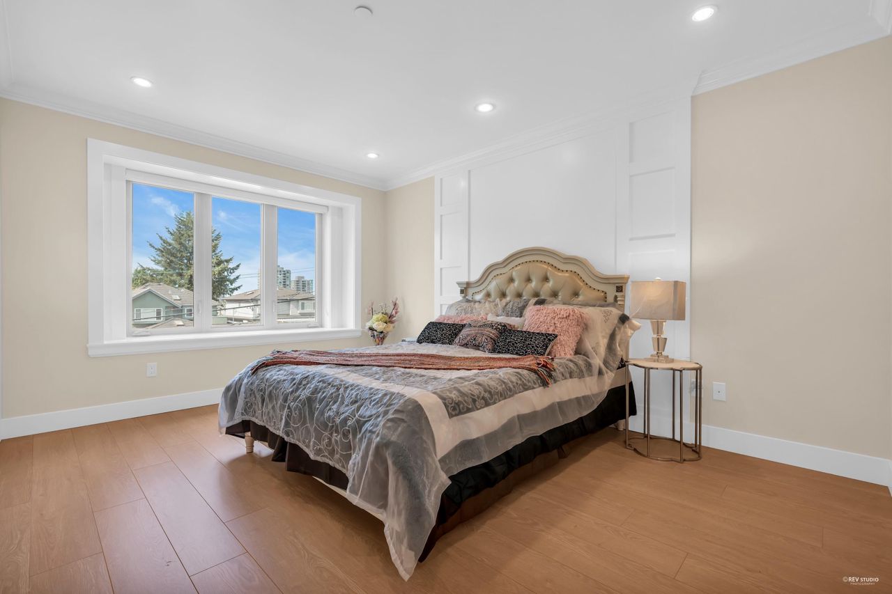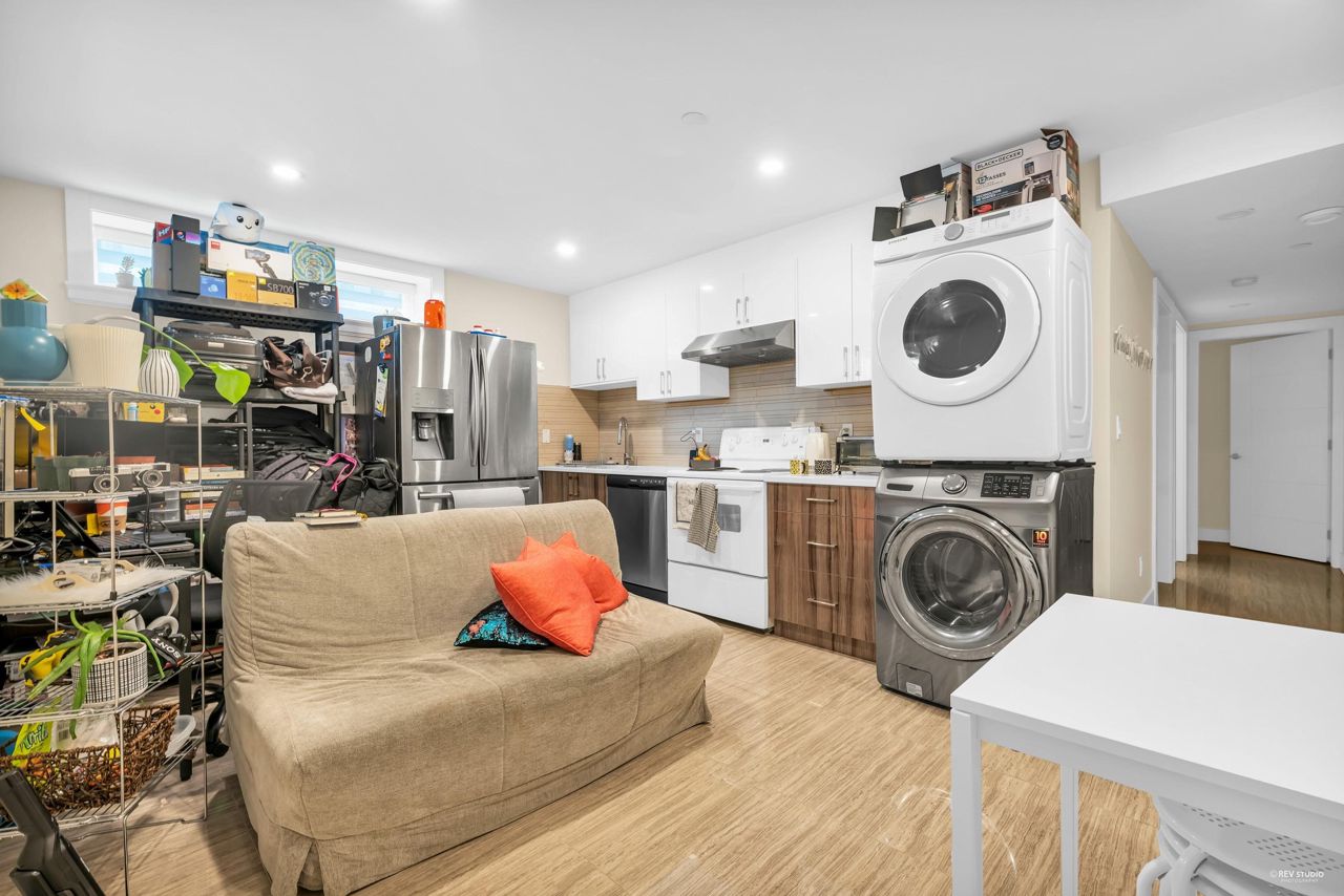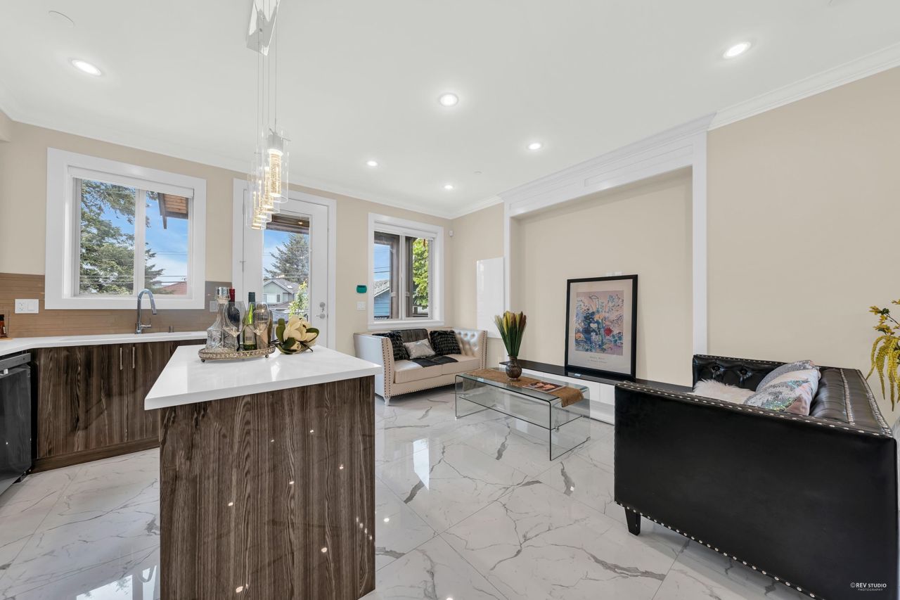One best location and open concept layout; quiet and convenience. Home is built with excellent quality including high-efficiency heat pump air conditioning system, radiant floor heating, stone counter tops, tiles on both basement and main floor and laminated flooring on top floor. 3 level duplex with a 2-bedroom (617 sq ft) legal basement suite. Close to Joyce sky-train, school and transit. Best and spacious layout. This is the best value.