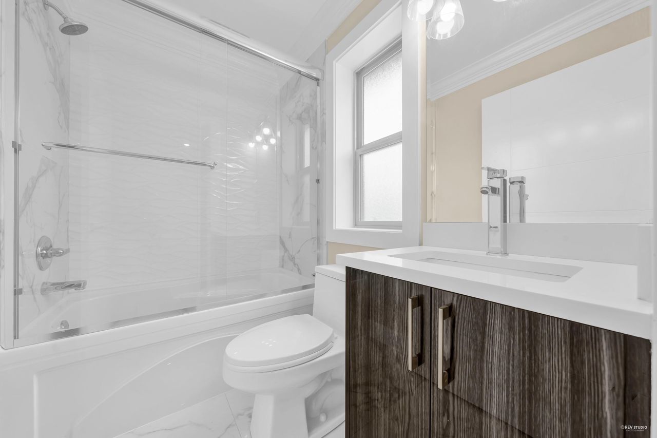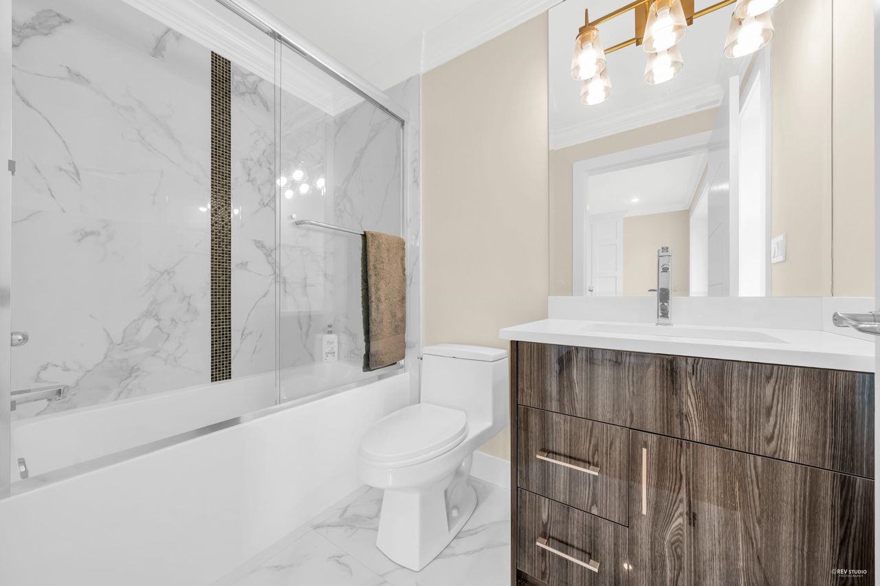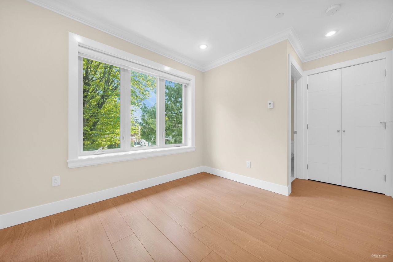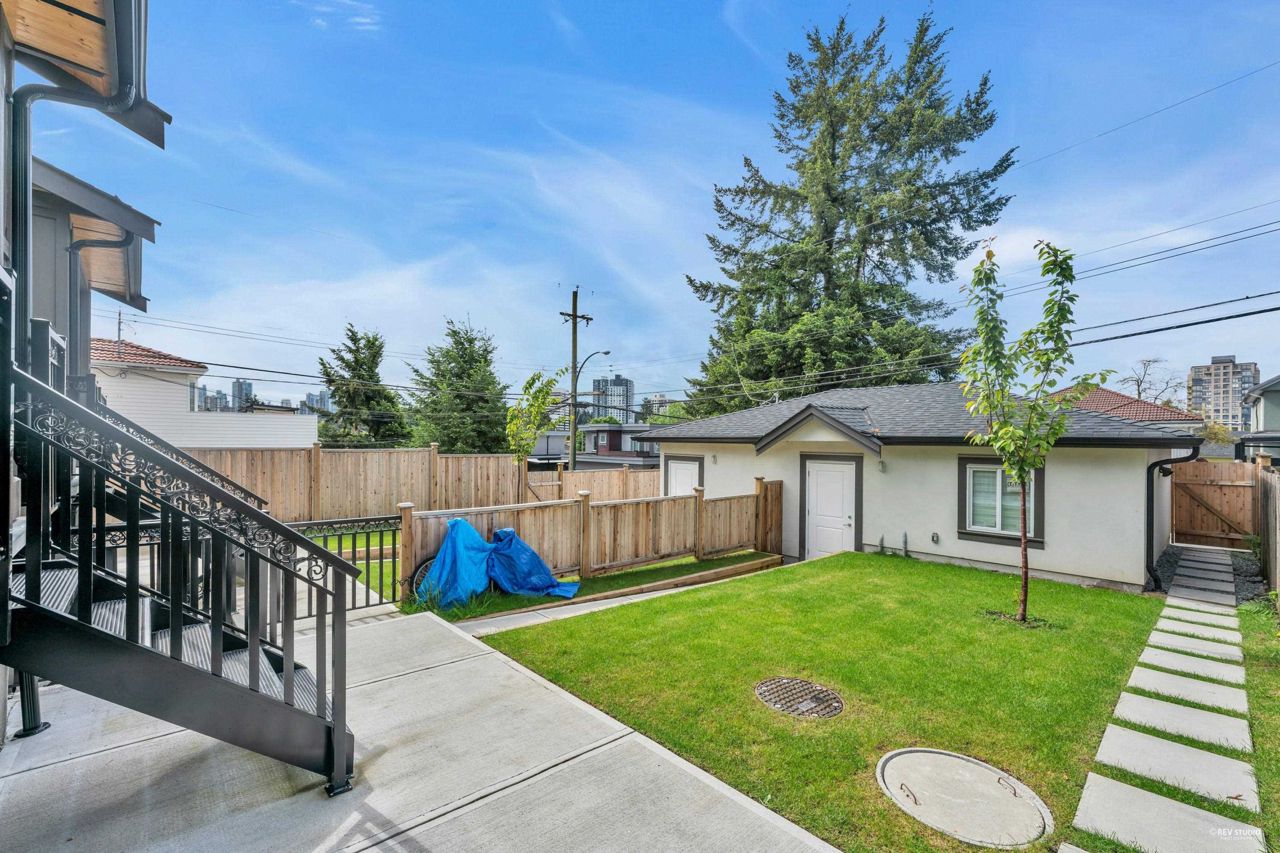 One best location and open concept layout; quiet and convenience. Home is built with excellent quality including high-efficiency heat pump air conditioning system, radiant floor heating, stone counter tops, tiles on both basement and main floor and laminated flooring on top floor. 3 level duplex with a 2-bedroom (617 sq ft) legal basement suite. Close to Joyce sky-train, school and transit. Best and spacious layout. This is the best value.