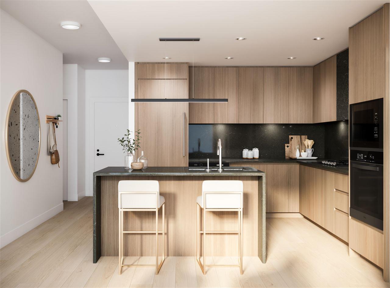 Welcome to Dunbar at 39th by Wesgroup. Designed by Taizo Yamamoto, this concrete boutique building offers 29 beautifully designed 1, 2 & 3 bedroom homes & City Homes of up to 1,700 SQ FT. This 1527 SF 3 bd + Flex, 2 bath Penthouse features 733 SF of outdoor space (Rooftop deck+ 2 balconies) including a hot tub and outdoor BBQ kitchen, Sub Zero & Wolf integrated appliances w/gas stove, wine fridge, h/w floors throughout, quartz countertops, 9 ft. ceilings, A/C, full size W/D, custom closets w/millwork, & motorized blinds. Limited time free personalization of the flex space to a wine room, mud room, or home office. Amenities include front desk concierge service & rooftop patio area equipped with outdoor bbq & kitchen, seating & dining areas. Call to book your private appointment. (id:22211)