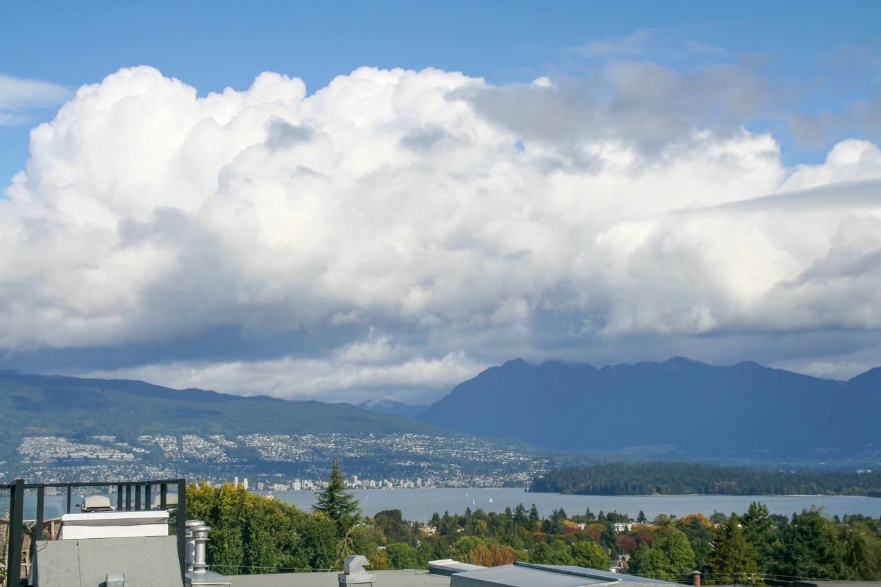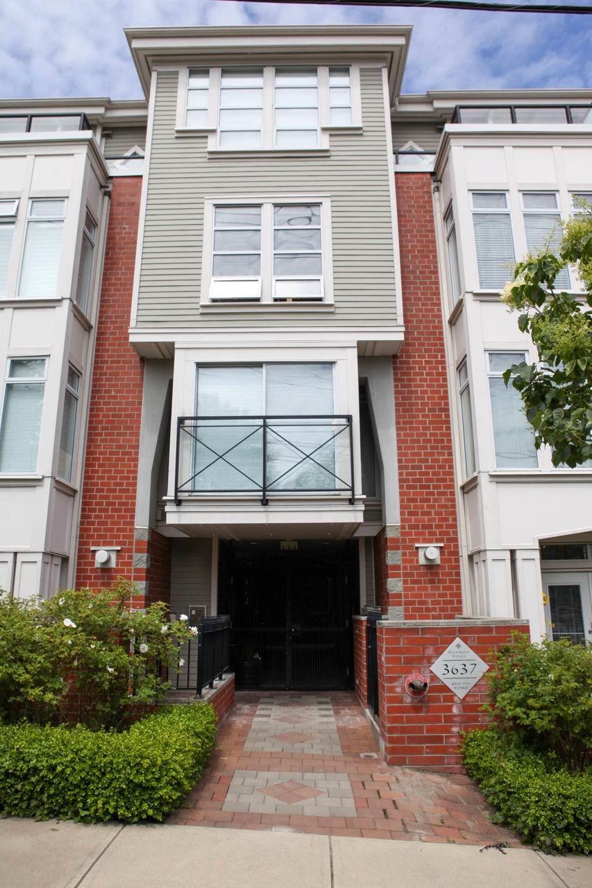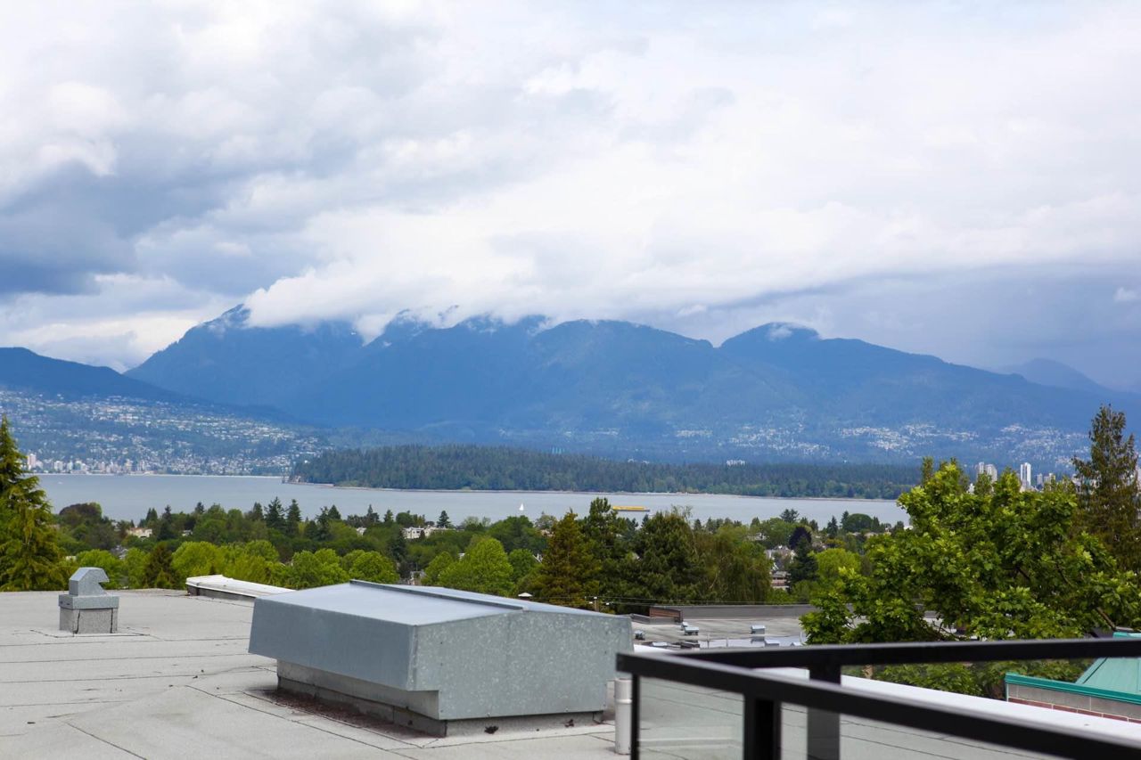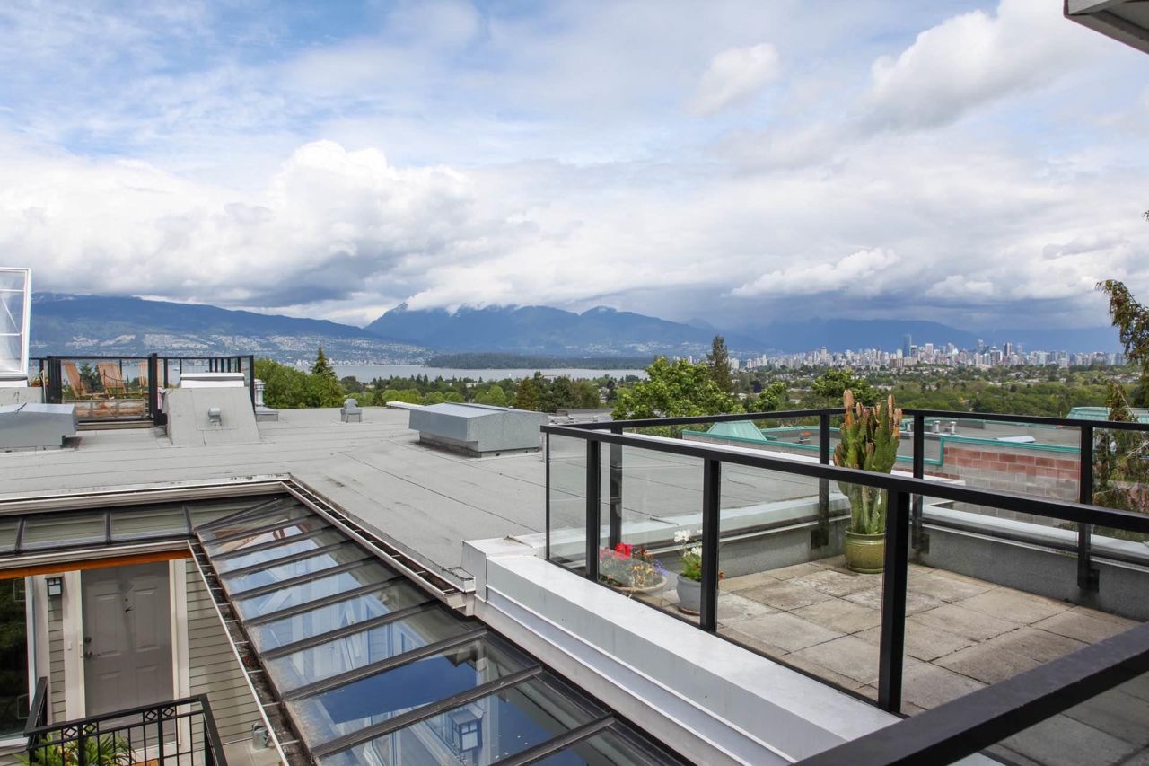 Located in popular Dunbar neighbourhood; Highbury house - A fabulous Penthouse strata home complete with 270 degree Panoramic views & garden patio. Beautifully landscaped internal courtyard. Classic design by award winning Nigel Baldwin Architects & Quality Crafted with rainscreen construction using durable brick & Hardi Board concrete siding. Contemporary design featuring a spacious open plan. Bright patio; maple floors, gas fireplace, fabulous kitchen features s/s appl, gas range, granite counters and Kohler fixtures. Excellent security & generous flexible space for home office/den. In a CHOICE, WEST SIDE, RESIDENTIAL NEIGHBOUR