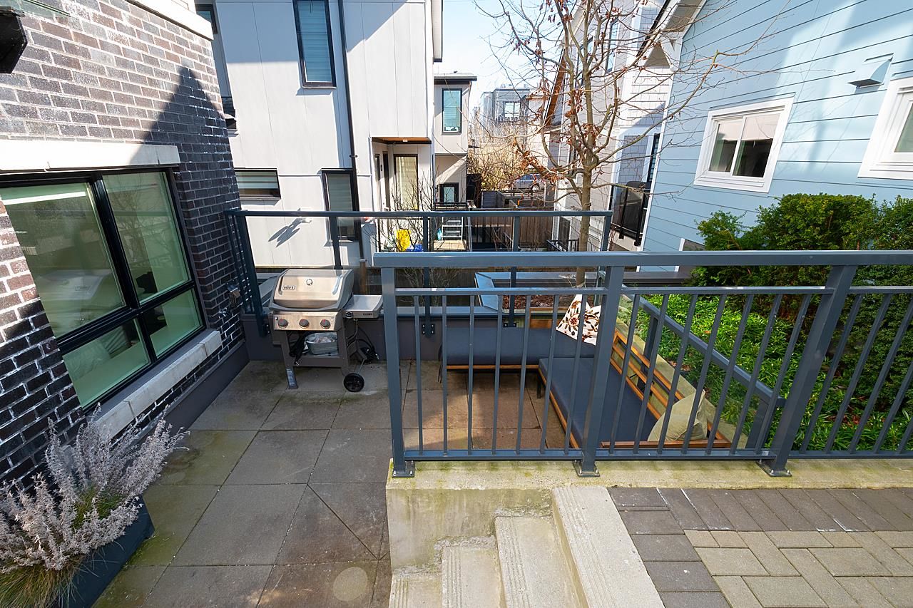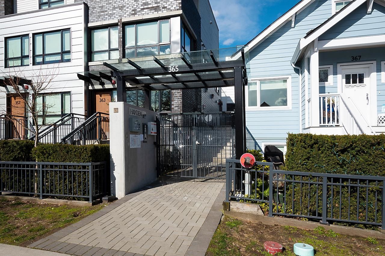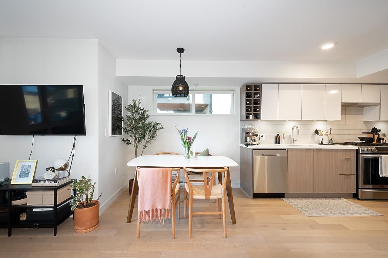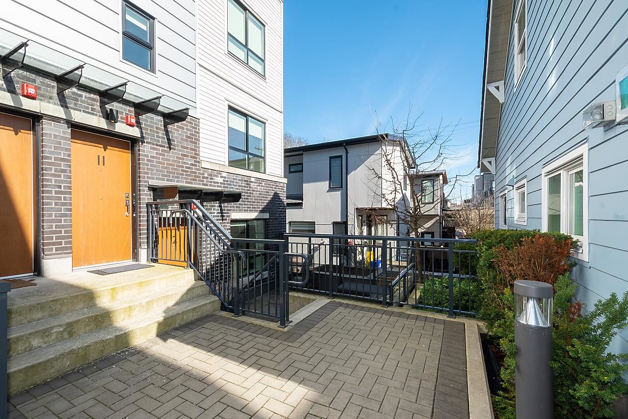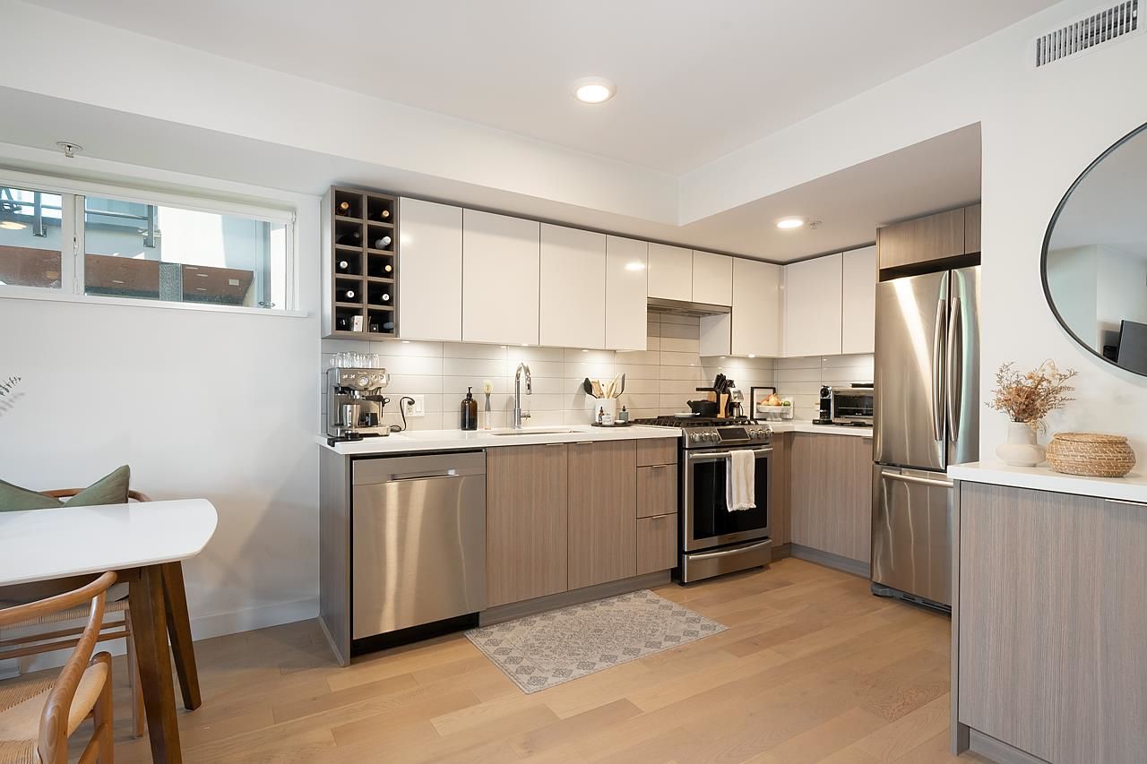 This spectacular 1bedroom, 1 bath, 1 storey townhome at “Hayden” is ideally located facing the quiet inner courtyard in the heart of Mount Pleasant. Built in 2018, this ground-level entry & an open-concept layout home features a gourmet kitchen with Stainless steel appliances, gas range, & quartz countertops; primary suite featuring a W-I-C; engineered H/W floors throughout; large windows welcoming in loads of natural light; & large south facing patio to relax and enjoy. Amenities include: in-suite laundry, one underground secured parking, & one storage locker. Just steps from the array of shops, services, grocers, & amenities of Main Street, with easy access to parks, recreation, & rapid transit. Can't beat this home and location!
