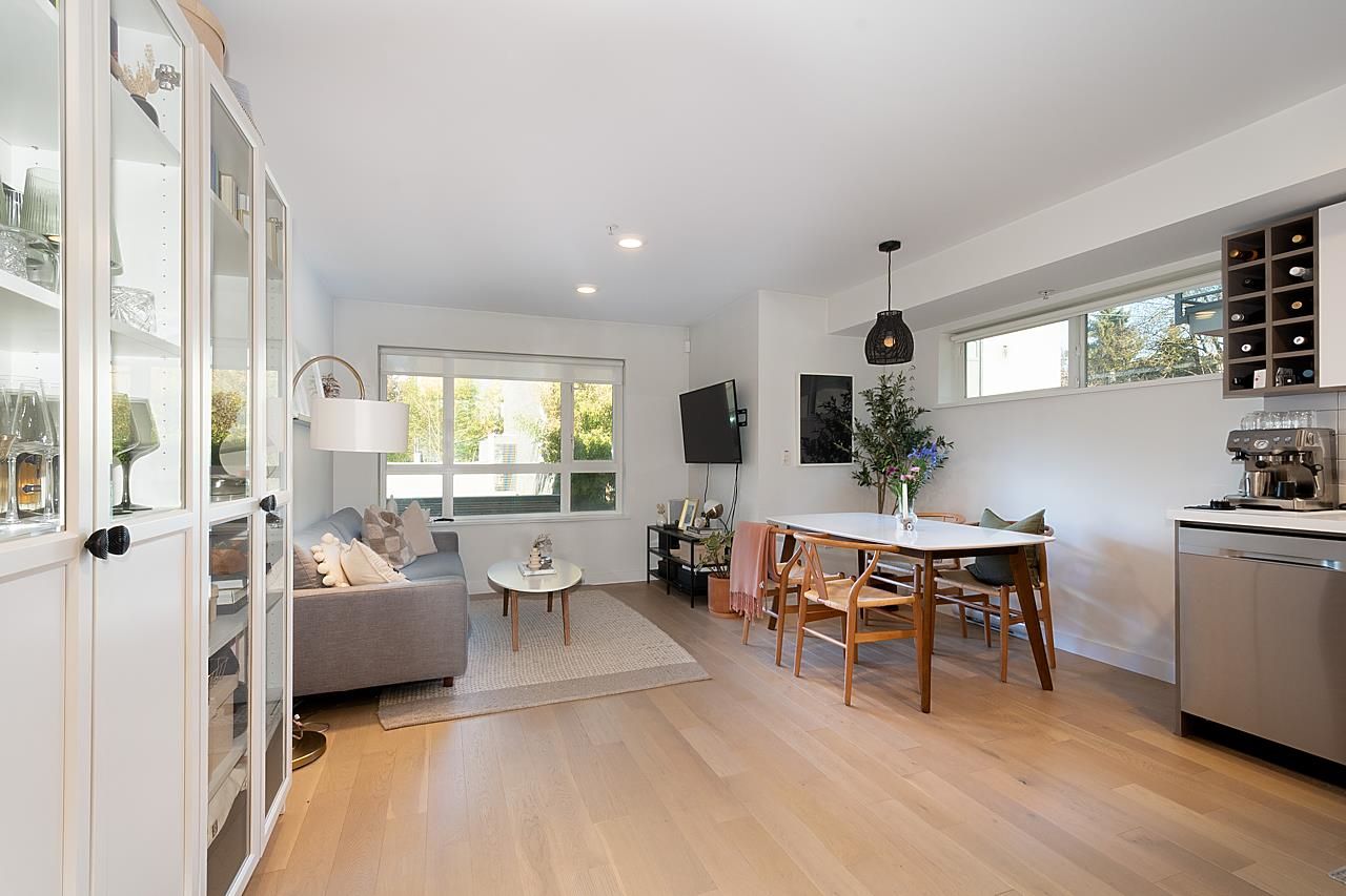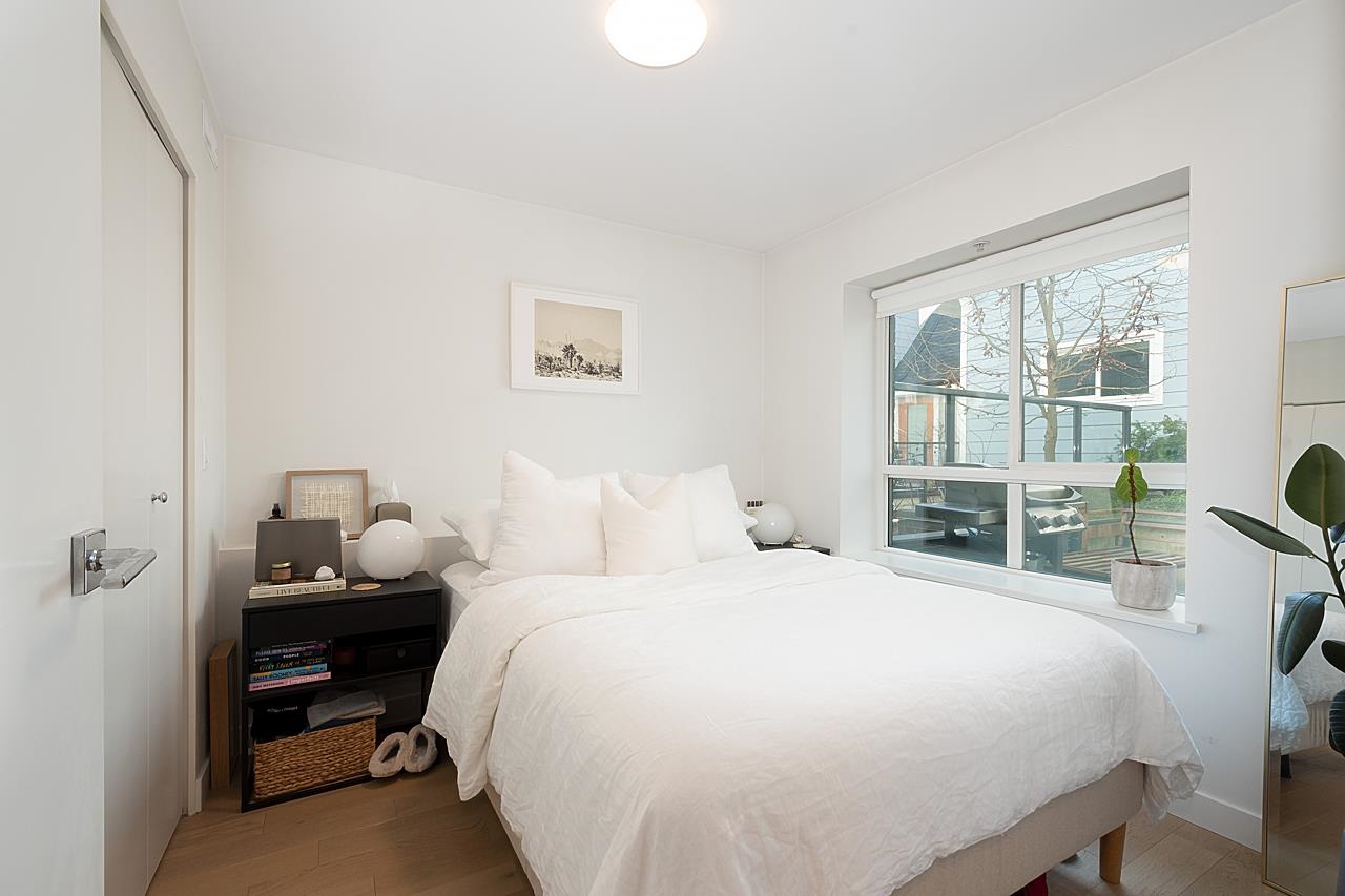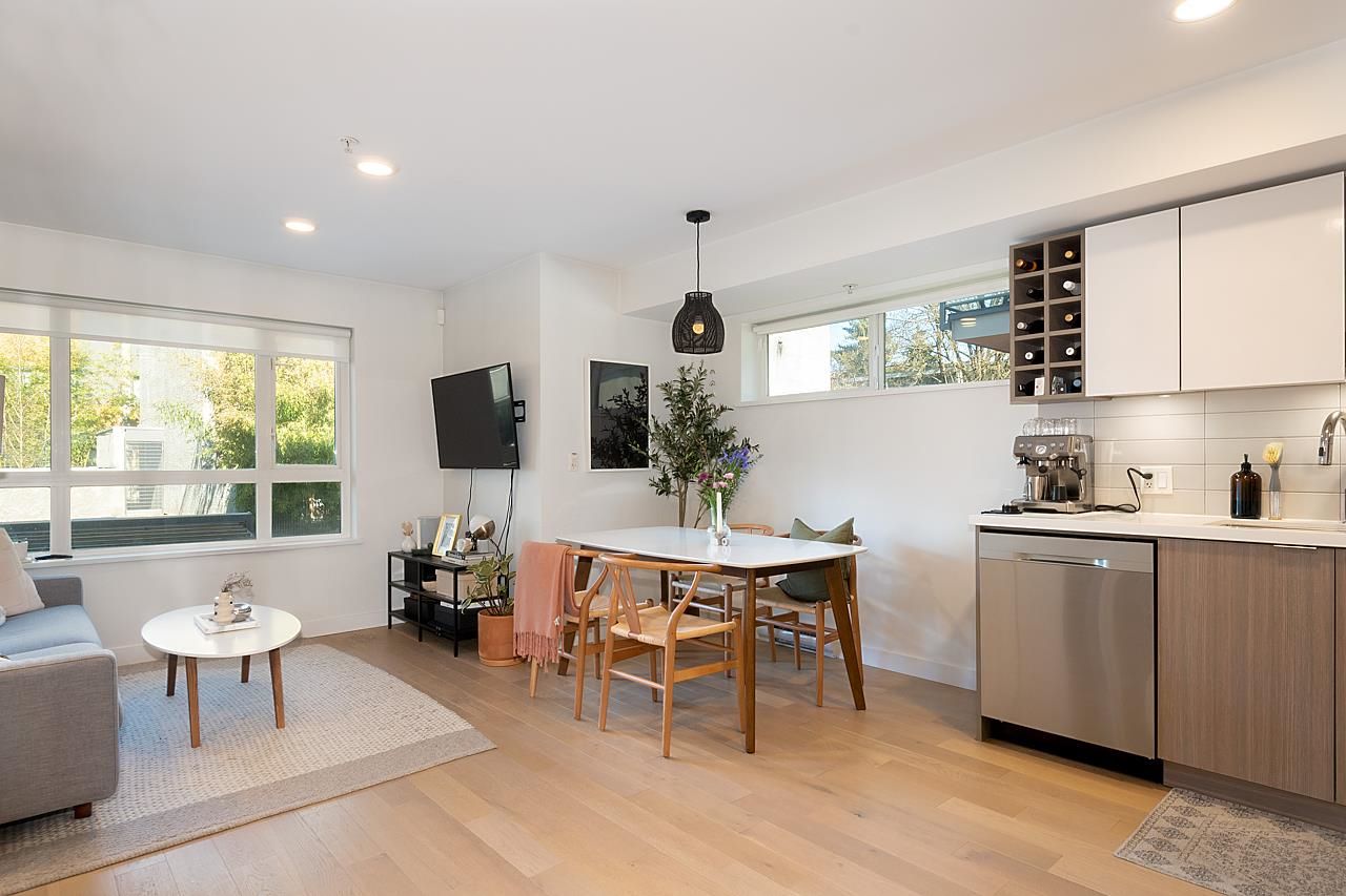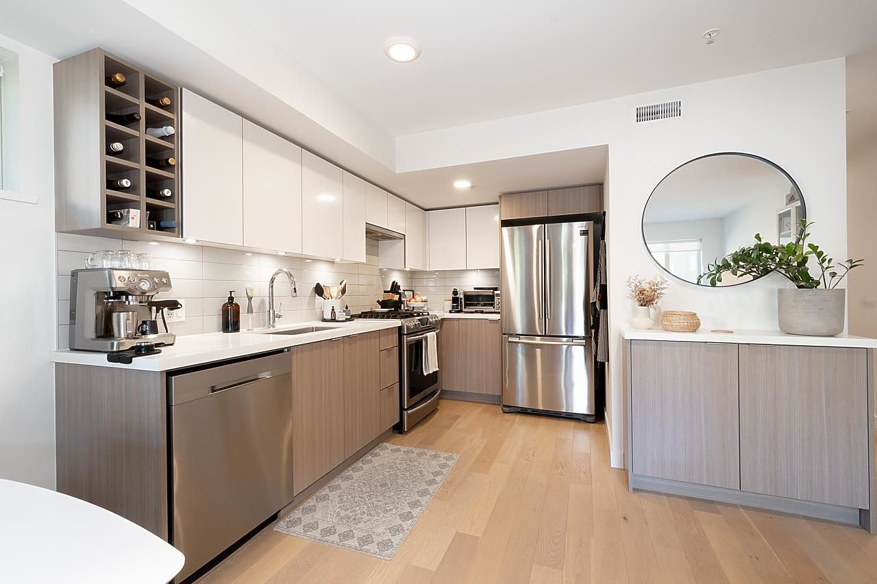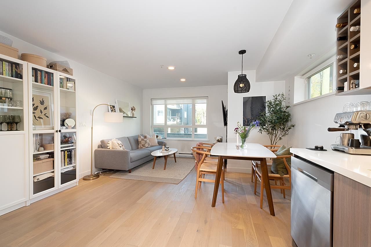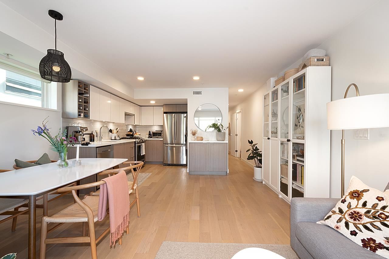 This spectacular 1bedroom, 1 bath, 1 storey townhome at “Hayden” is ideally located facing the quiet inner courtyard in the heart of Mount Pleasant. Built in 2018, this ground-level entry & an open-concept layout home features a gourmet kitchen with Stainless steel appliances, gas range, & quartz countertops; primary suite featuring a W-I-C; engineered H/W floors throughout; large windows welcoming in loads of natural light; & large south facing patio to relax and enjoy. Amenities include: in-suite laundry, one underground secured parking, & one storage locker. Just steps from the array of shops, services, grocers, & amenities of Main Street, with easy access to parks, recreation, & rapid transit. Can't beat this home and location!