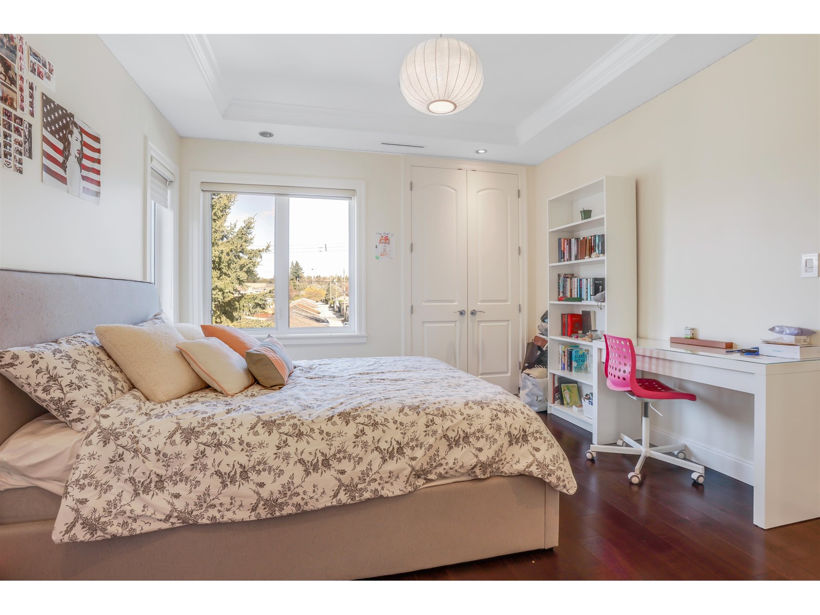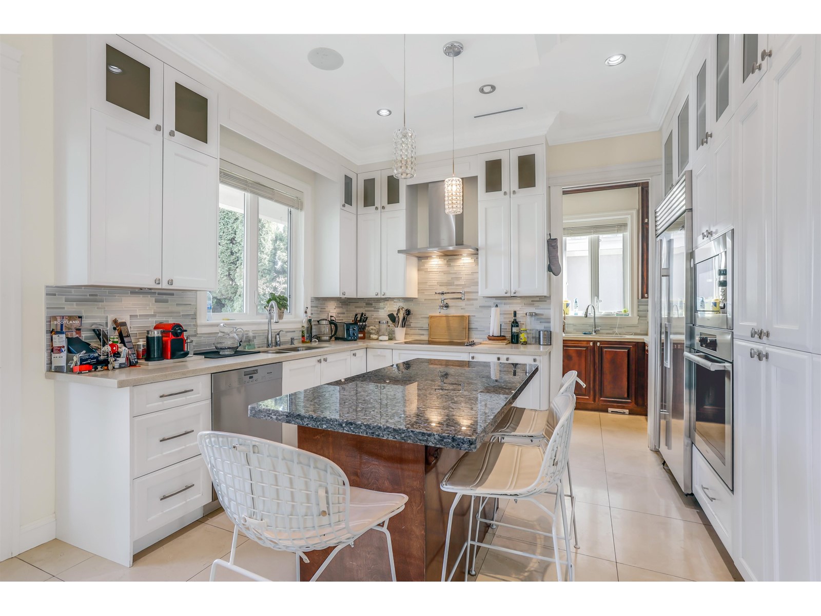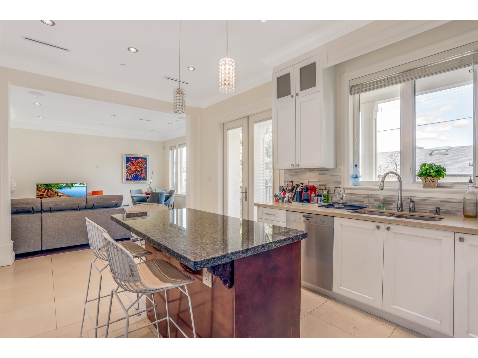 Well-Maintained custom home on a bright lot. Over 4200sqft of spacious living space, luxurious finishings, gorgeous contemporary open floor plan and high ceilings. Main floor features large living, dining and an enormous kitchen and family room that overlooks the garden backyard. Custom kitchen cabinets, top-of-the-line S/S appliances and wok kitchen for the chef. Upper floor with 4 bedrooms and a master with spa-like ensuite. Lower level features 2 bedrooms, media room, laundry room, huge Recreation Room. Fully fenced and landscaped. Other features include hardwood floors, HRV, air conditioning, large patio, extensive use of granite and marble throughout. Great location - close to Trafalgar Elementary school ,Prince of Wales Secondary and parks. open house NOV 4th 2:30-4:30pm (id:22211)