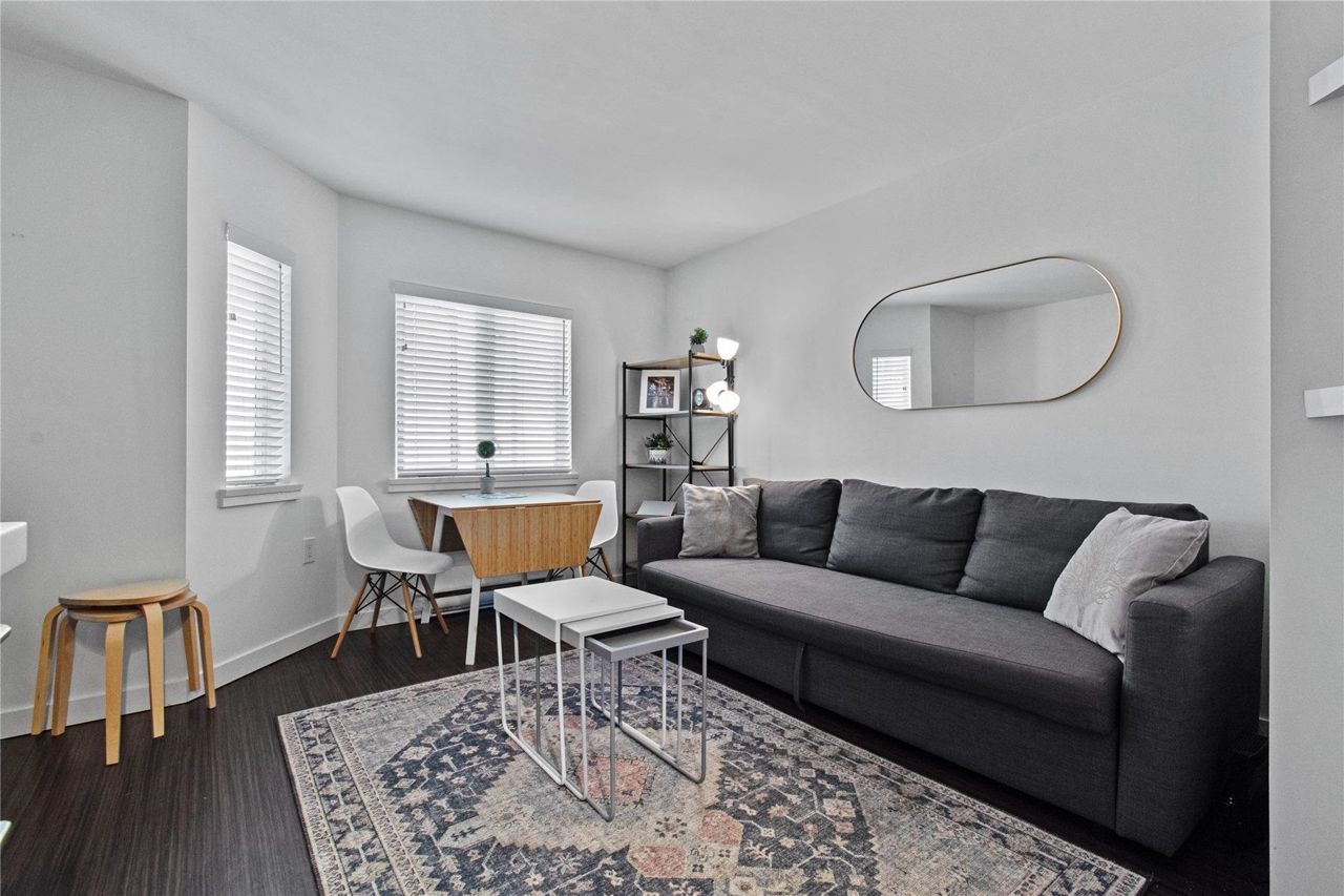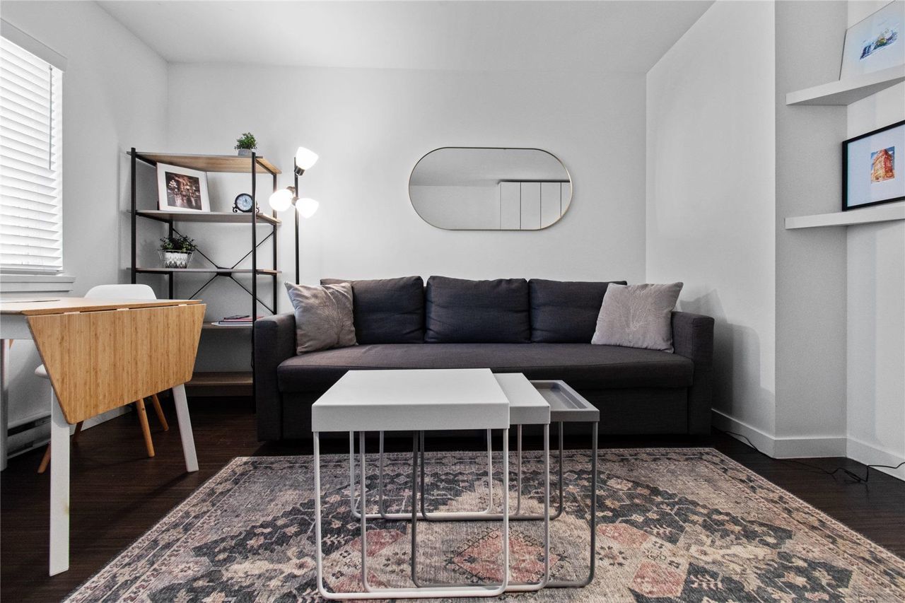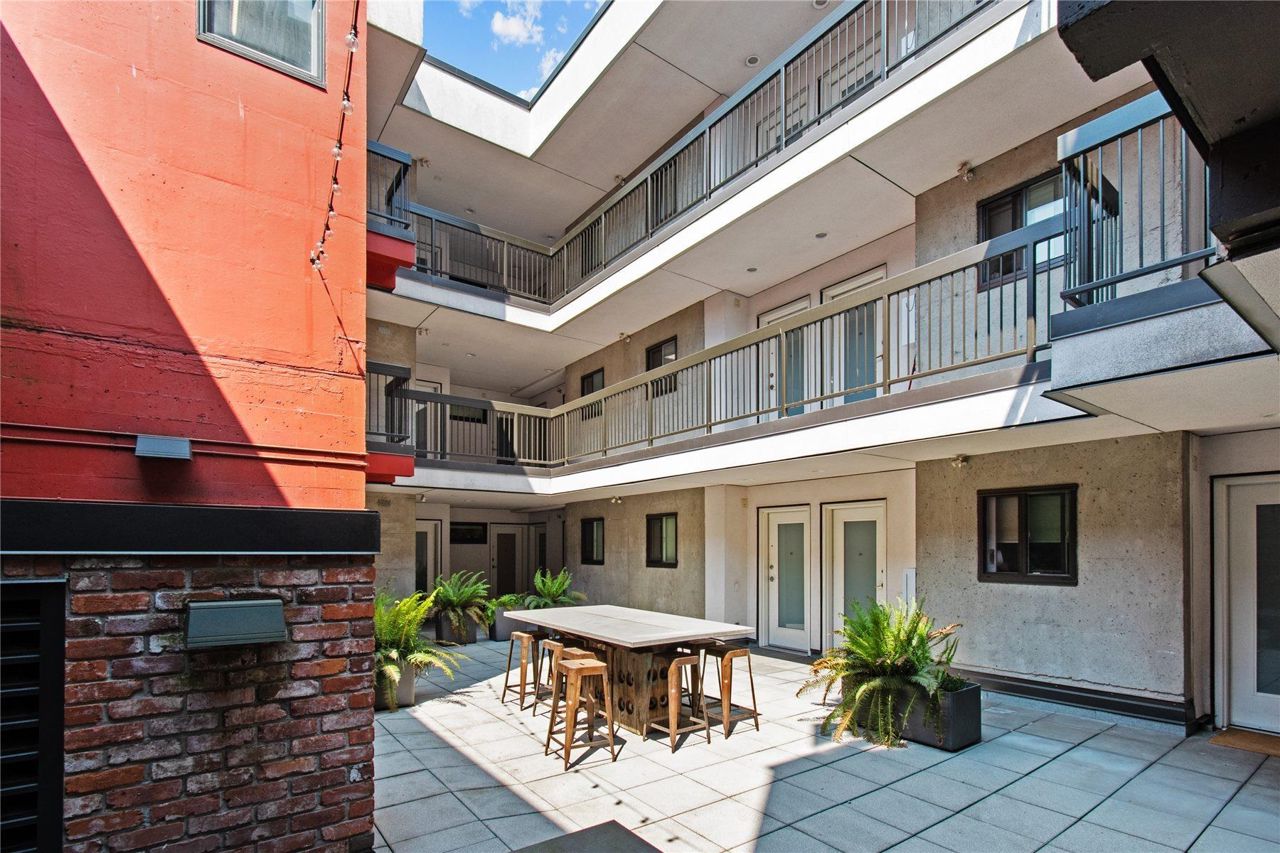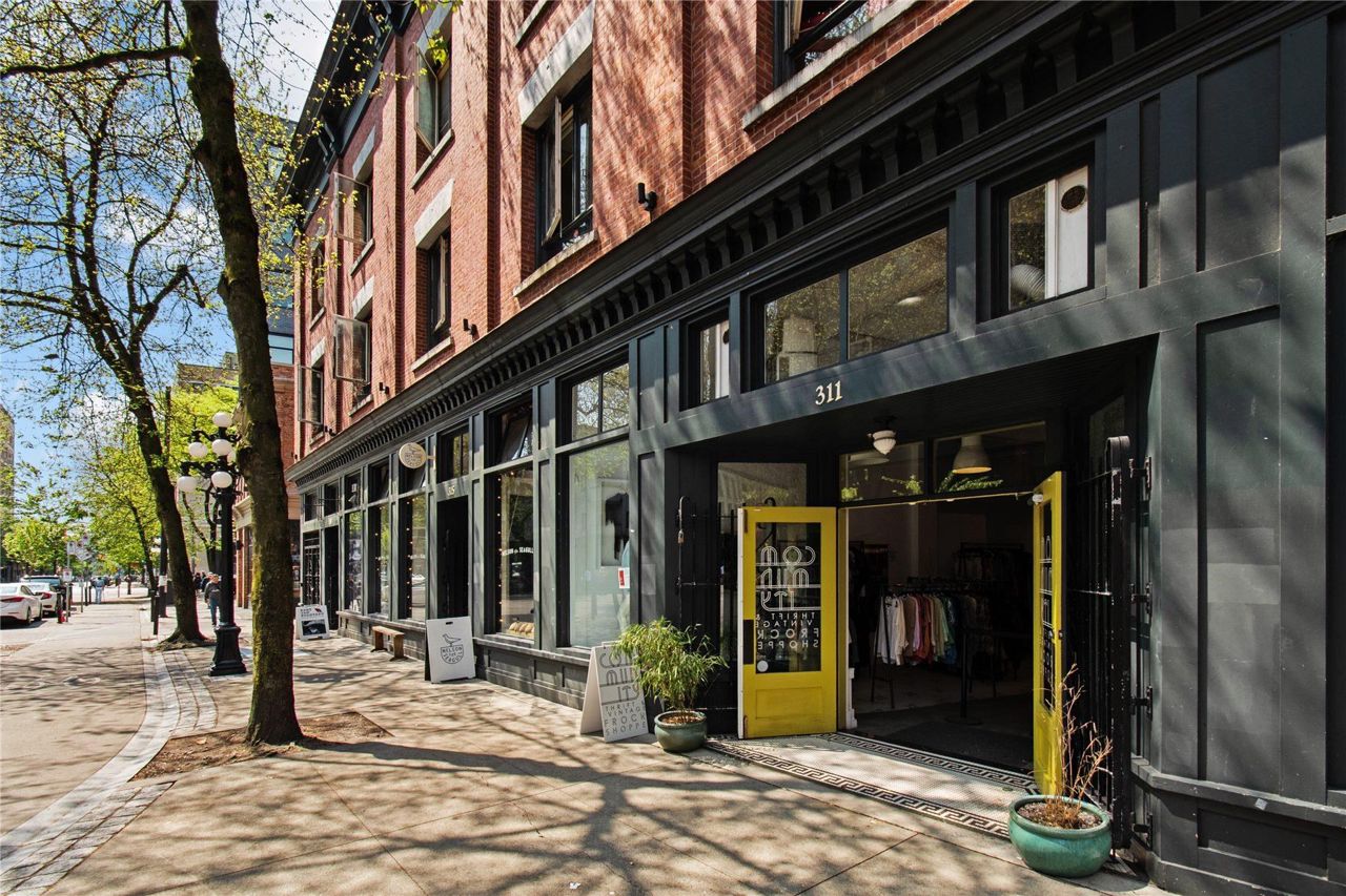 Investors & First-Time buyers welcome to "21 Doors" situated in historic Gastown. This 4 storey concrete building was restored & rejuvenated by Salient Group in 2011. The building was converted into modernized homes which were designed efficiently to maximize on space for urban living. This top floor 1 bedroom unit comes with in-suite laundry, laminate flooring & an over-sized storage locker. Walking distance to Vancouver's best restaurants, cafes, shopping, tourist attractions, transit including Waterfront Station & SFU downtown campus. This complex offers a private & spacious inner courtyard with barbeque, table & chairs for social gatherings. Fabulous income generator as the complex allows short-term rentals, Air BNB & is pet friendly. Quick possession available.