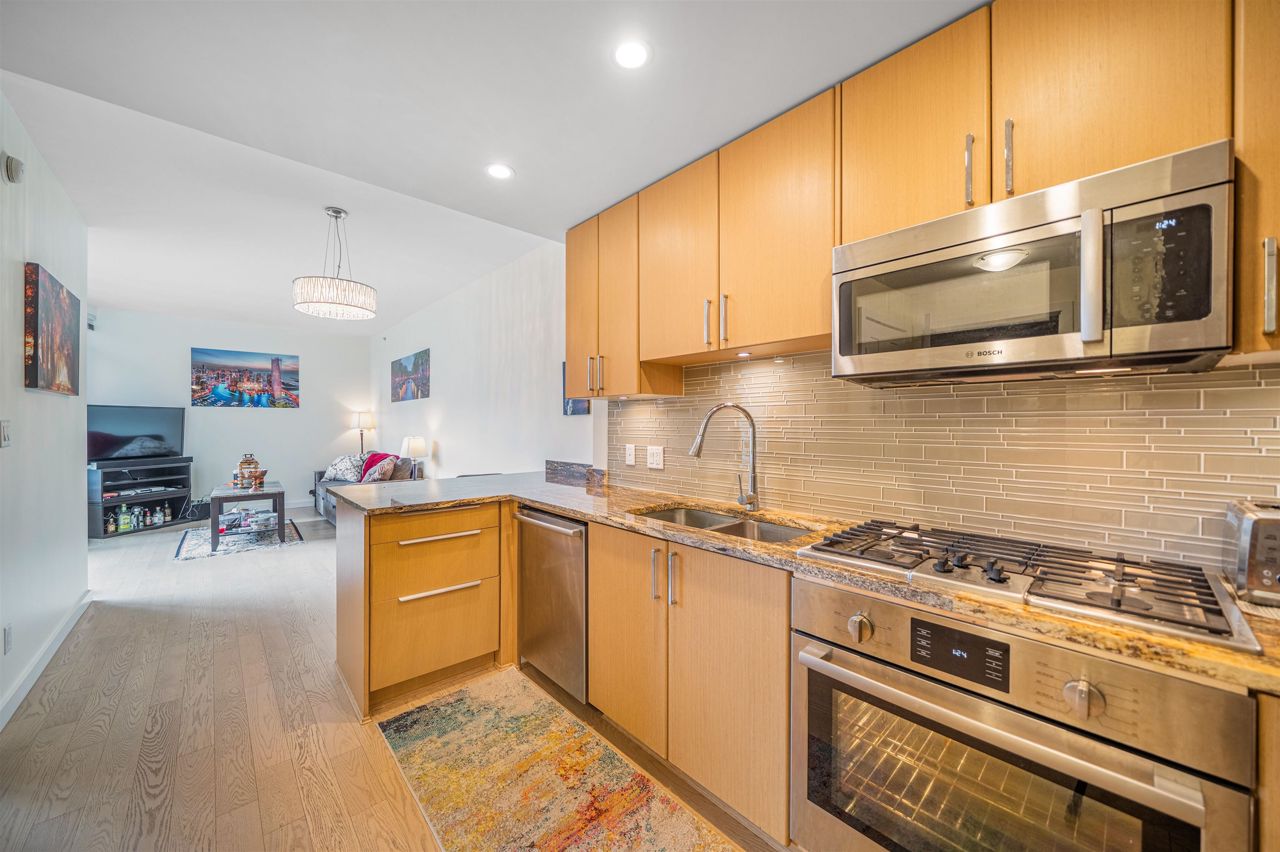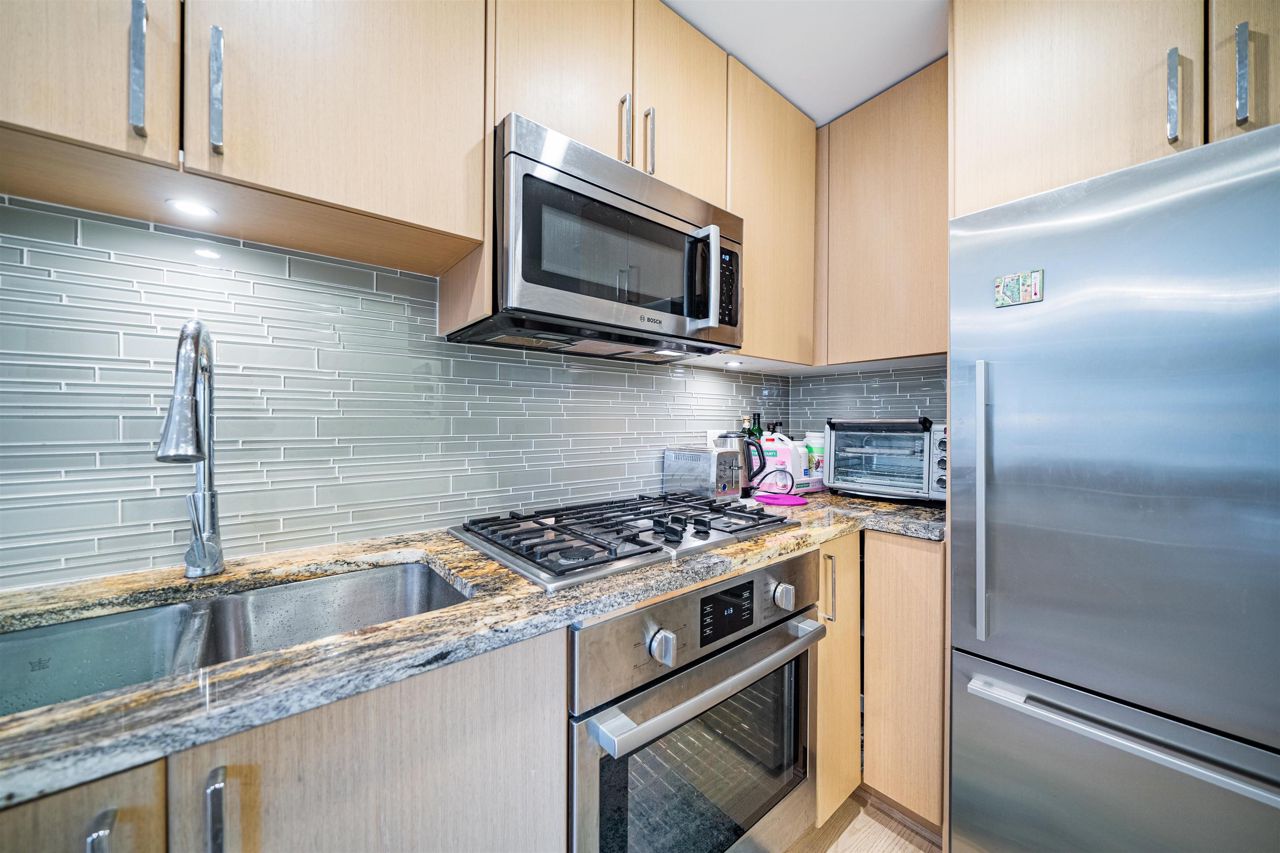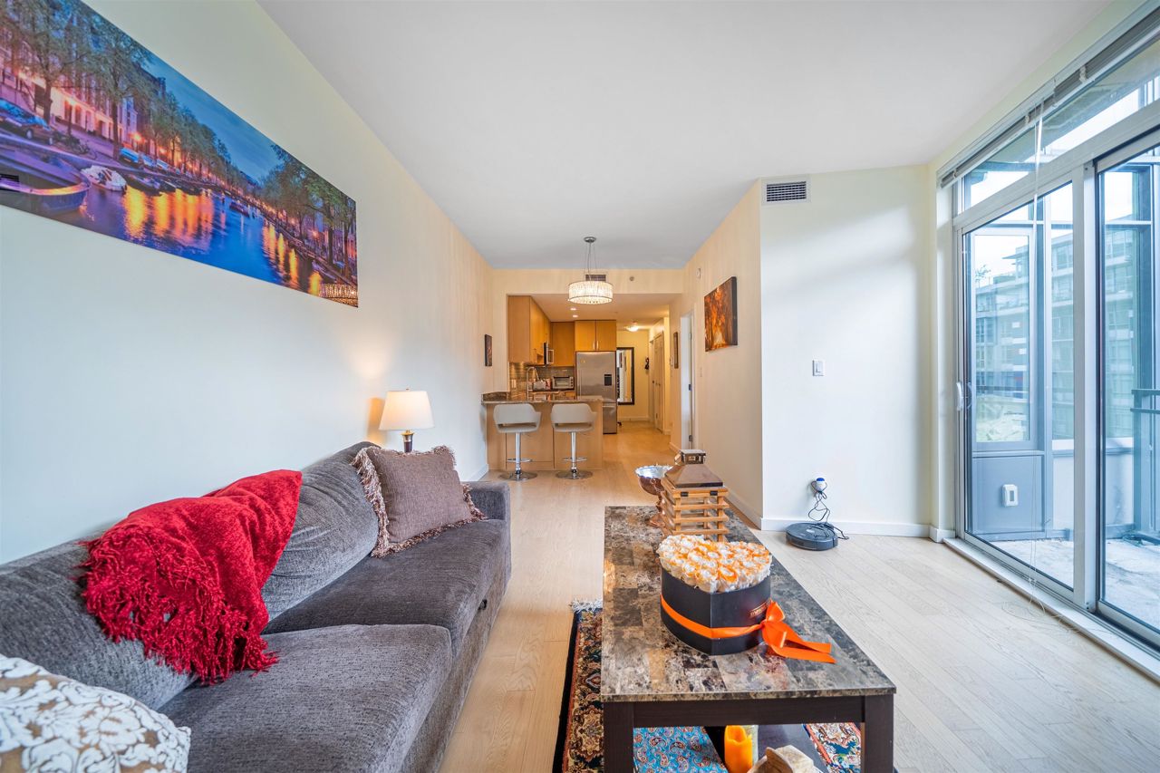 Welcome to "The One" at Pinnacle Living in Olympic Village! This charming 1-bed condo offers a sunny South-facing view, complete with a cozy balcony and refreshing air conditioning. Pet owners will love the pet-friendly policy, and for investors, rentals are allowed too! Enjoy amenities like a party room, gym, rooftop deck, outdoor pool, and jacuzzi. Walk to the sea wall, groceries, restaurants, and transit - Downtown Vancouver is a quick ride away. Updated kitchen, bathroom, den, and freshly painted. Don't miss this unbeatable opportunity in Olympic Village!