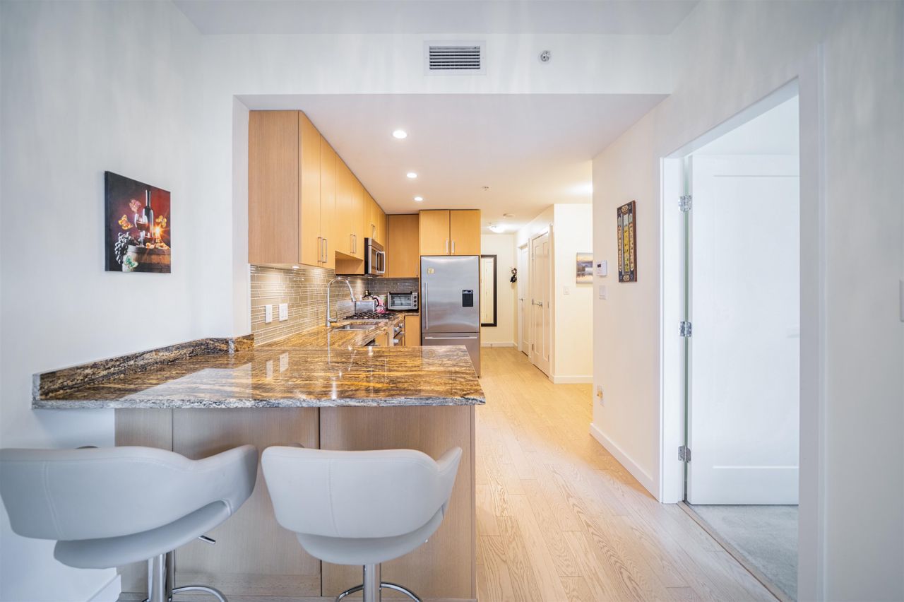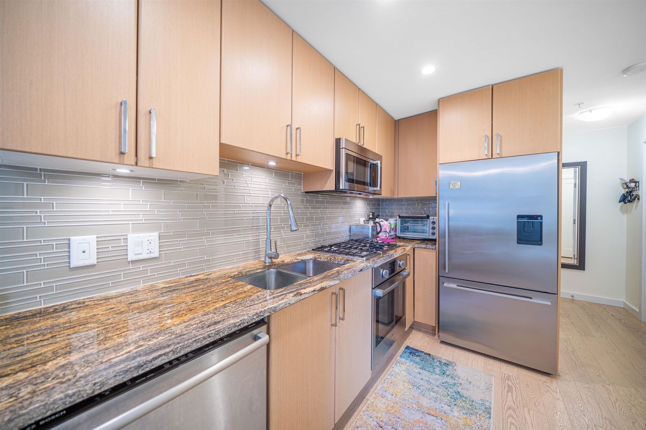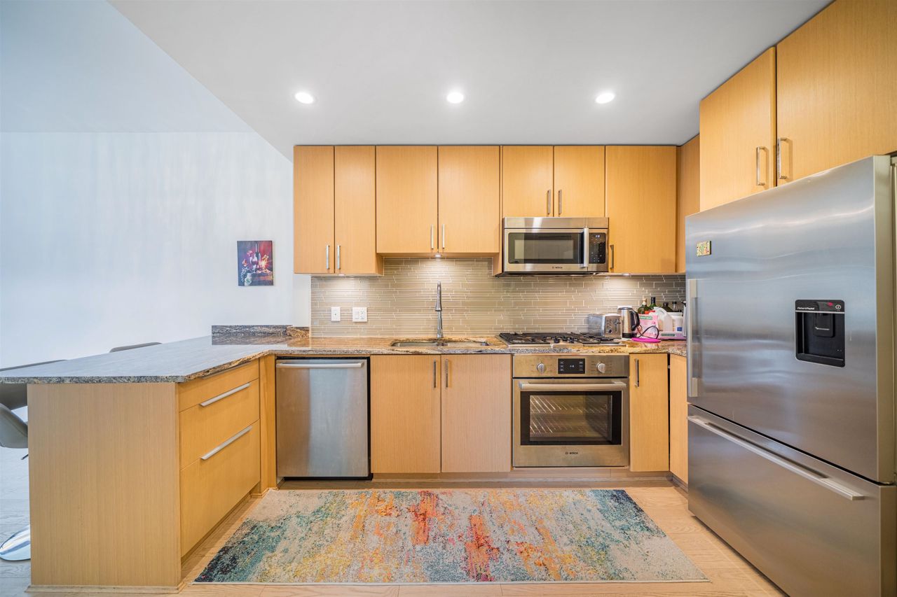 Welcome to "The One" at Pinnacle Living in Olympic Village! This charming 1-bed condo offers a sunny South-facing view, complete with a cozy balcony and refreshing air conditioning. Pet owners will love the pet-friendly policy, and for investors, rentals are allowed too! Enjoy amenities like a party room, gym, rooftop deck, outdoor pool, and jacuzzi. Walk to the sea wall, groceries, restaurants, and transit - Downtown Vancouver is a quick ride away. Updated kitchen, bathroom, den, and freshly painted. Don't miss this unbeatable opportunity in Olympic Village!